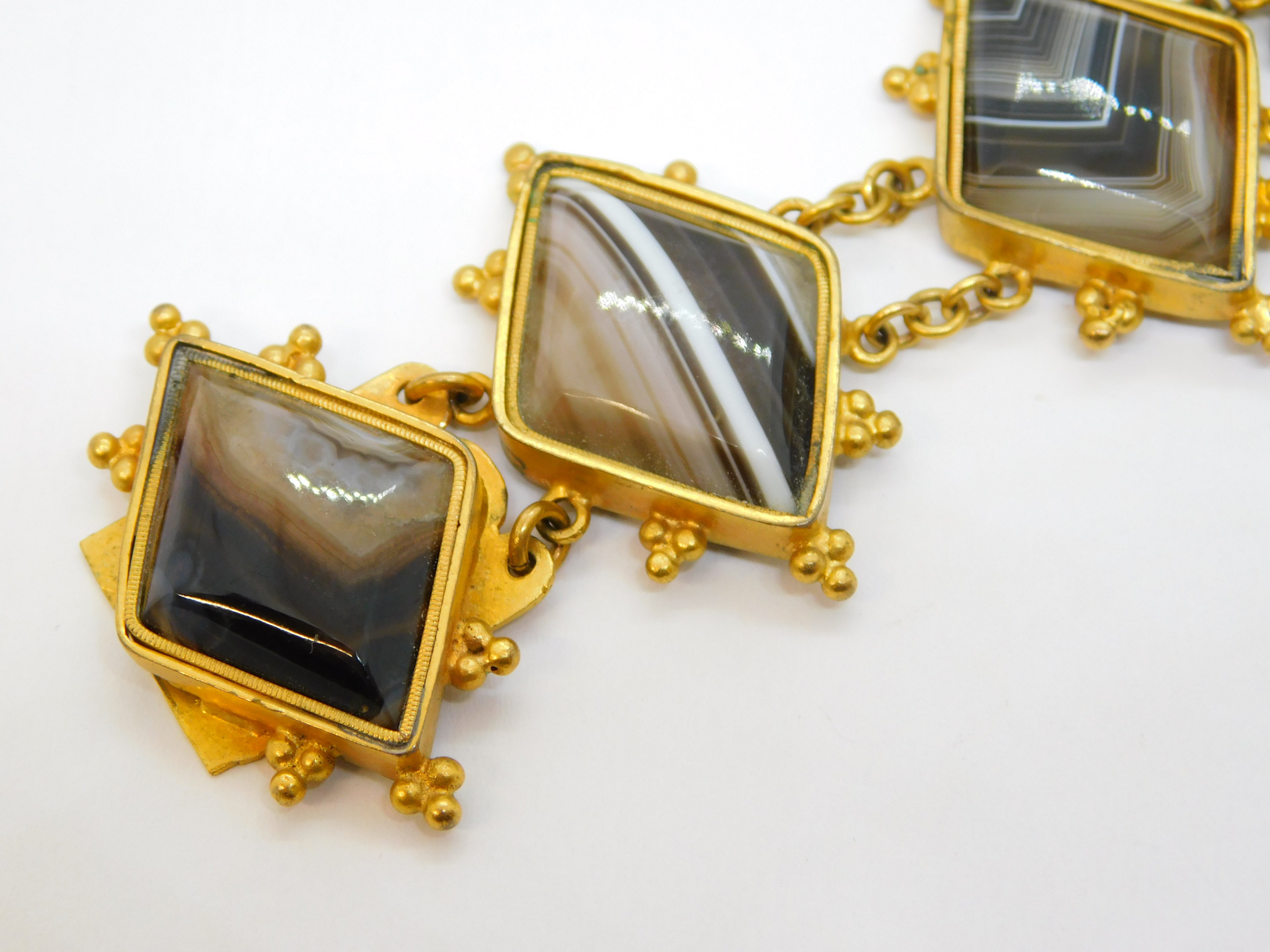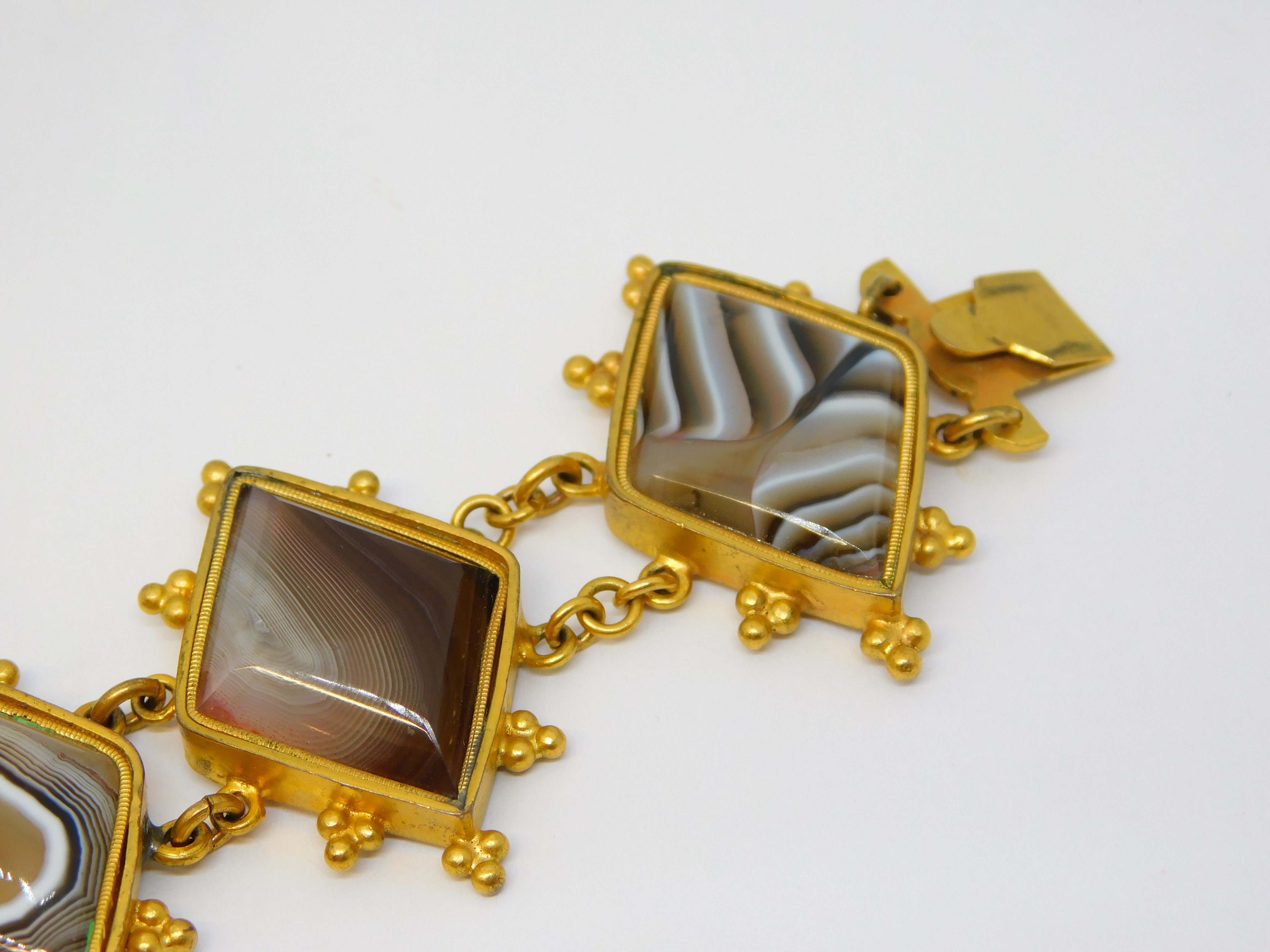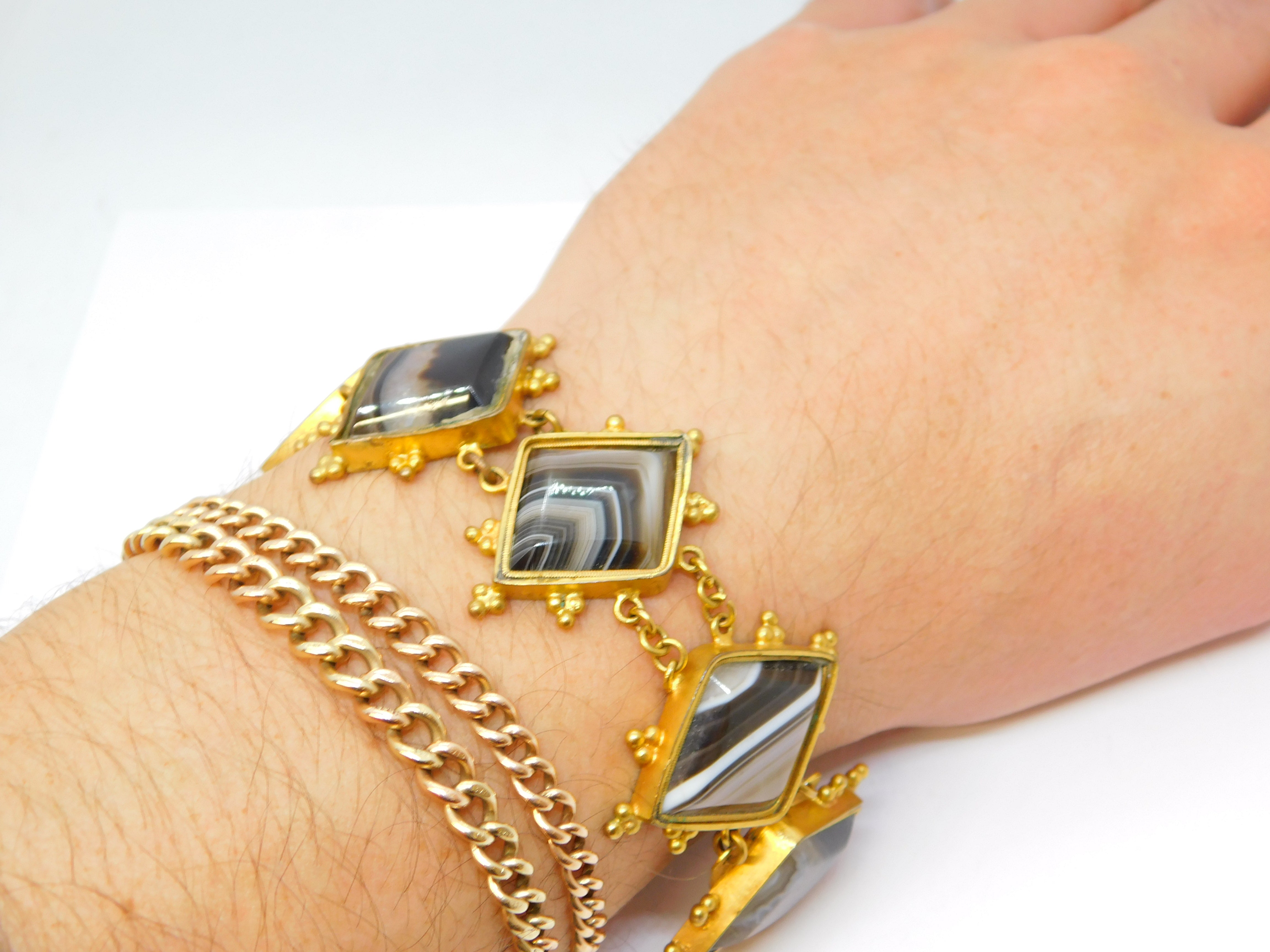 Details: A fantastic and wonderfully designed antique georgian yellow metal mounted panel bracelet with charming diamond-cut banded agate sections c1790, nice quality and condition. This is a wonderful item that would make a perfect gift or addition to any collection. We are more than happy to provide XRF reports for items upon request.