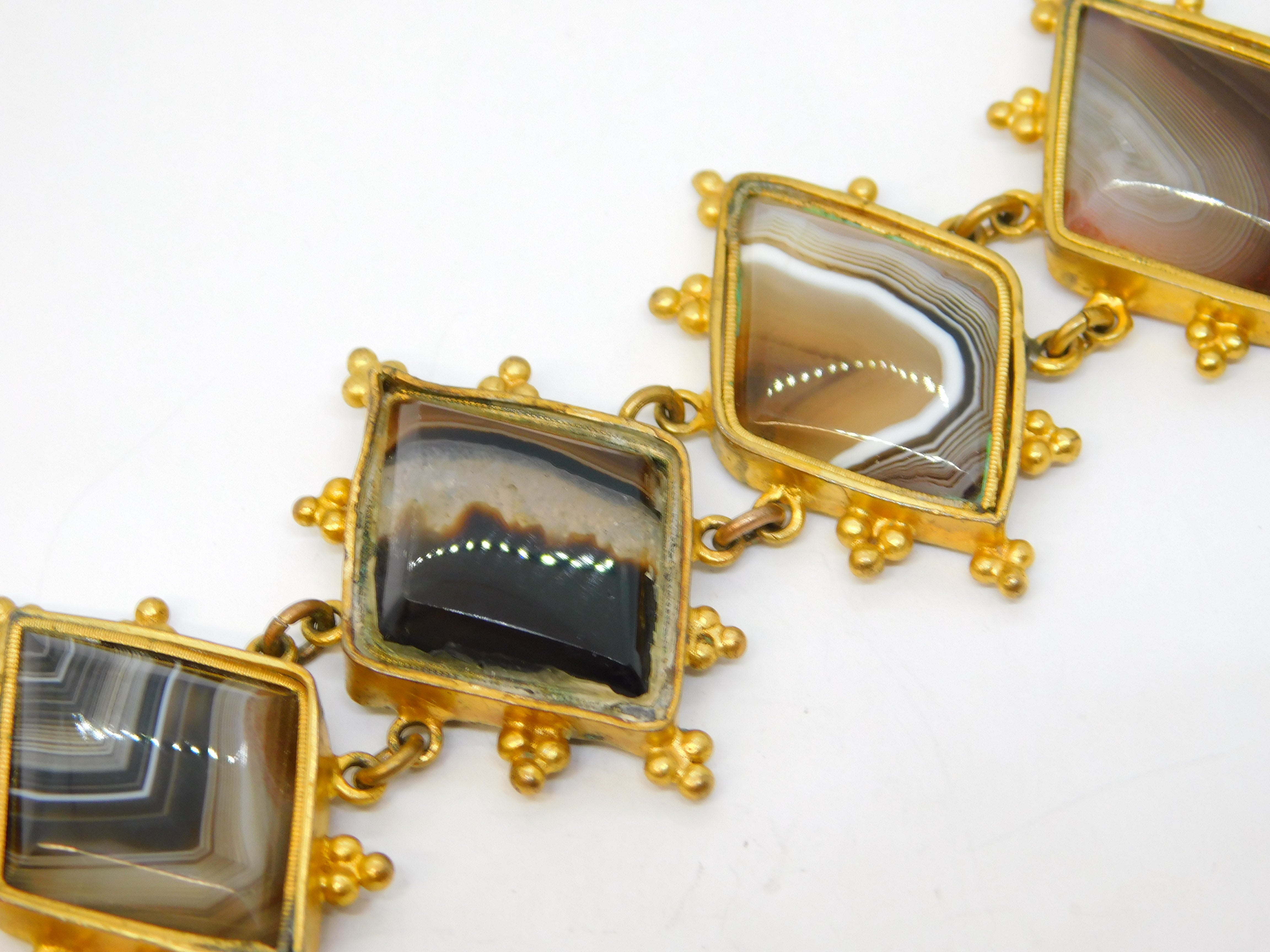 Georgian Yellow Metal & Banded Agate Set Panel Bracelet Antique c1790