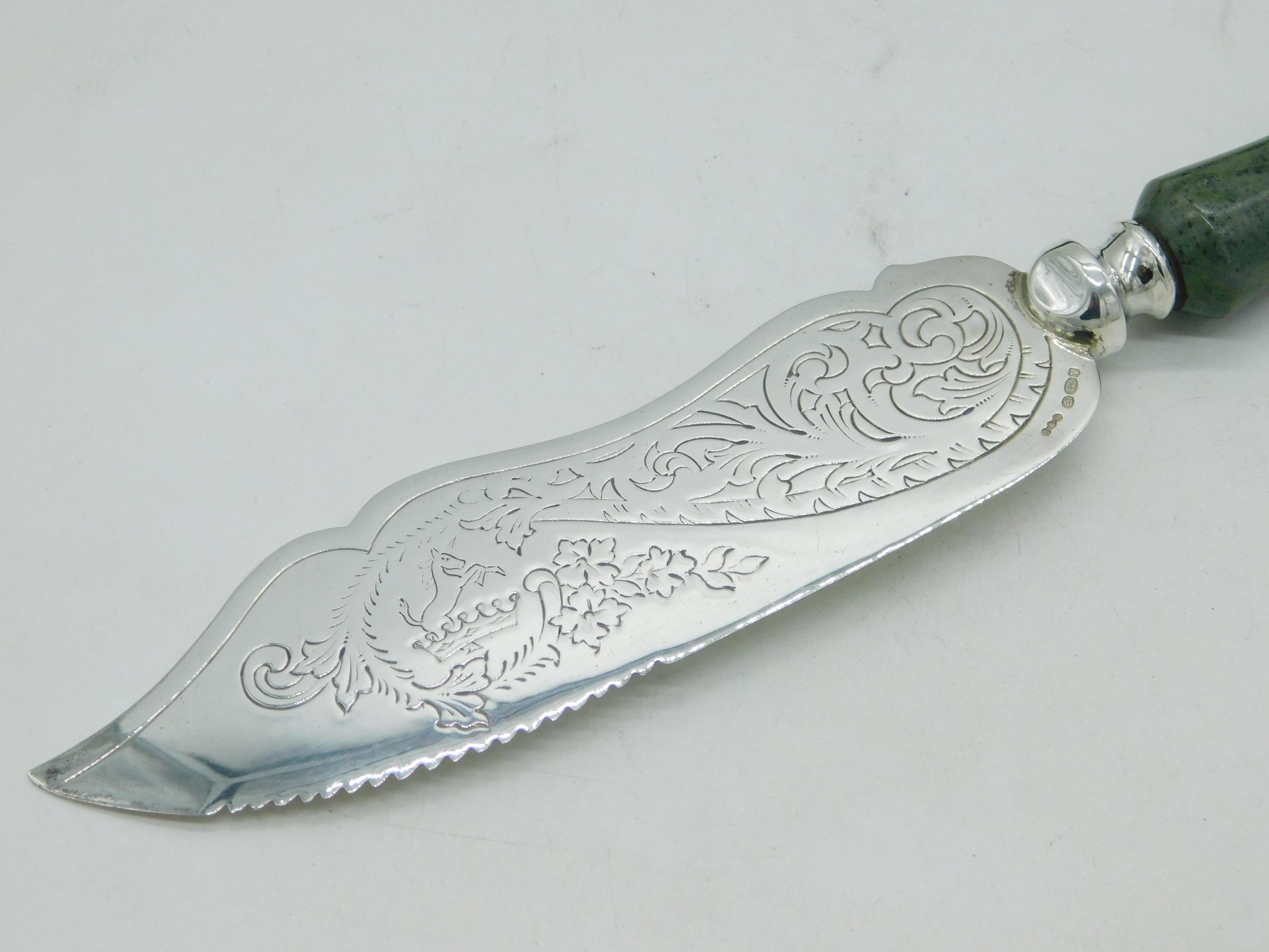 Irish Sterling Silver & Connemara Marble Handled Boxed Cake Slice Vintage Dublin