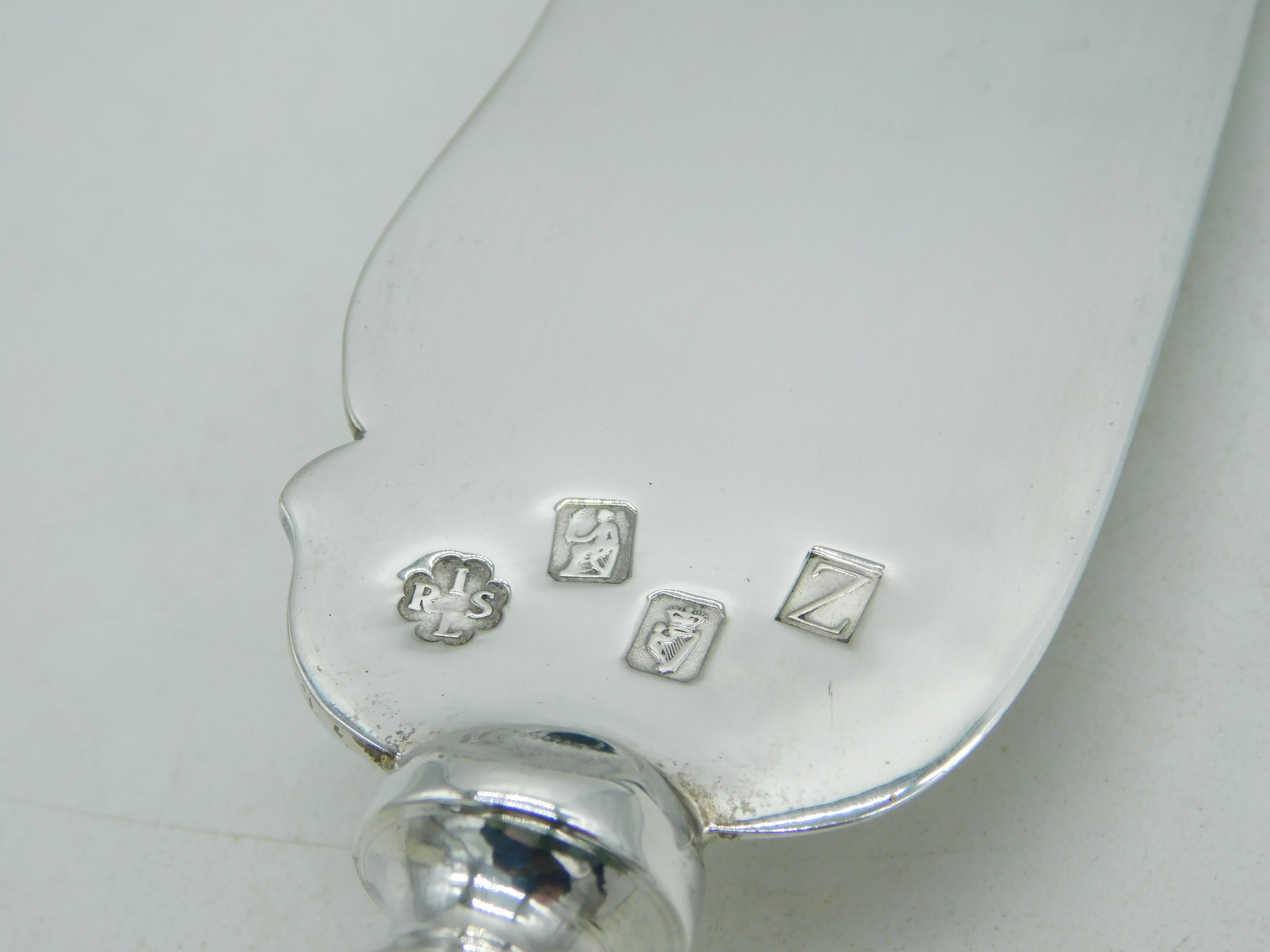 Details: A fantastic and wonderfully designed vintage Irish boxed sterling silver & connemara handled large cake slice included in the original fitted box, hallmarked for Dublin 1967 by the Royal Irish Silver Company. This is a wonderful item that would make a perfect gift or addition to any collection. We are more than happy to provide XRF reports for items upon request.