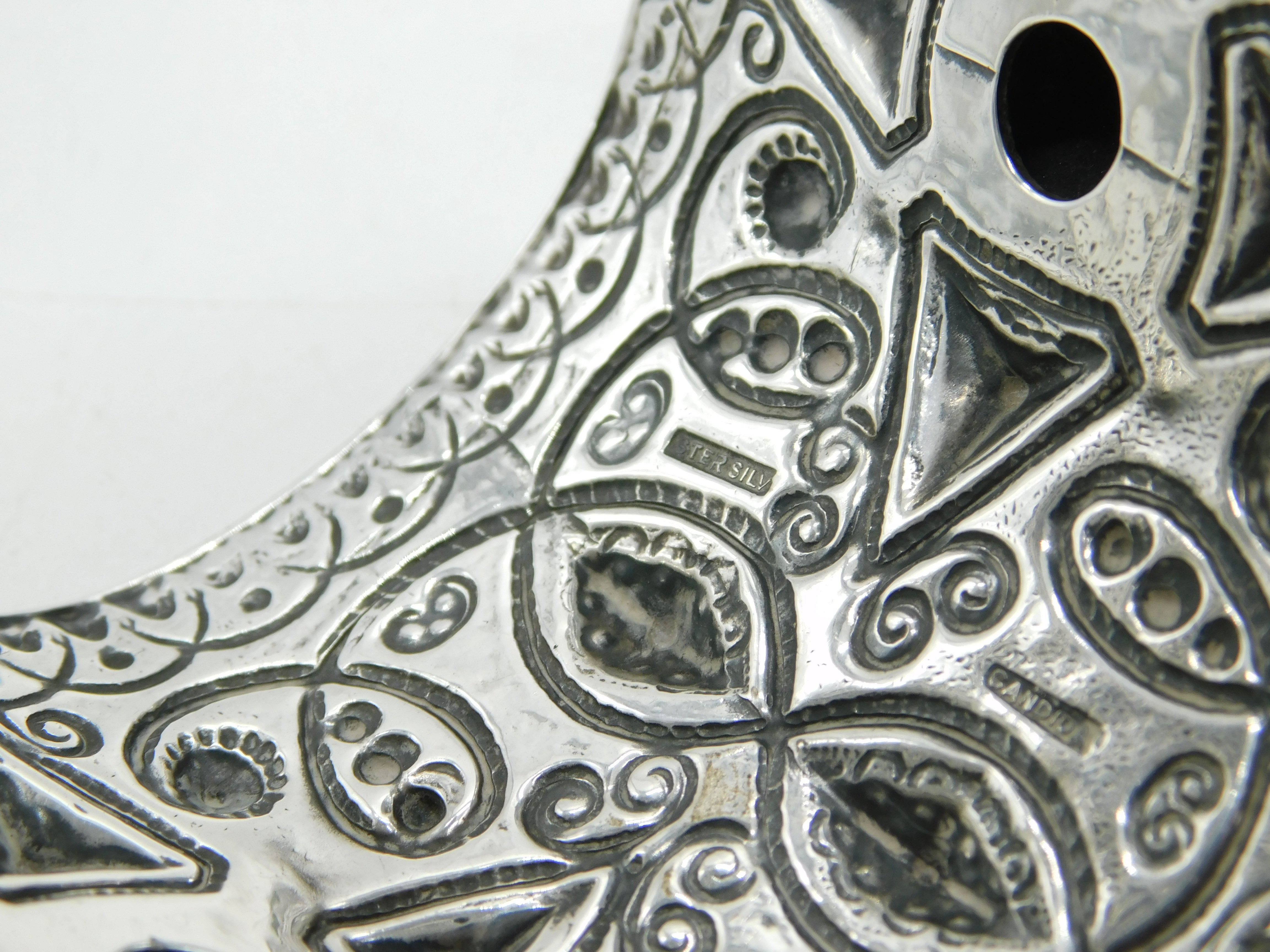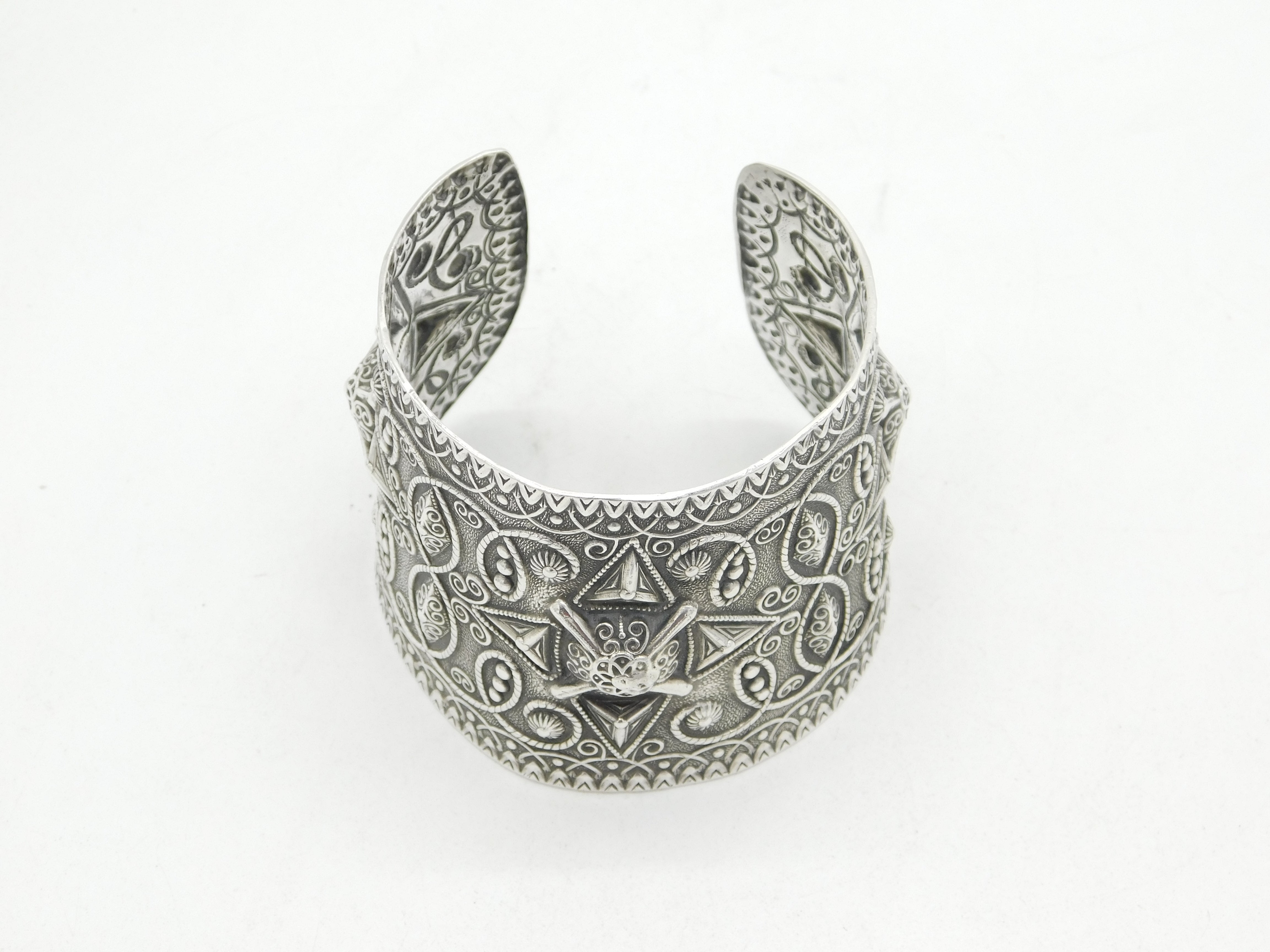 Details: A fantastic and wonderfully designed vintage South African large sterling silver ornate armlet cuff bangle by Joe Calafato of Candida hallmarked to the interior. This is a wonderful item that would make a perfect gift or addition to any collection. We are more than happy to provide XRF reports for items upon request.
