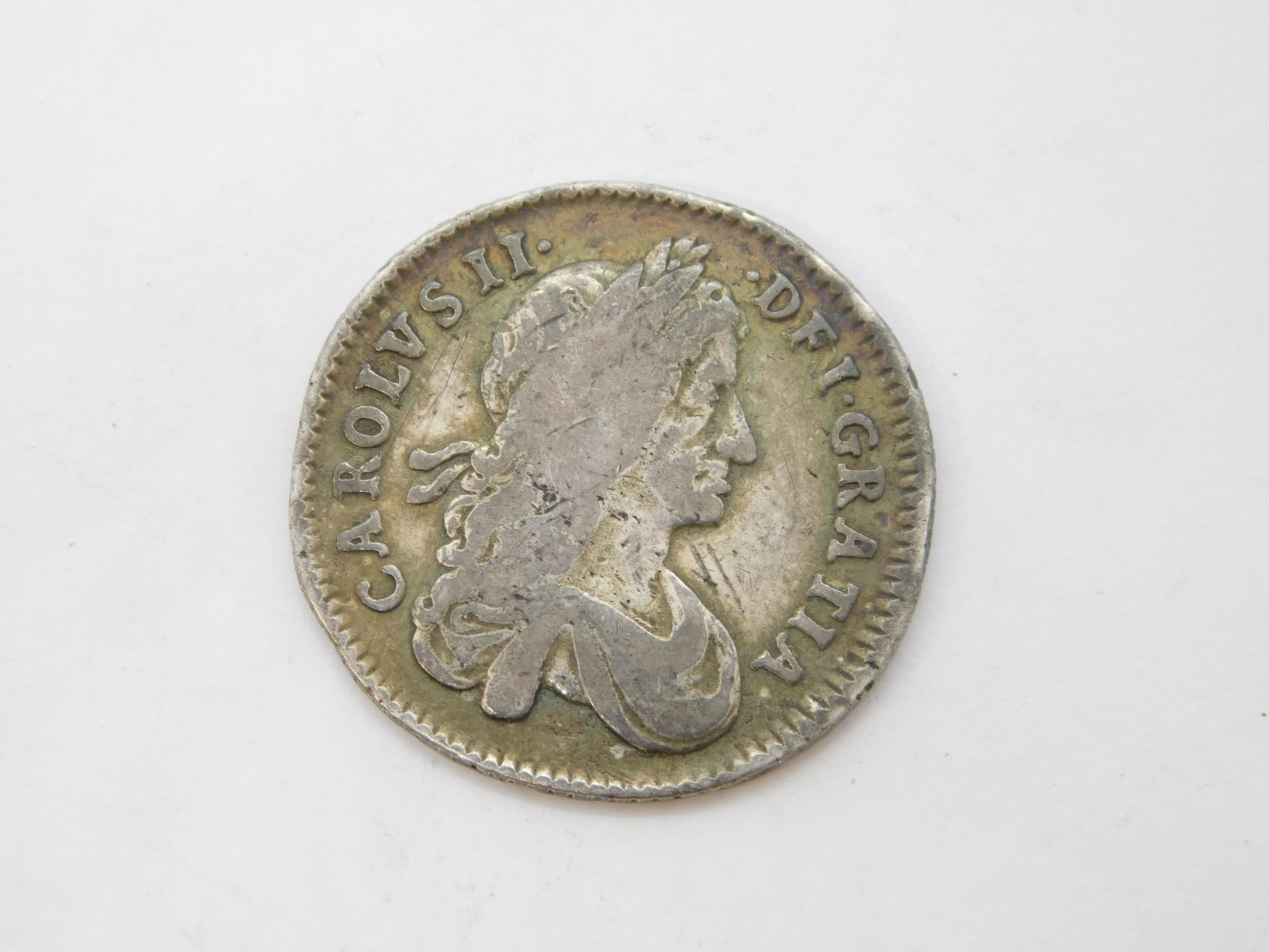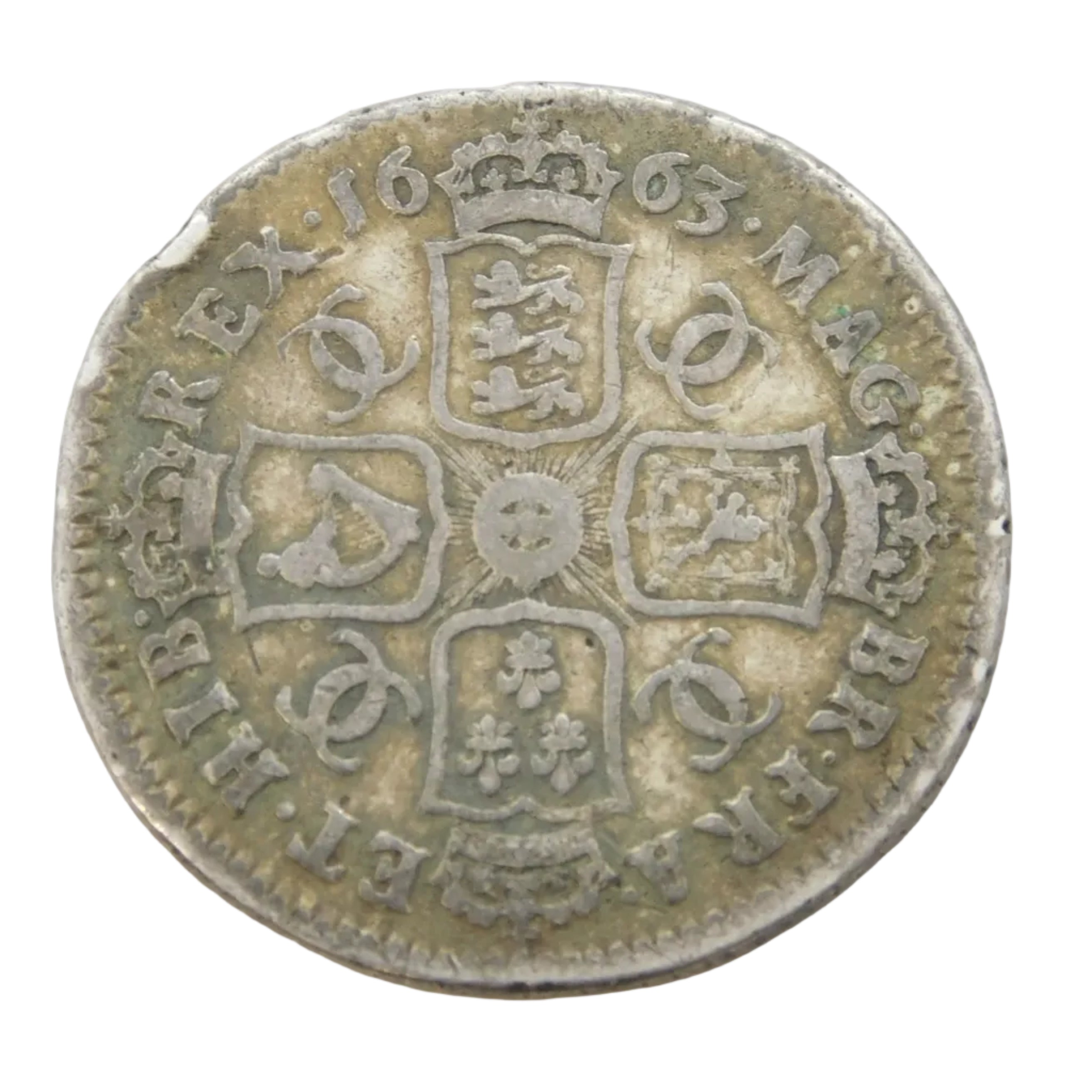 King Charles II Early Milled Silver Shilling Coin First Bust 1663 Fair Condition