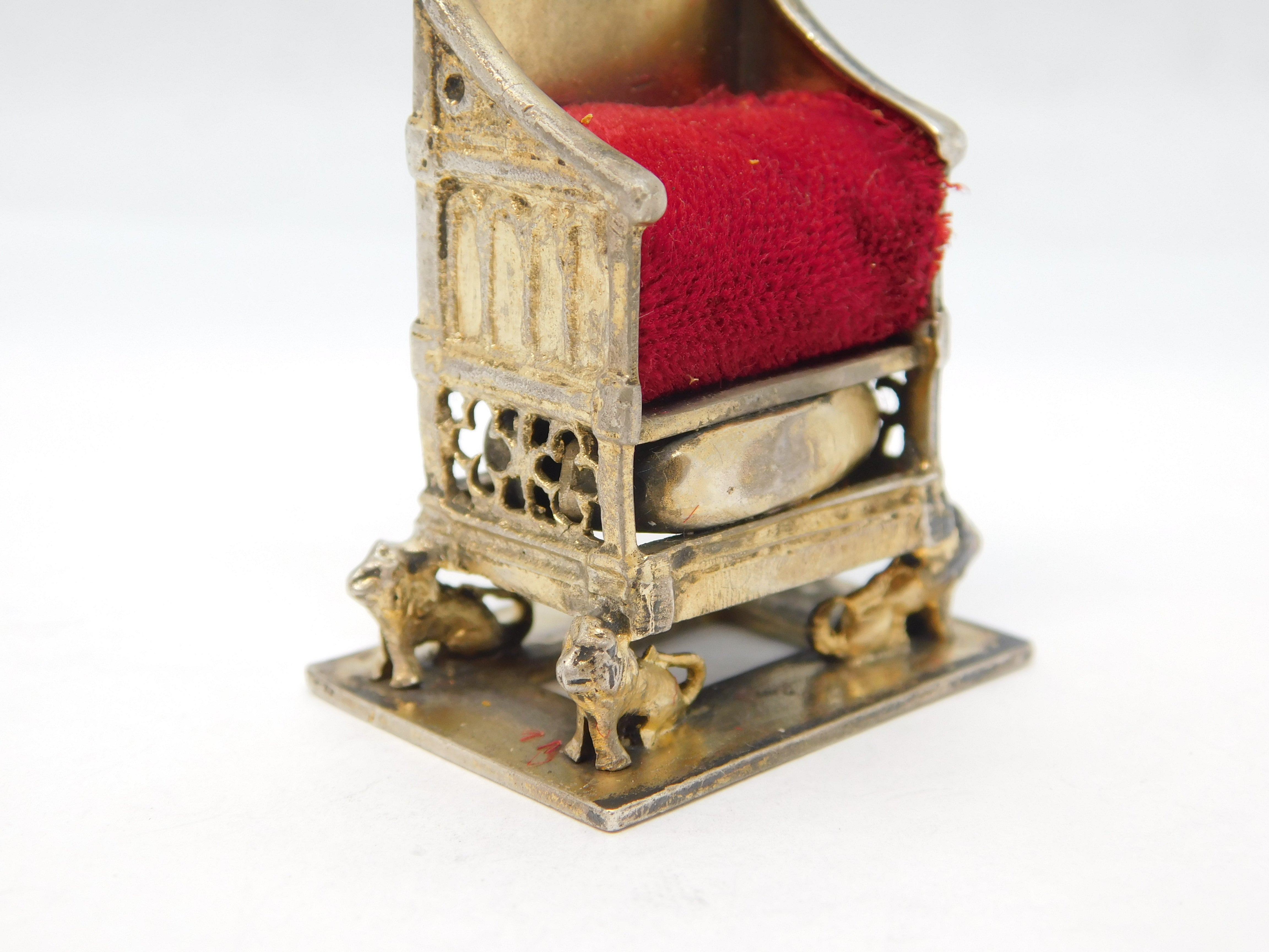 King Edward VII Sterling Silver Coronation Throne Pin Cushion Antique 1901