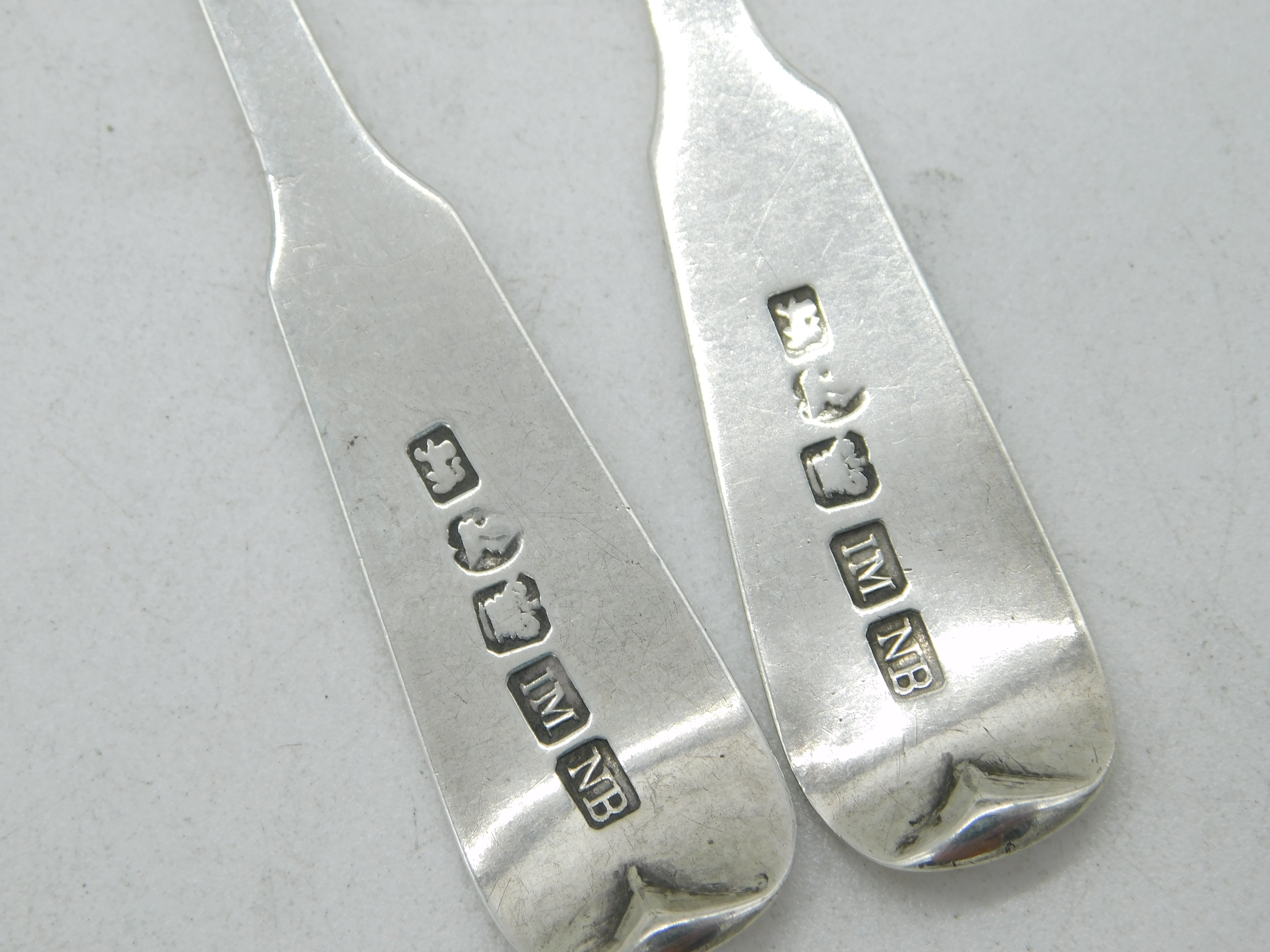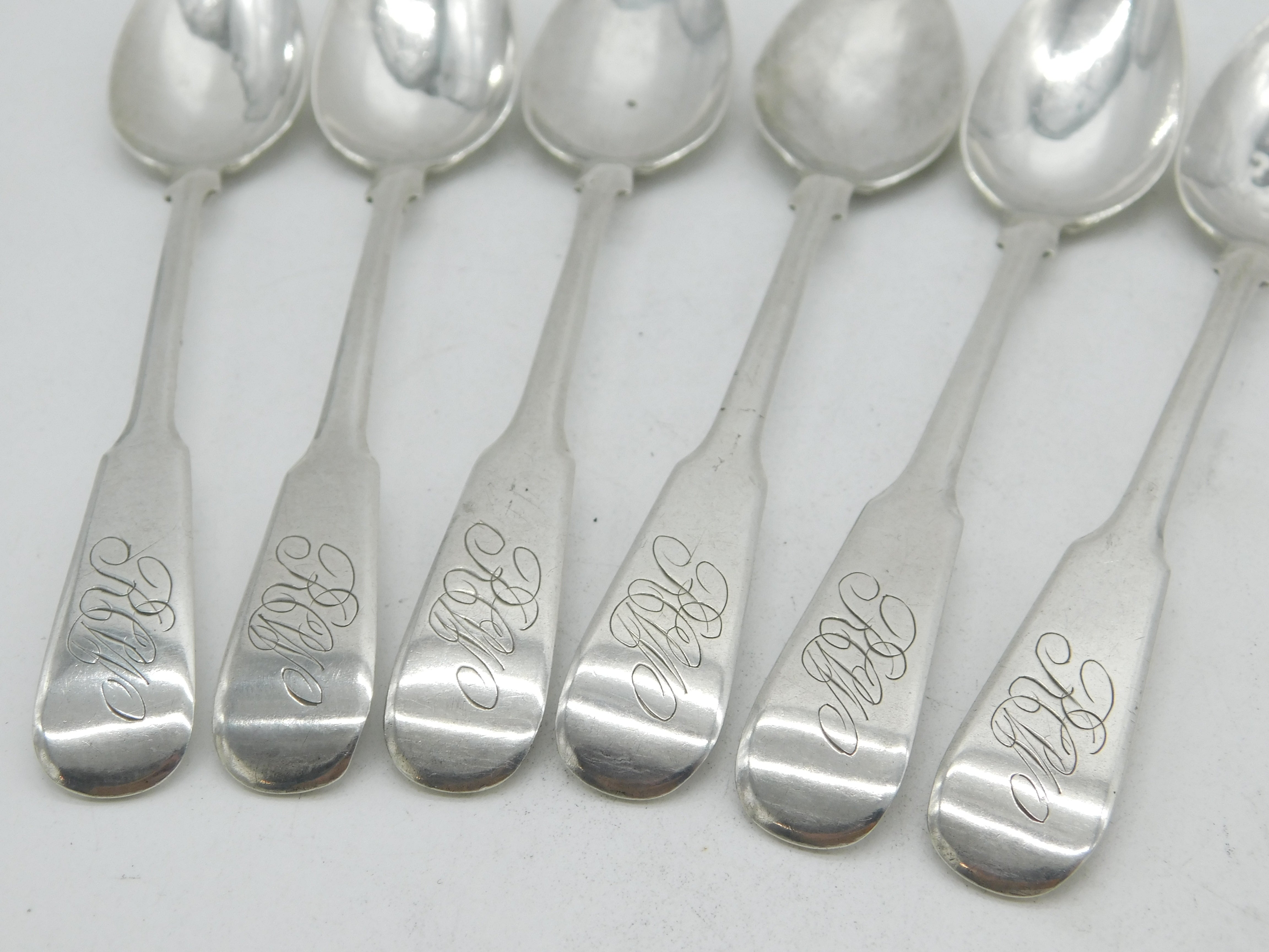 Details: A fantastic and wonderfully designed antique georgian period Canadian provincial set of sterling silver fiddle & thread pattern teaspoons hallmarked to the reverse for New Brunswick by maker John Munro c1820. Applied initials to the terminals. This is a wonderful item that would make a perfect gift or addition to any collection. We are more than happy to provide XRF reports for items upon request.