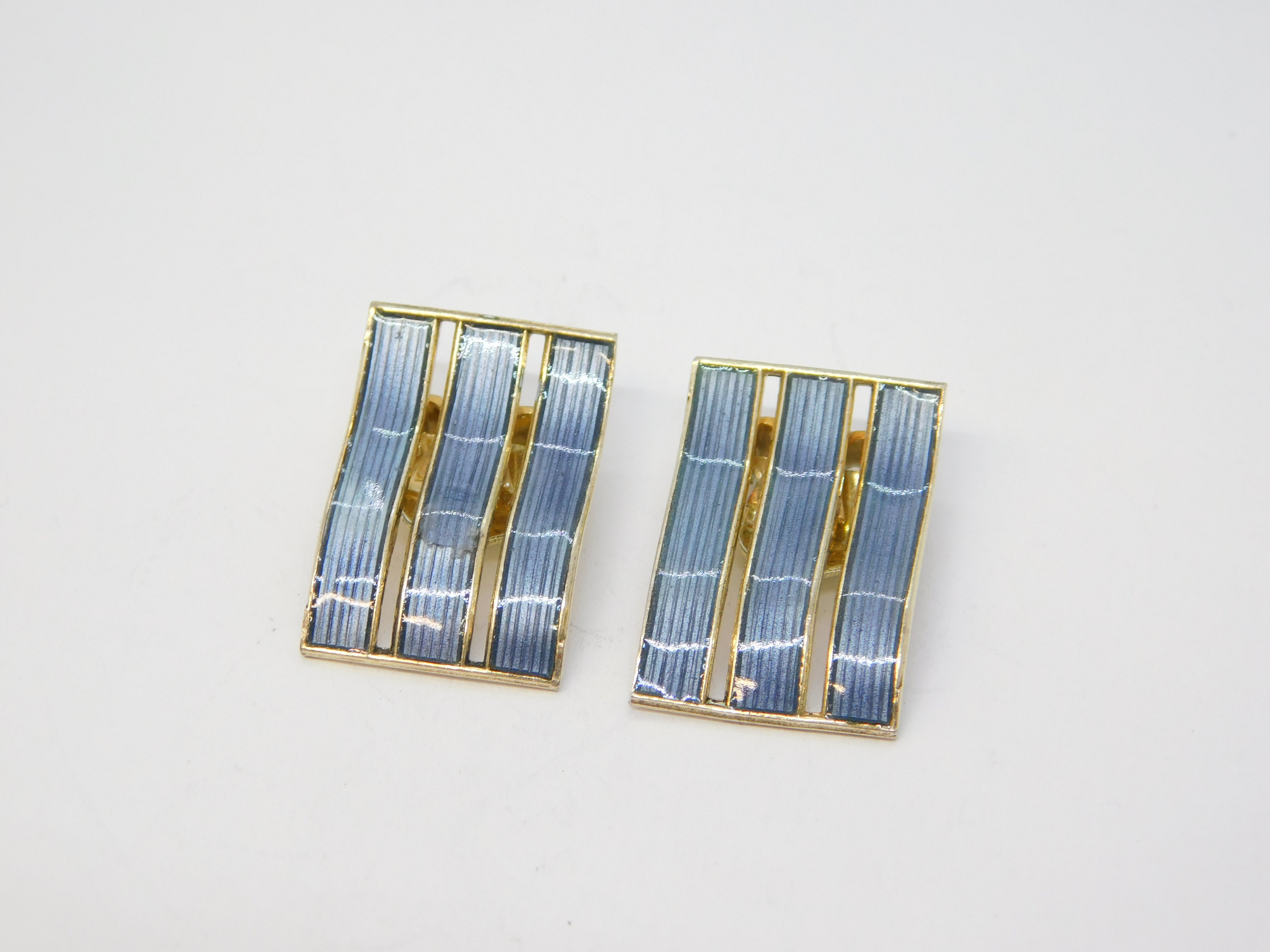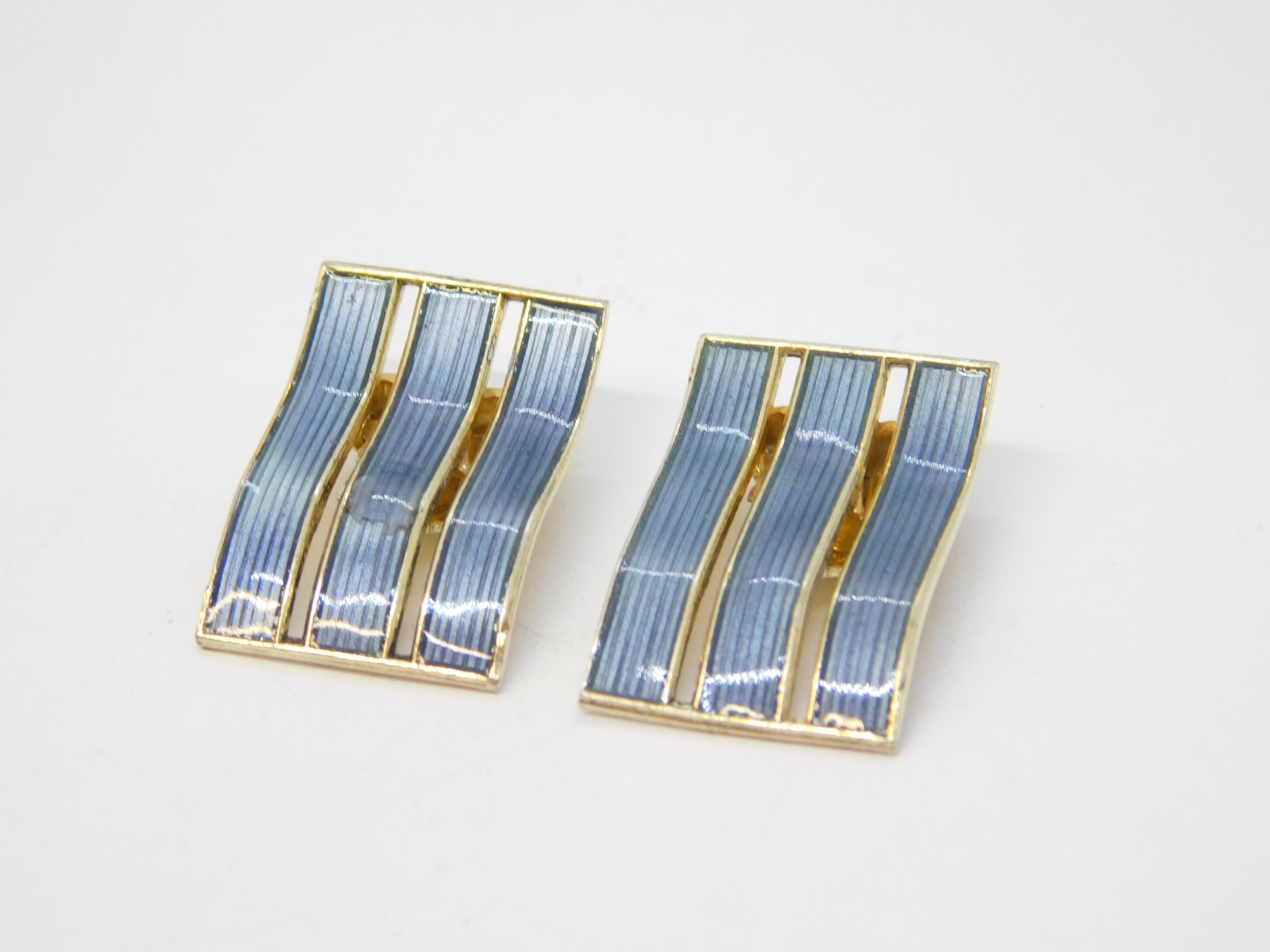Norwegian Sterling Silver Blue Enamel Clip-On Earrings Antique c1930 Ivar T. Holth