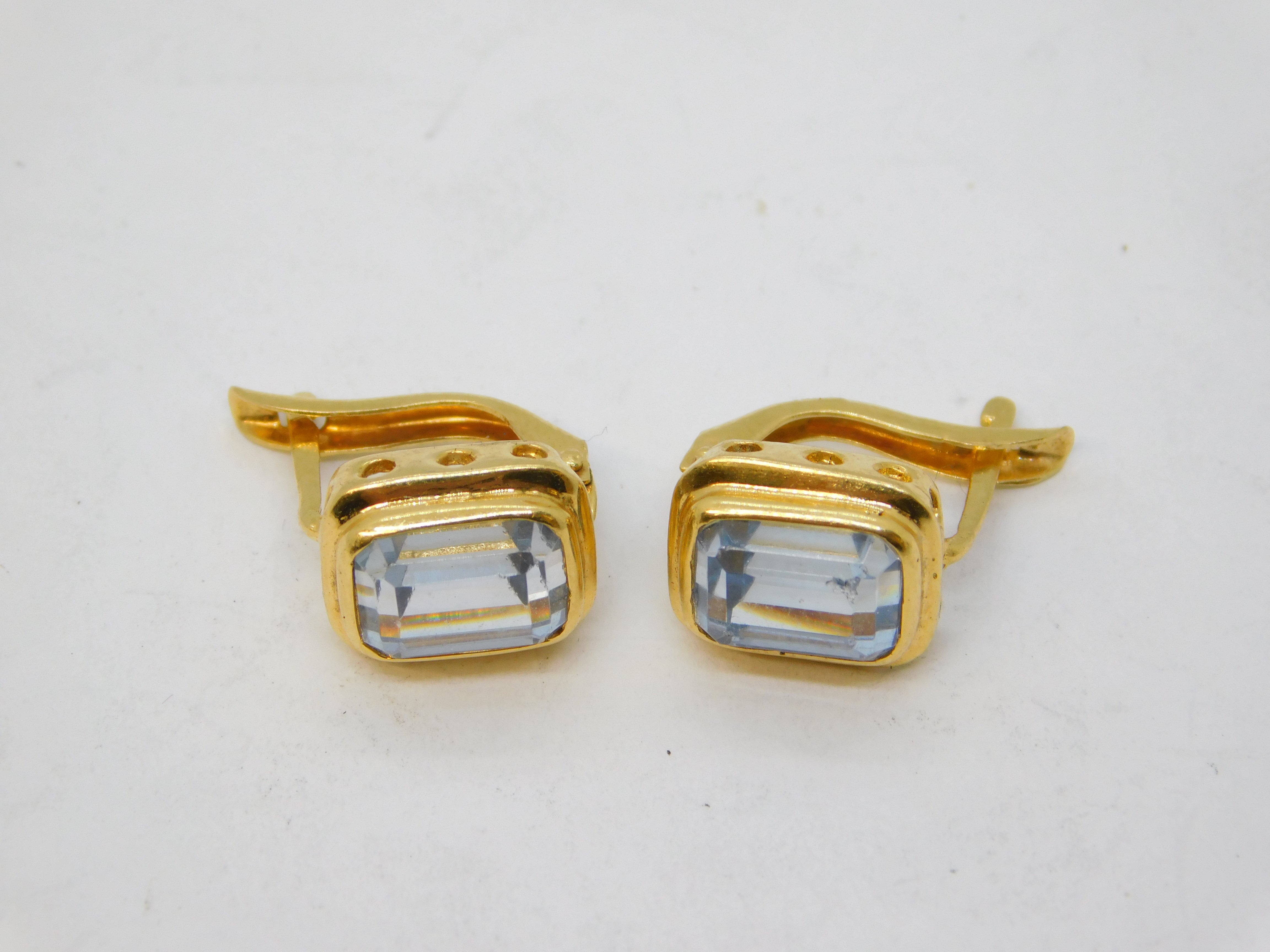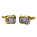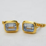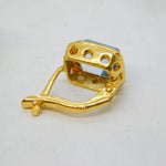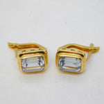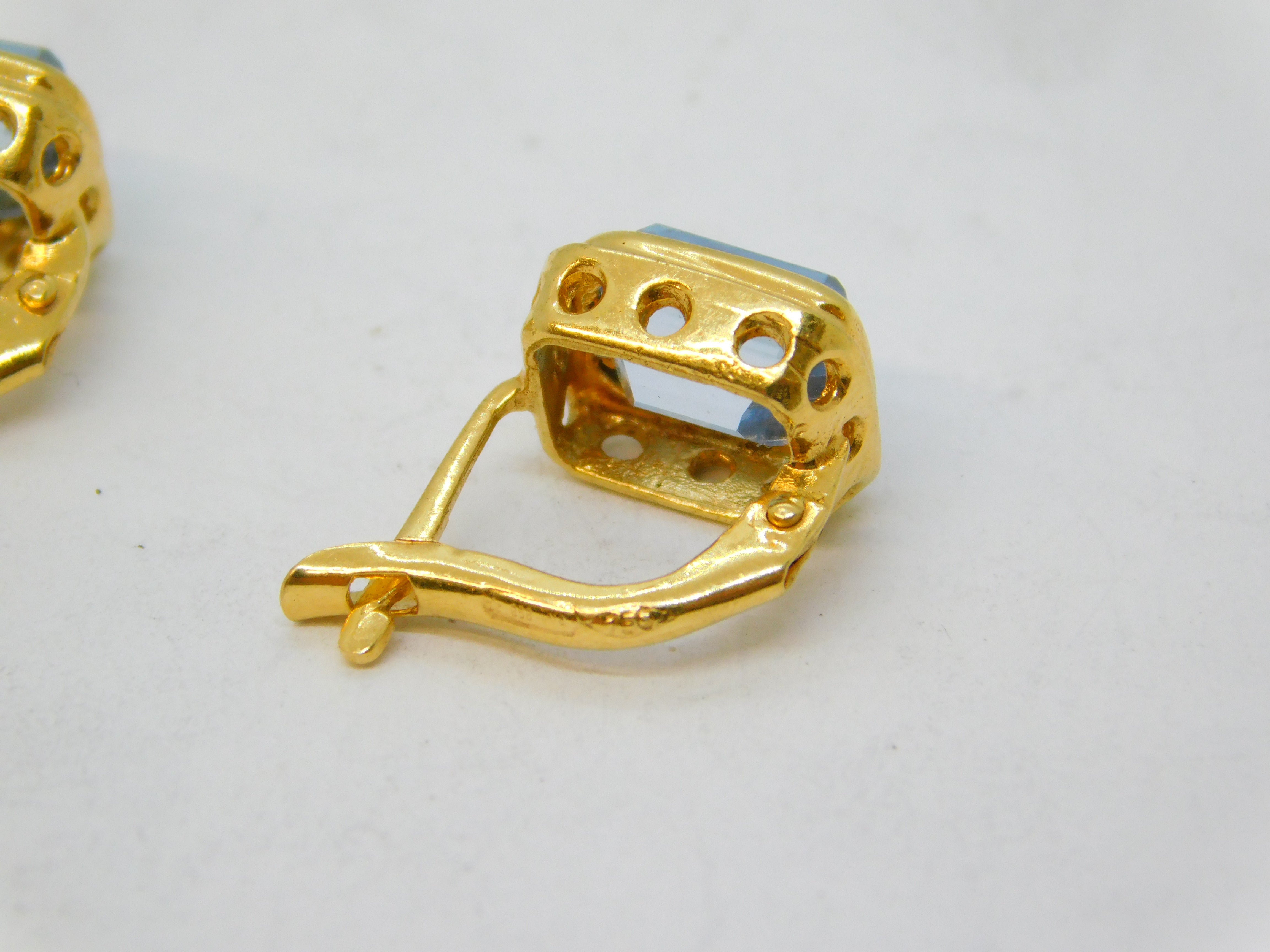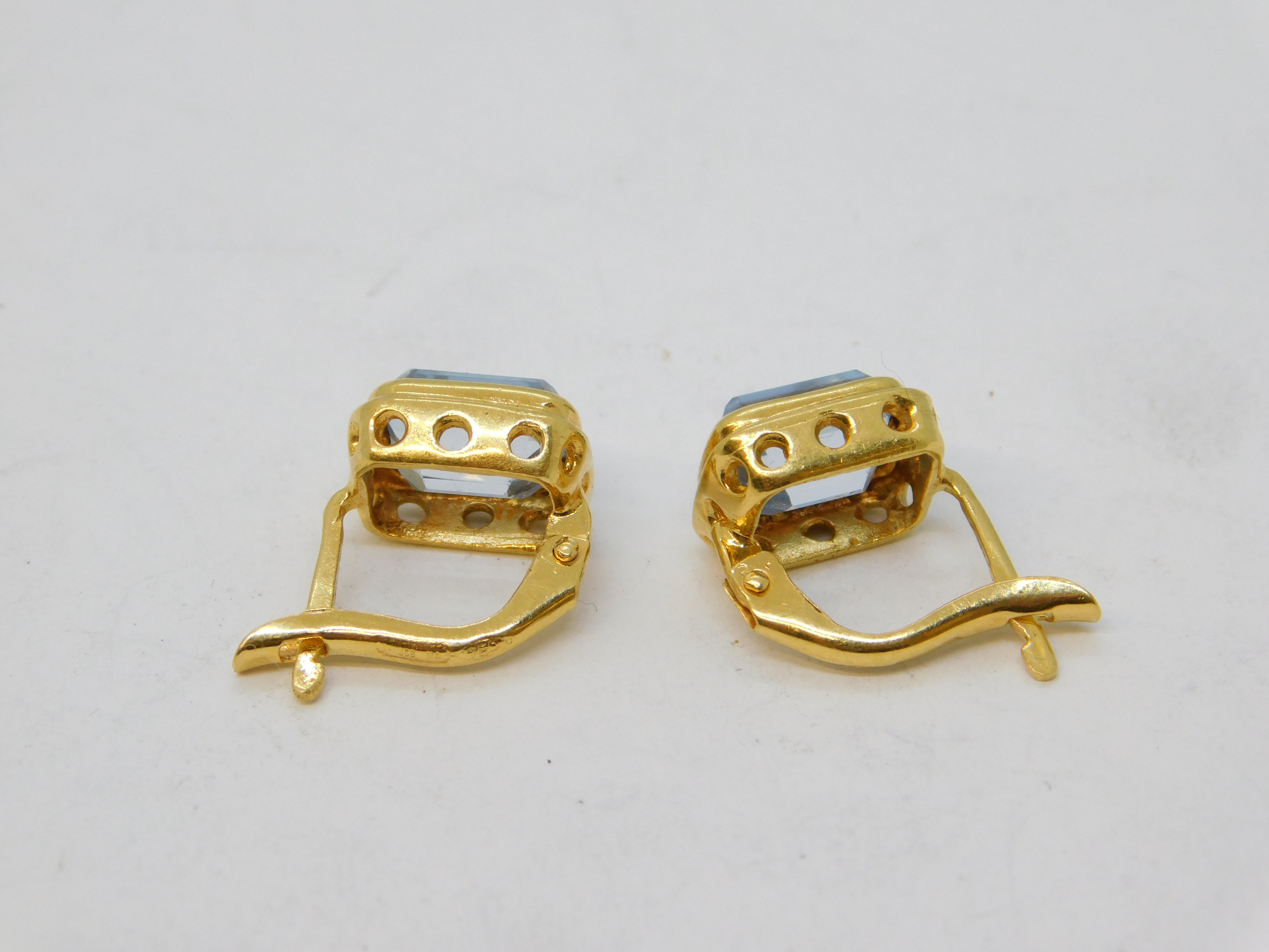 Pair of 18ct Yellow Gold Emerald Cut 2ct Aquamarine Earrings Vintage