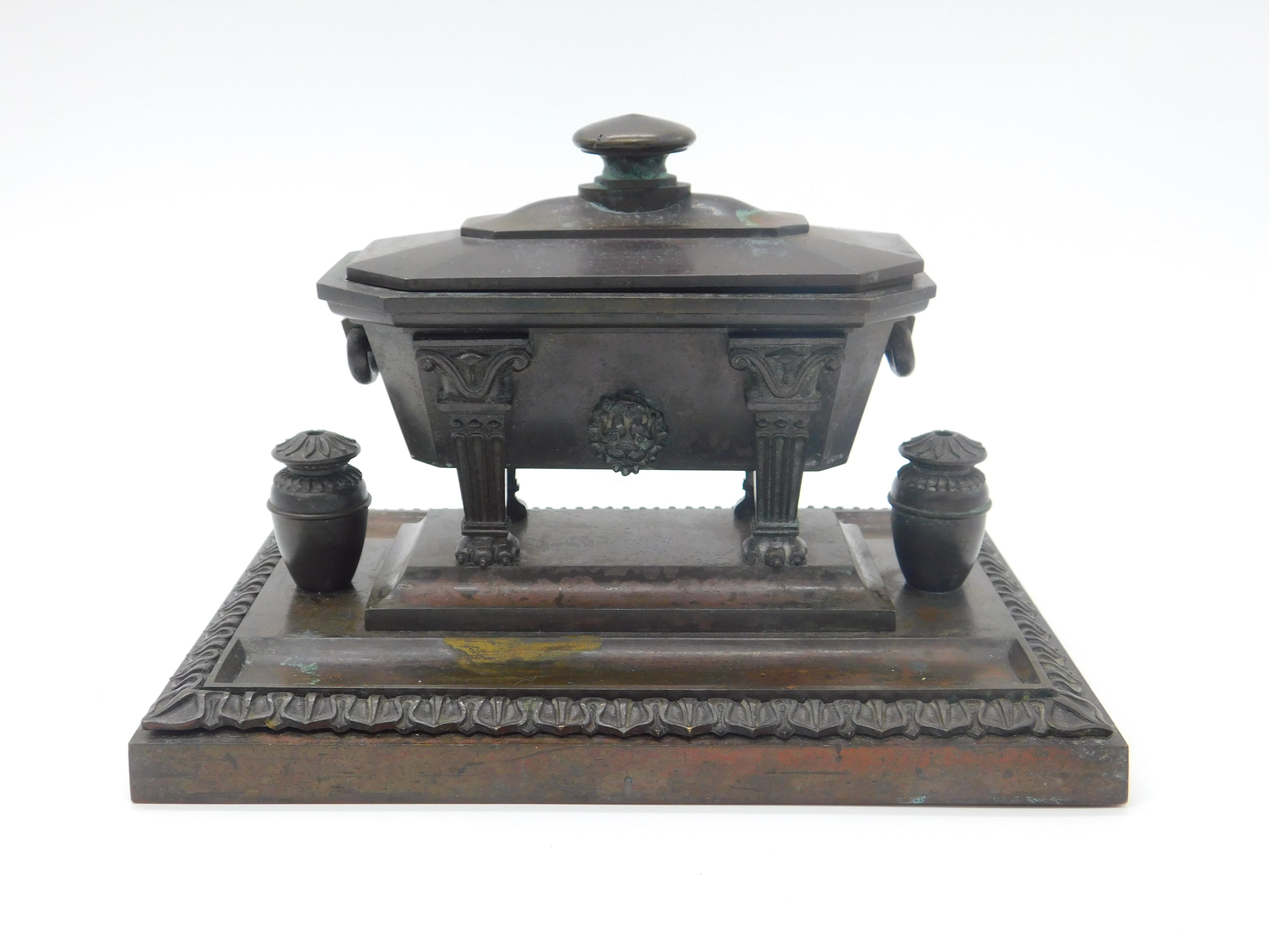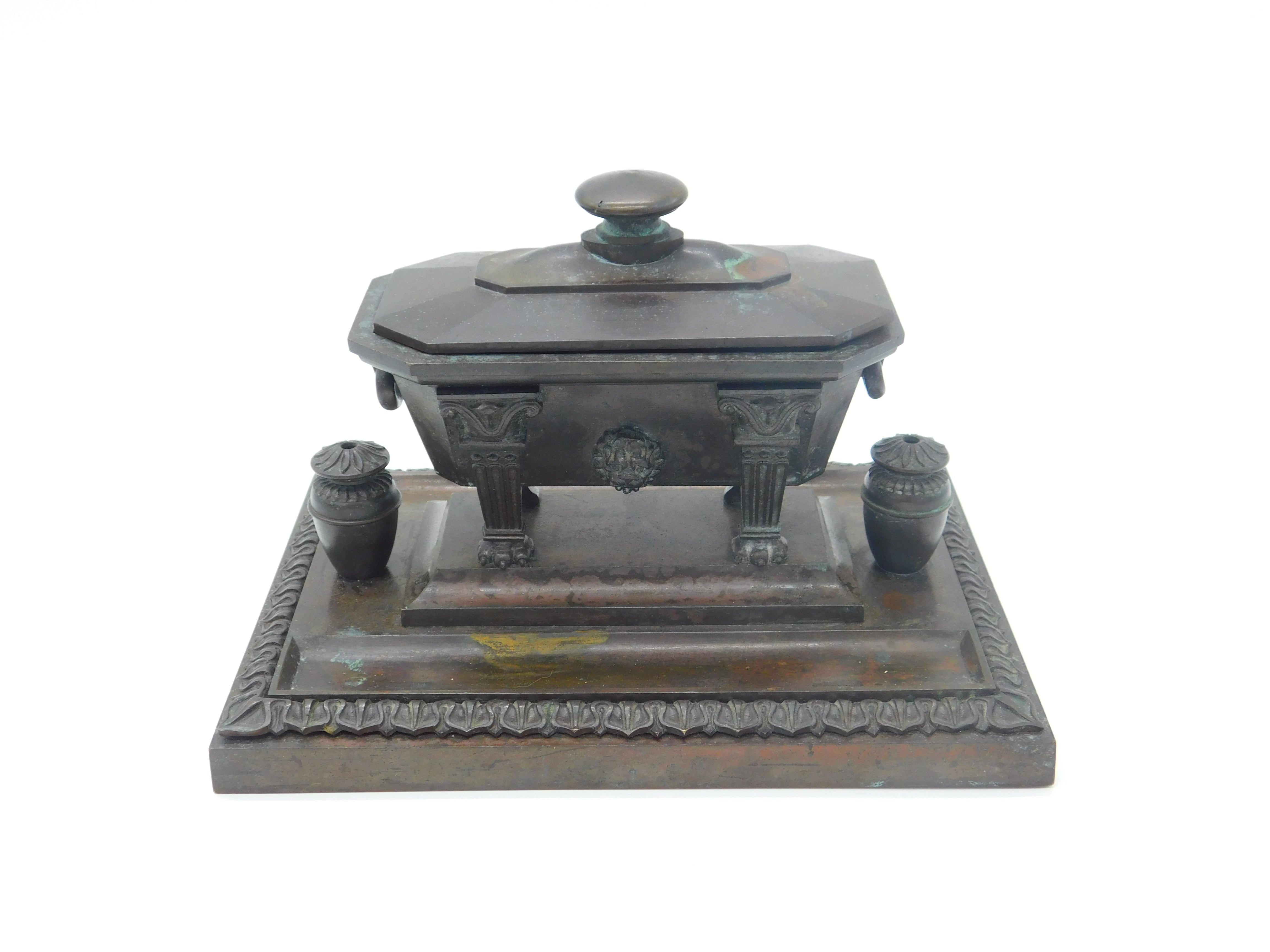 Regency Grand Tour Cast Bronze Sarcophagus Scipio Tomb Inkwell c1820 Georgian