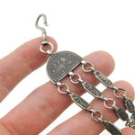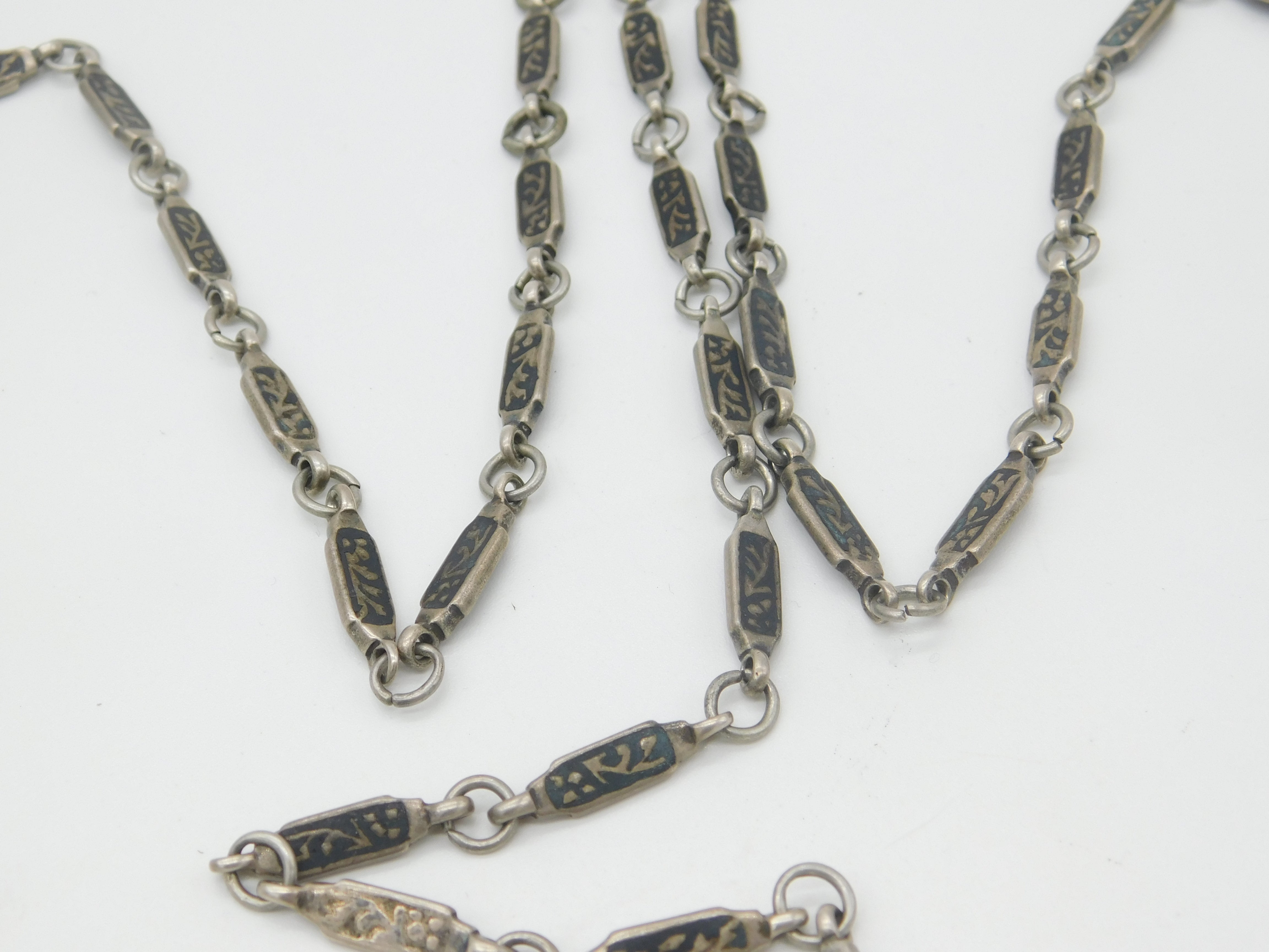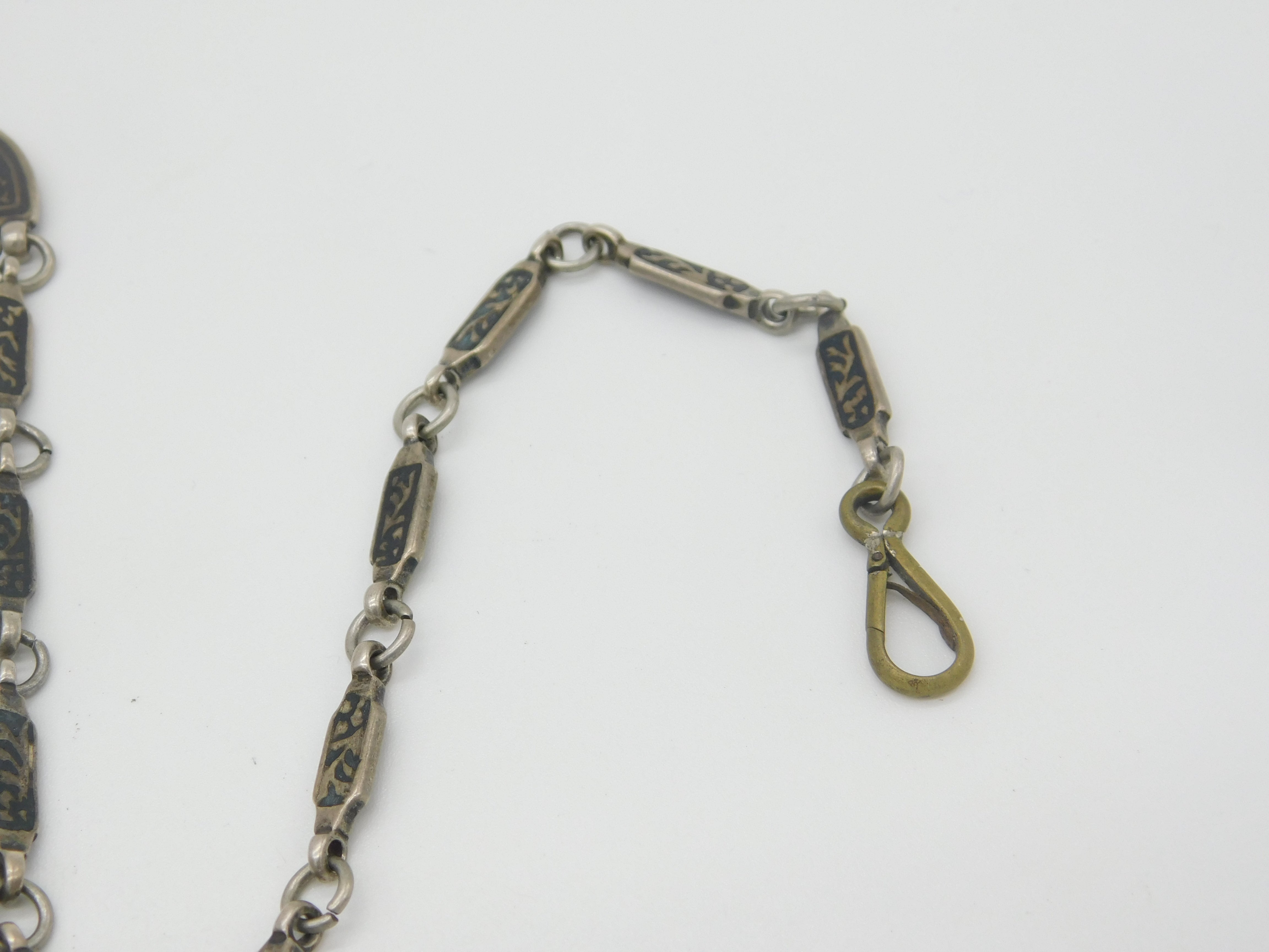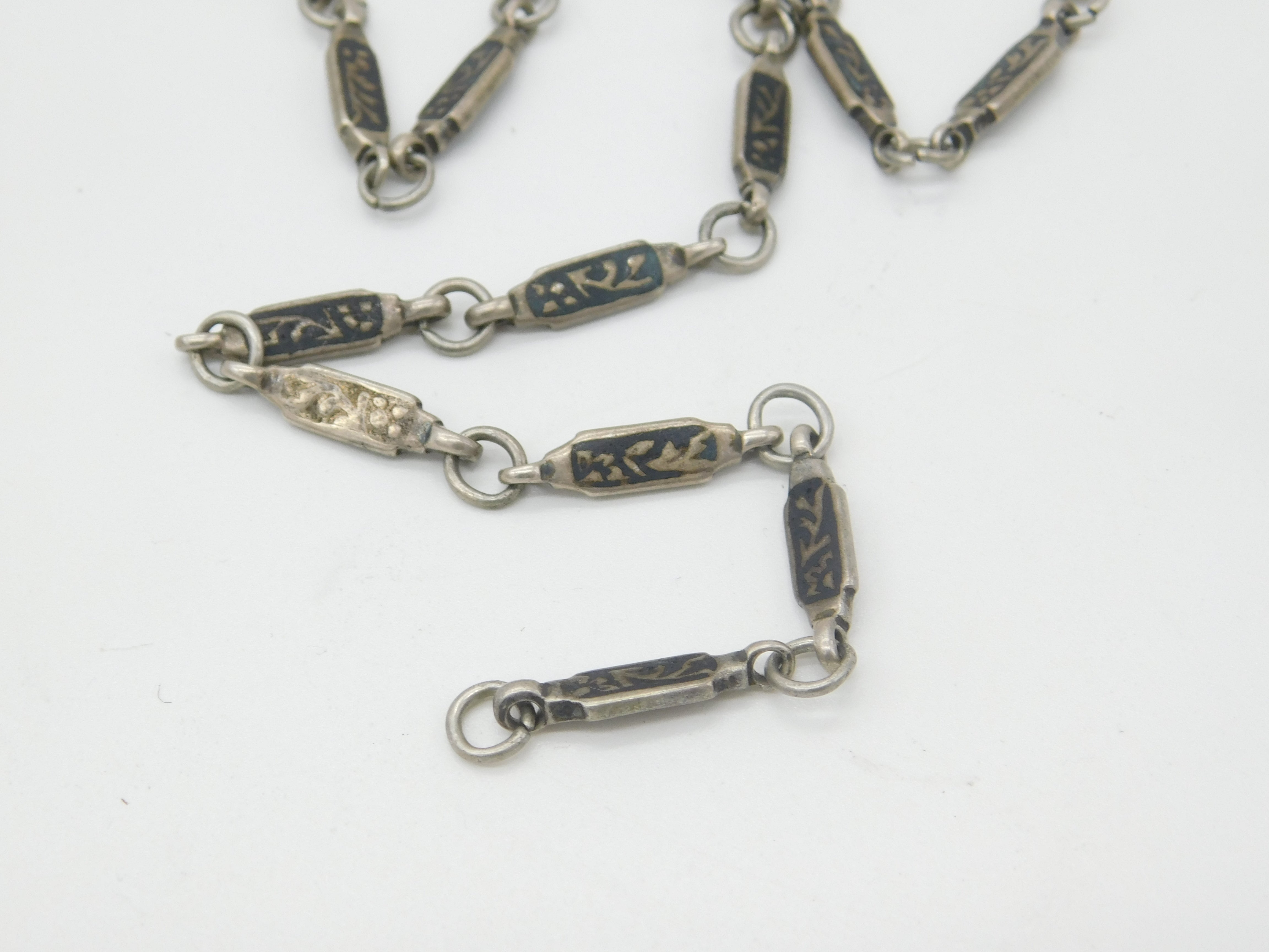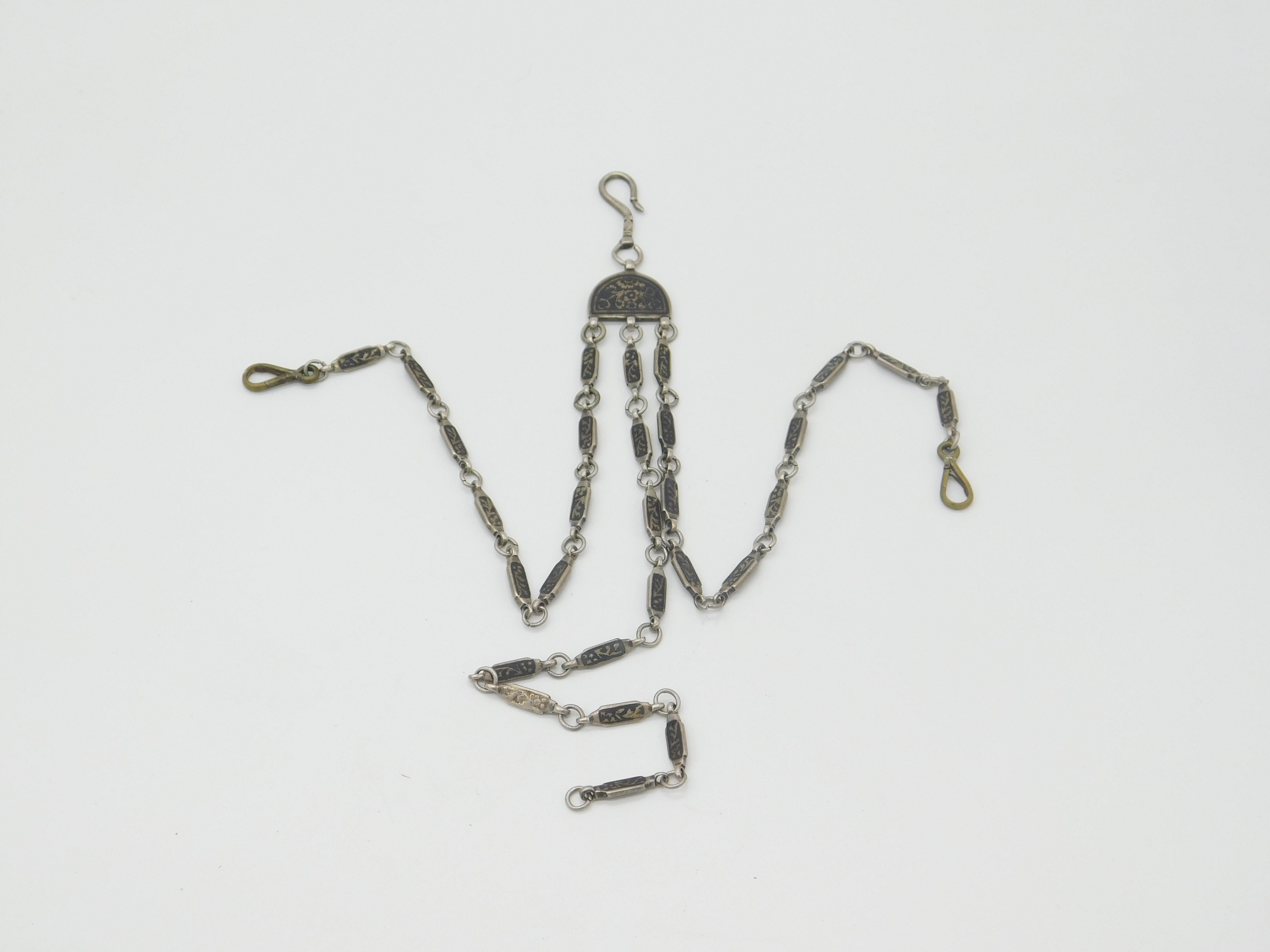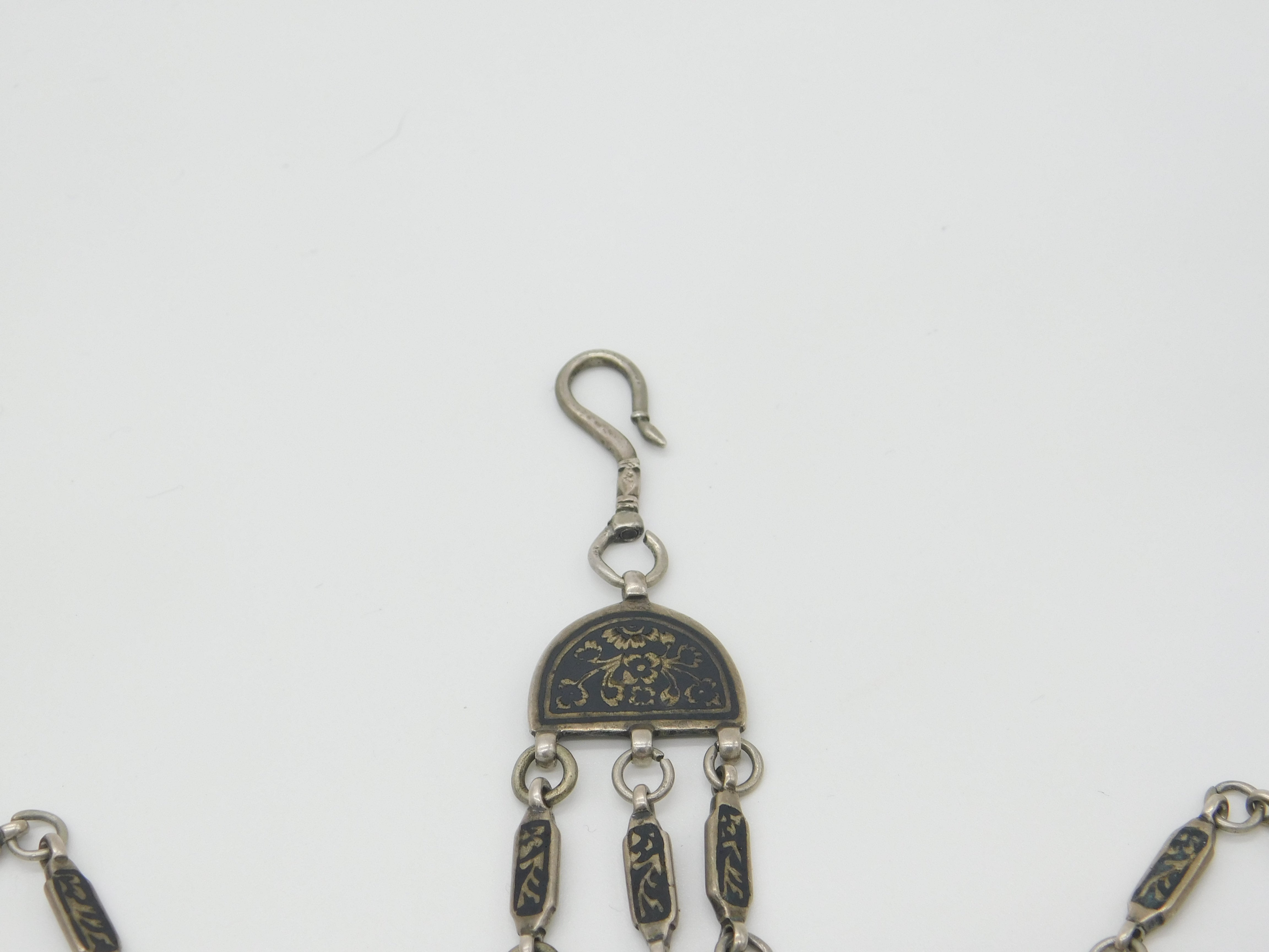 Russian White Metal & Niello Enamel Sewing Chatelaine with Clips Antique c1860