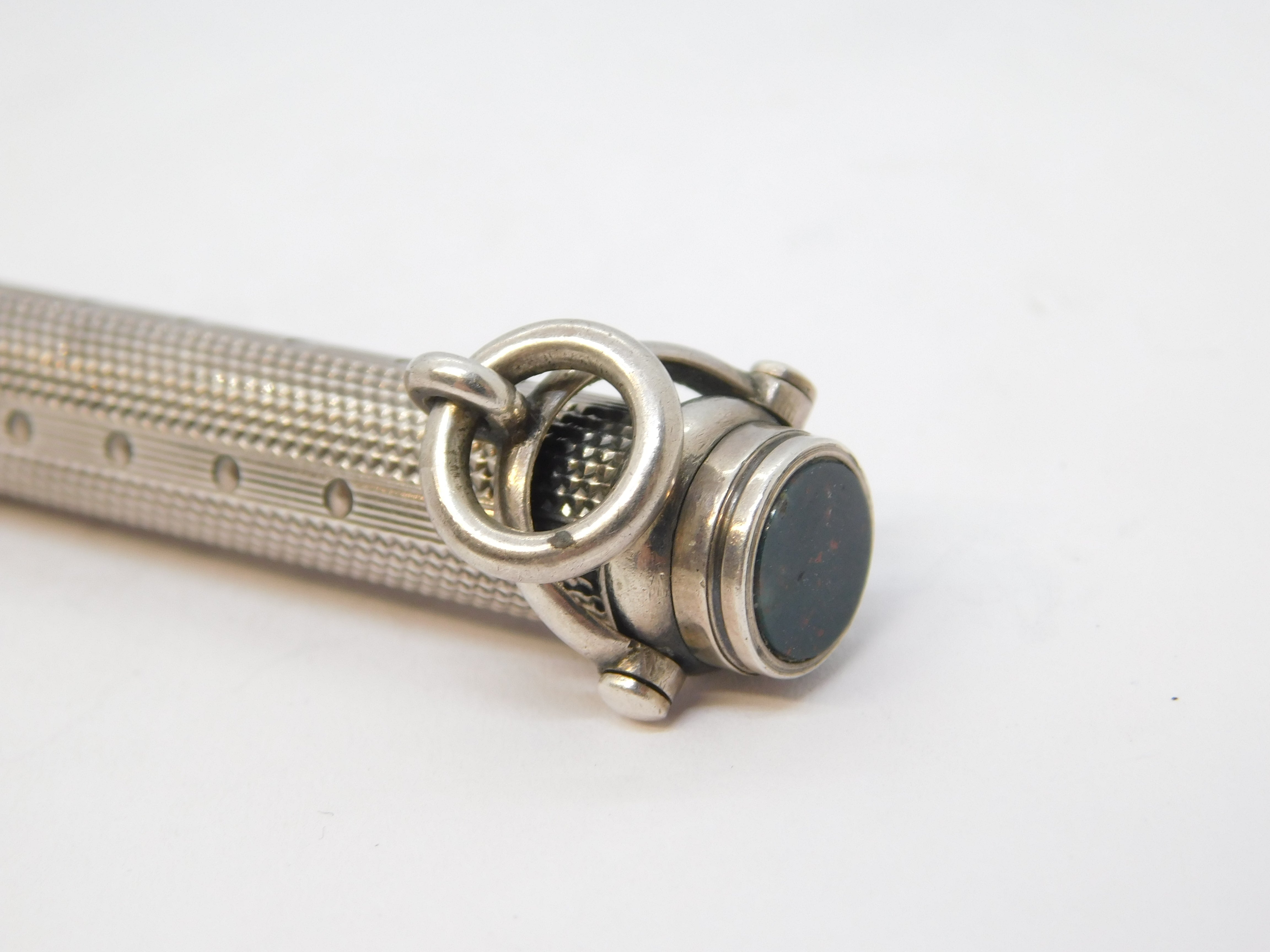 Details: A fantastic and wonderfully designed antique edwardian sterling silver large engine turned multi-tool propelling pencil & fountain pen nib holder with charming detailing hallmarked to the edge by import makers Sampson Mordan & Co. This is a wonderful item that would make a perfect gift or addition to any collection. We are more than happy to provide XRF reports for items upon request.