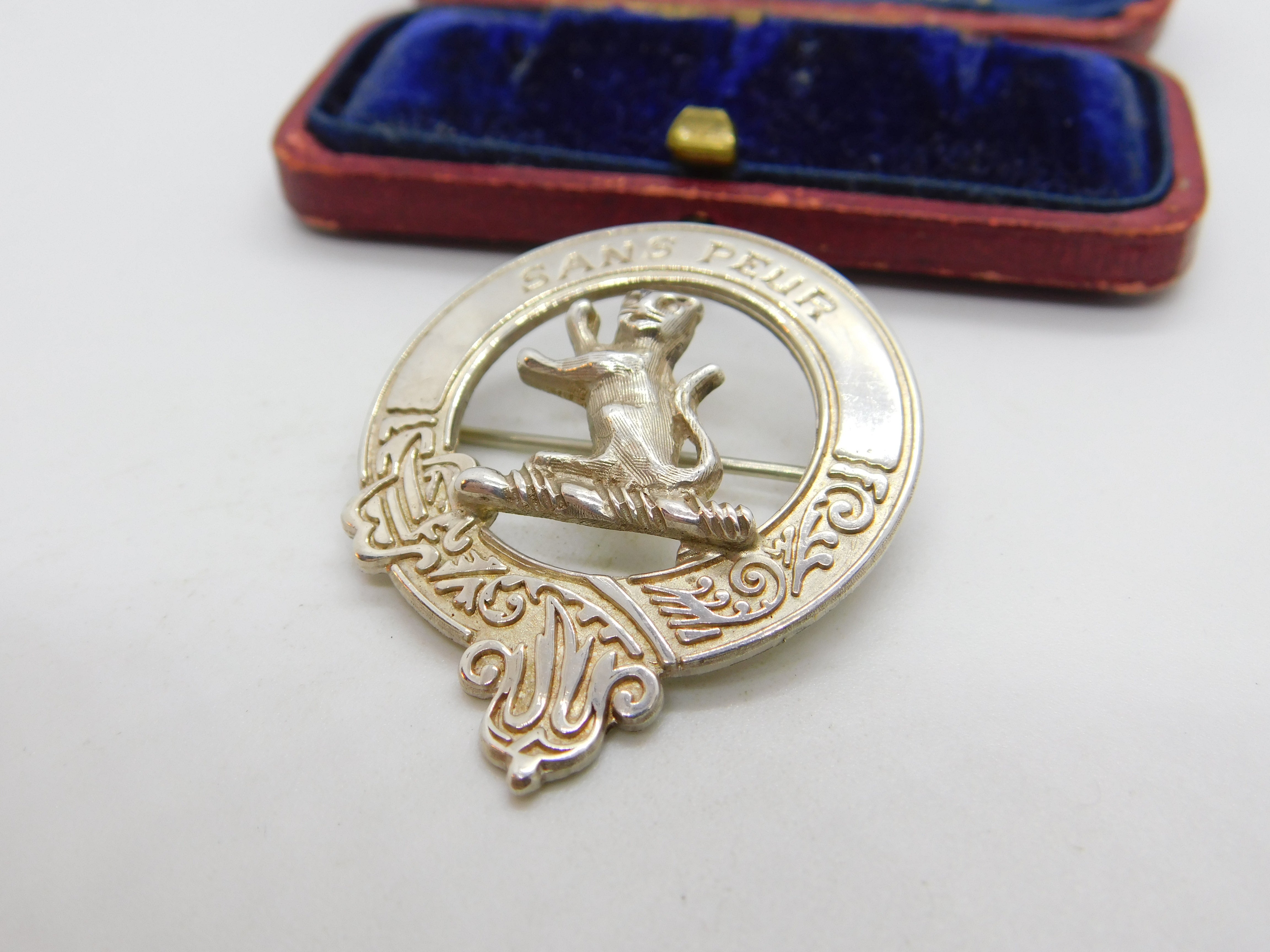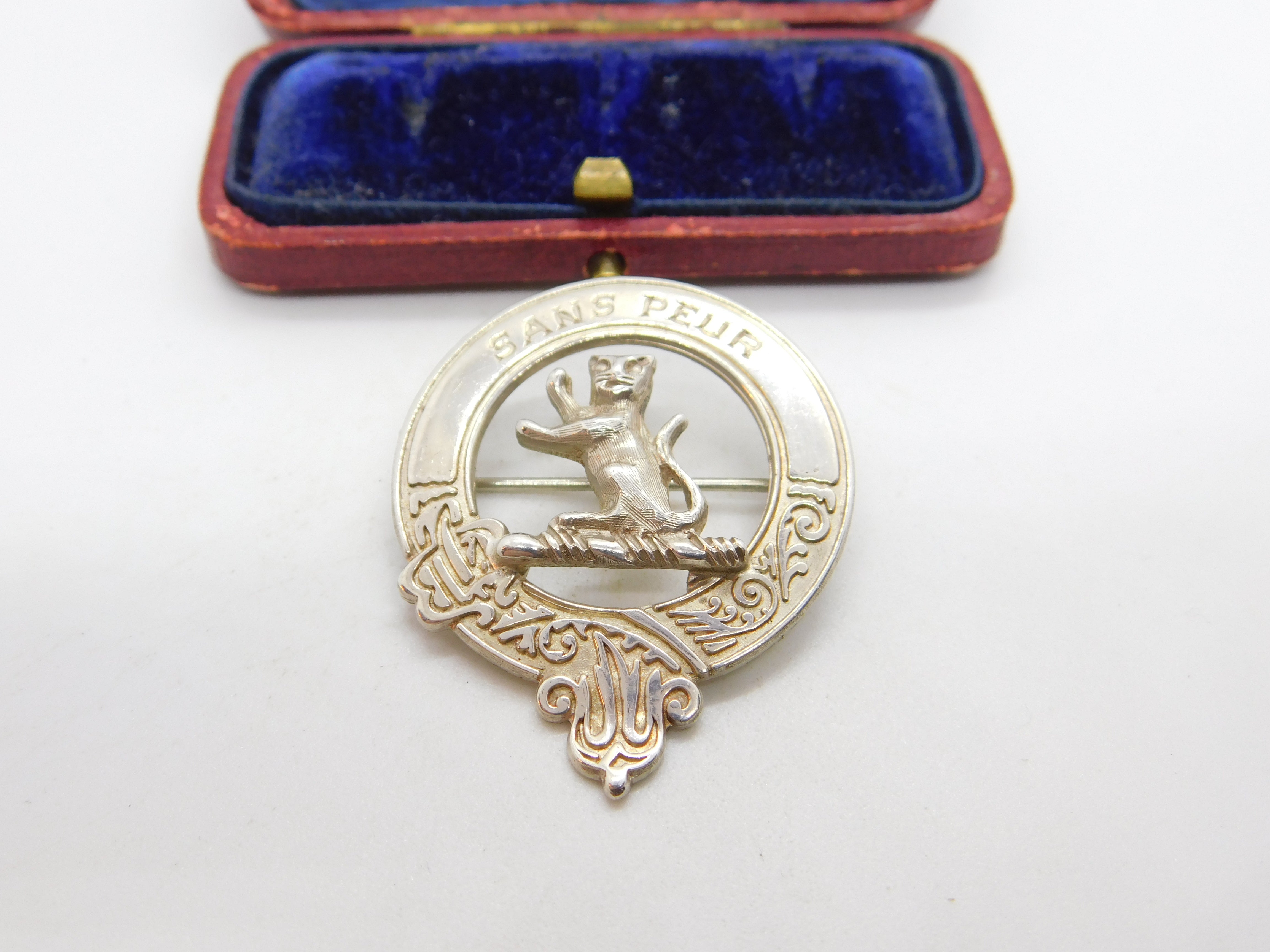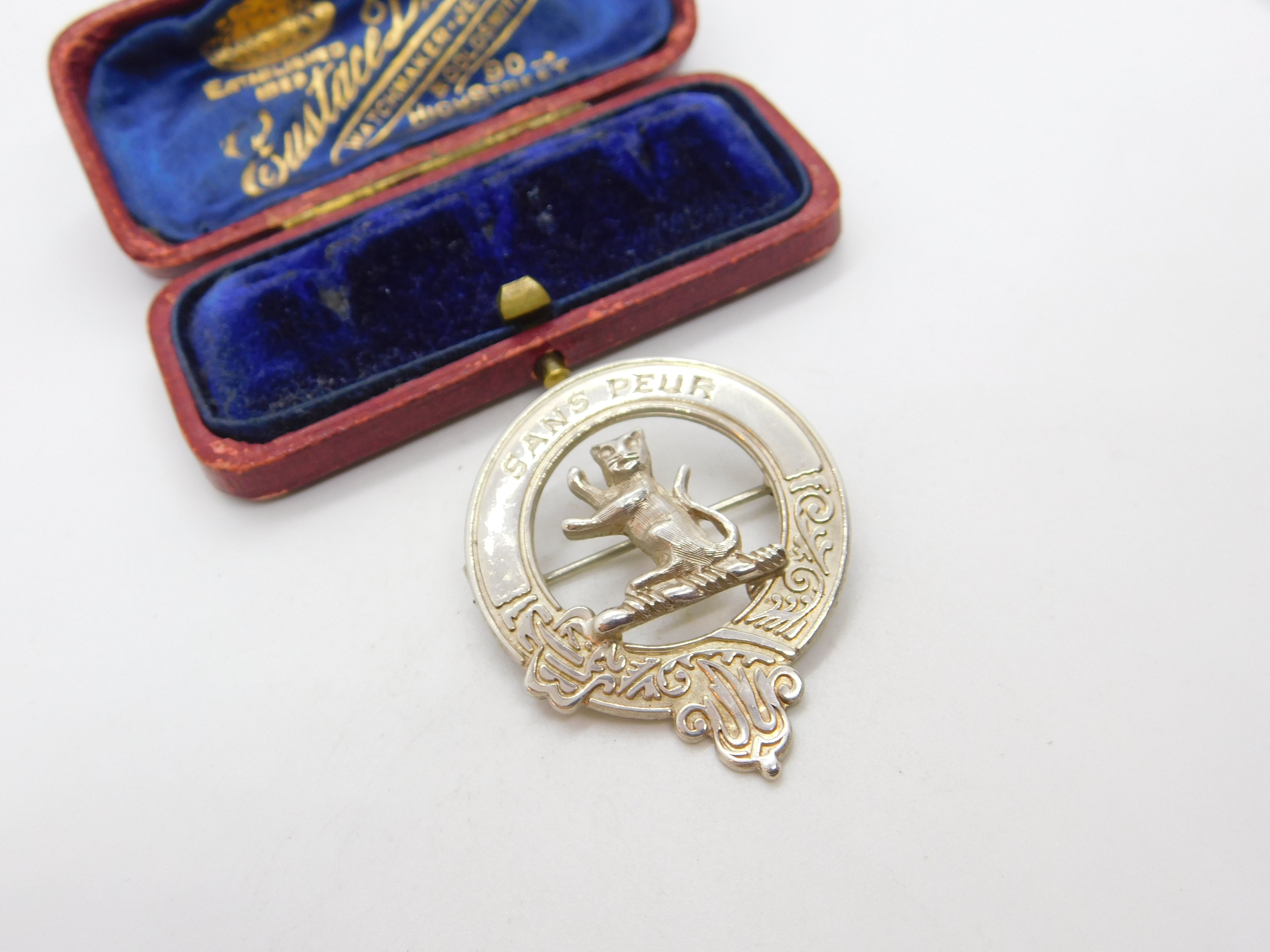 Scottish Sterling Silver 'Sans Peur' Without Fear Clan Brooch 1985 Edinburgh