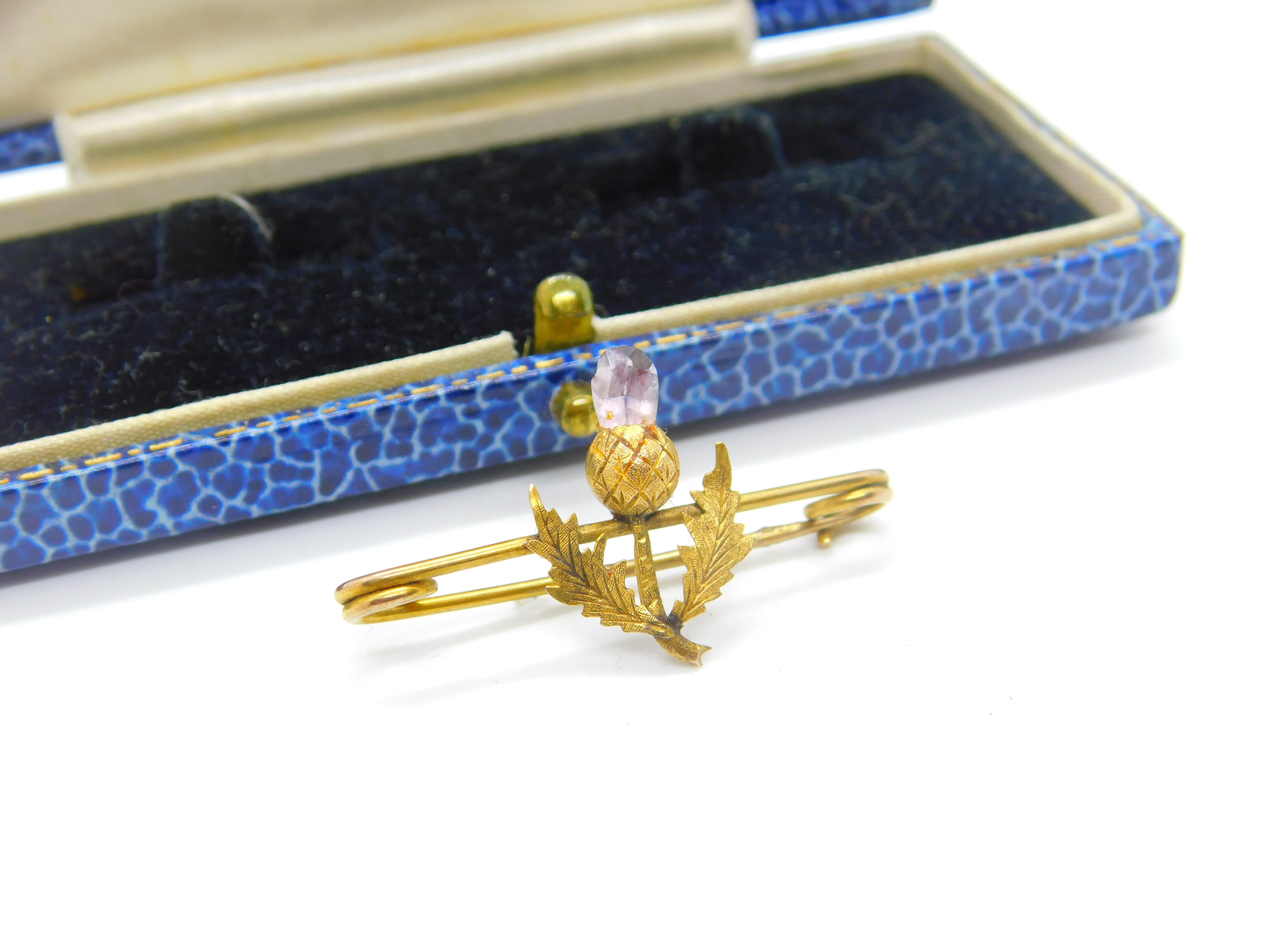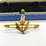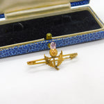 Scottish Victorian 15ct Yellow Gold & Amethyst Thistle Sweetheart Brooch Antique