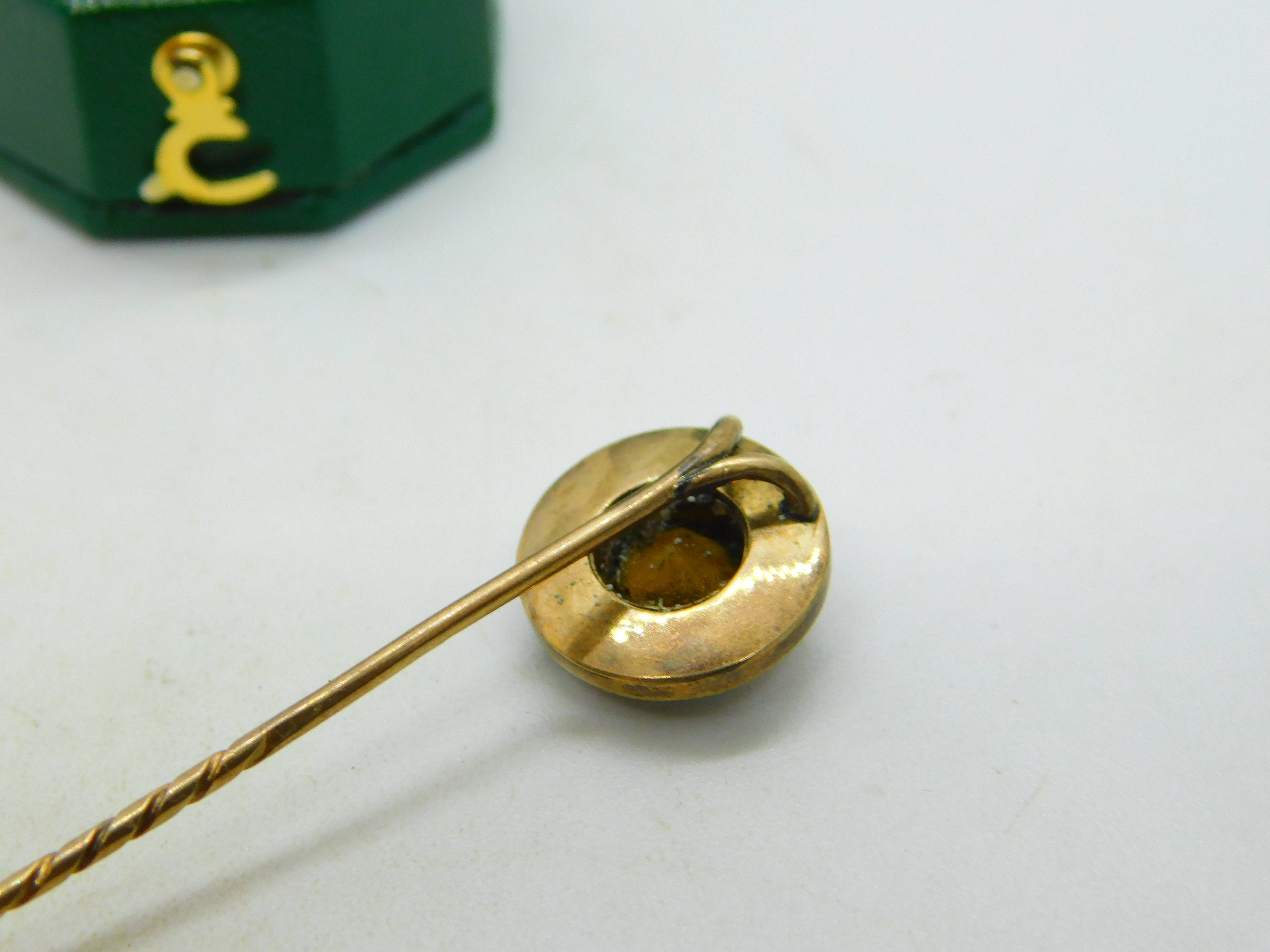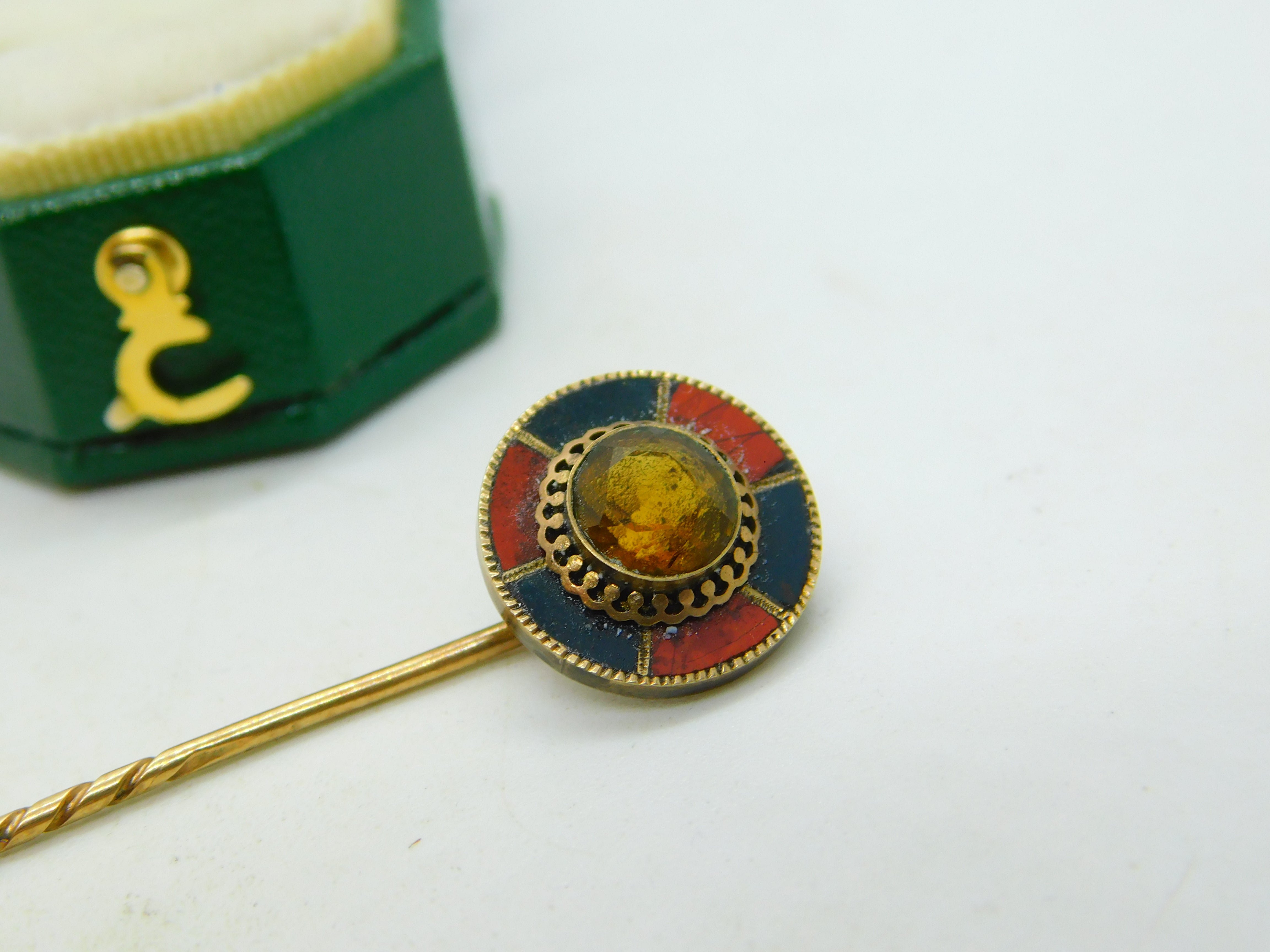 Scottish Victorian 9ct Gold, Bloodstone, Agate & Citrine Stick Pin Antique c1880