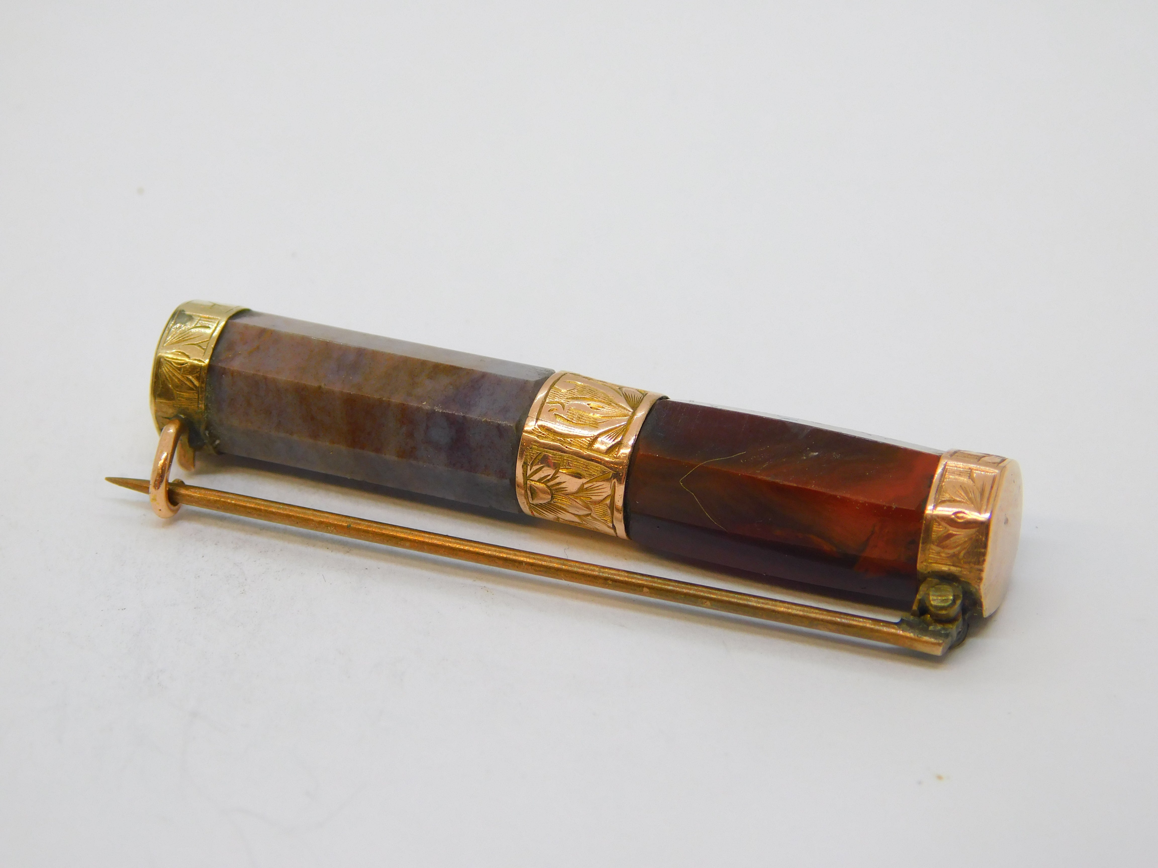 Details: A fantastic and wonderfully designed antique Victorian 9ct yellow gold mounted agate set bar brooch with lovely detailing c1860s, the gold has been XRF tested, likely Scottish. This is a wonderful item that would make a perfect gift or addition to any collection. We are more than happy to provide XRF reports for items upon request.