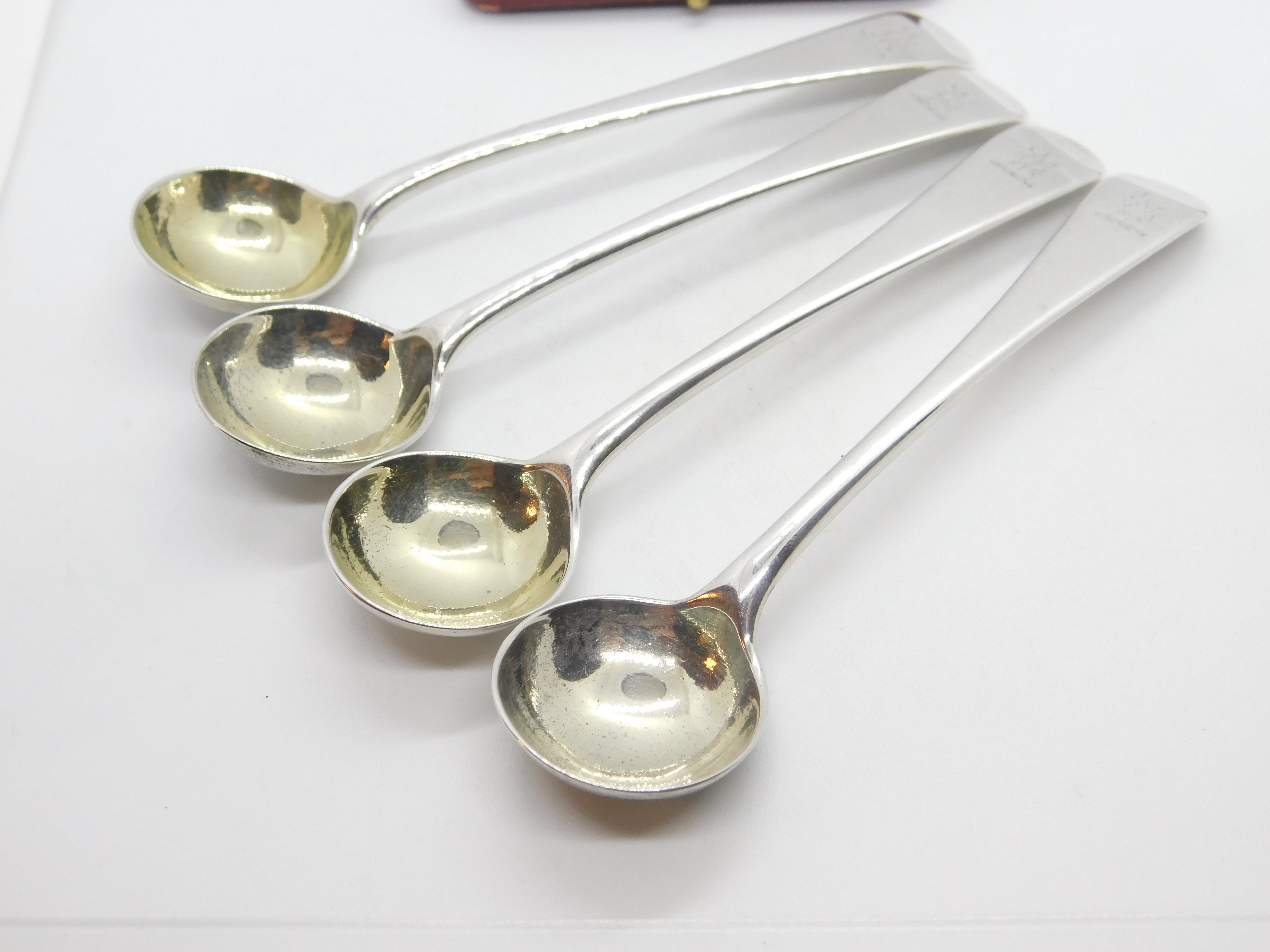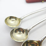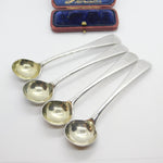 Details: A fantastic and wonderfully designed antique Georgian sterling silver set of four flaming spear crest mustard spoons with gilded bowls hallmarked London 1823 by William Cripps. This is a wonderful item that would make a perfect gift or addition to any collection. The BOX pictured is for PRESENTATION ONLY and is NOT included in the listings but used to frame the pictures unless specifically stated otherwise.