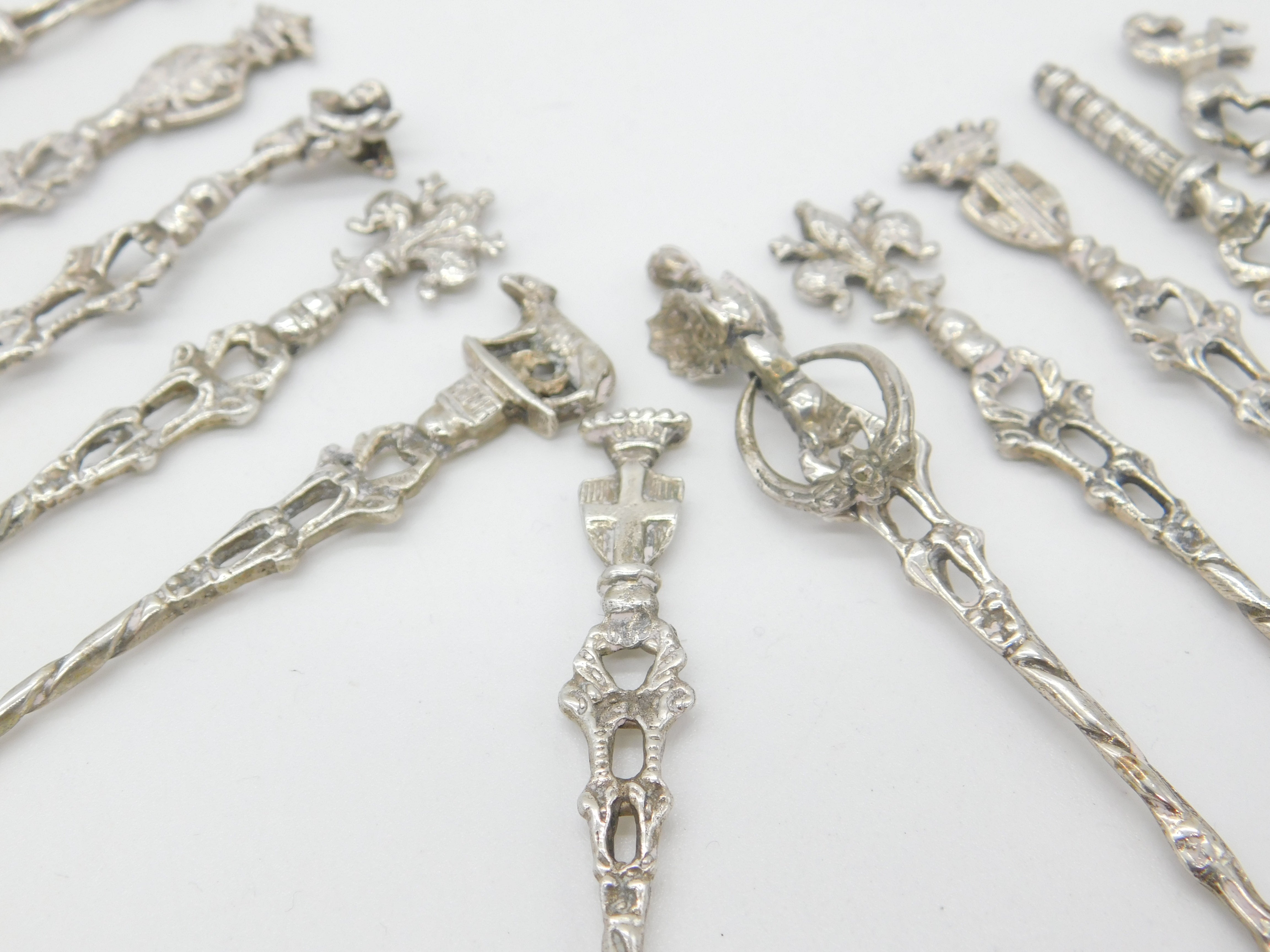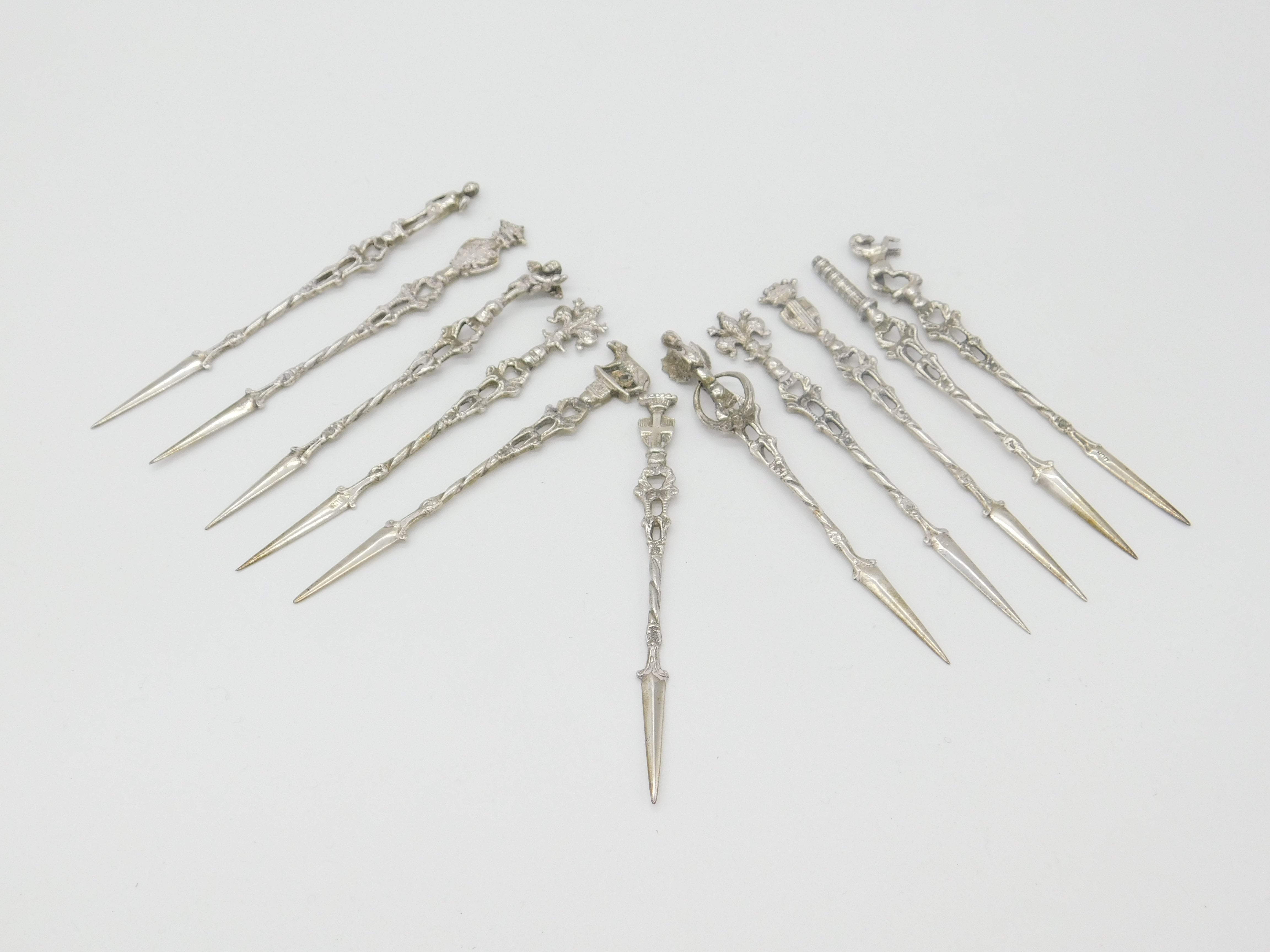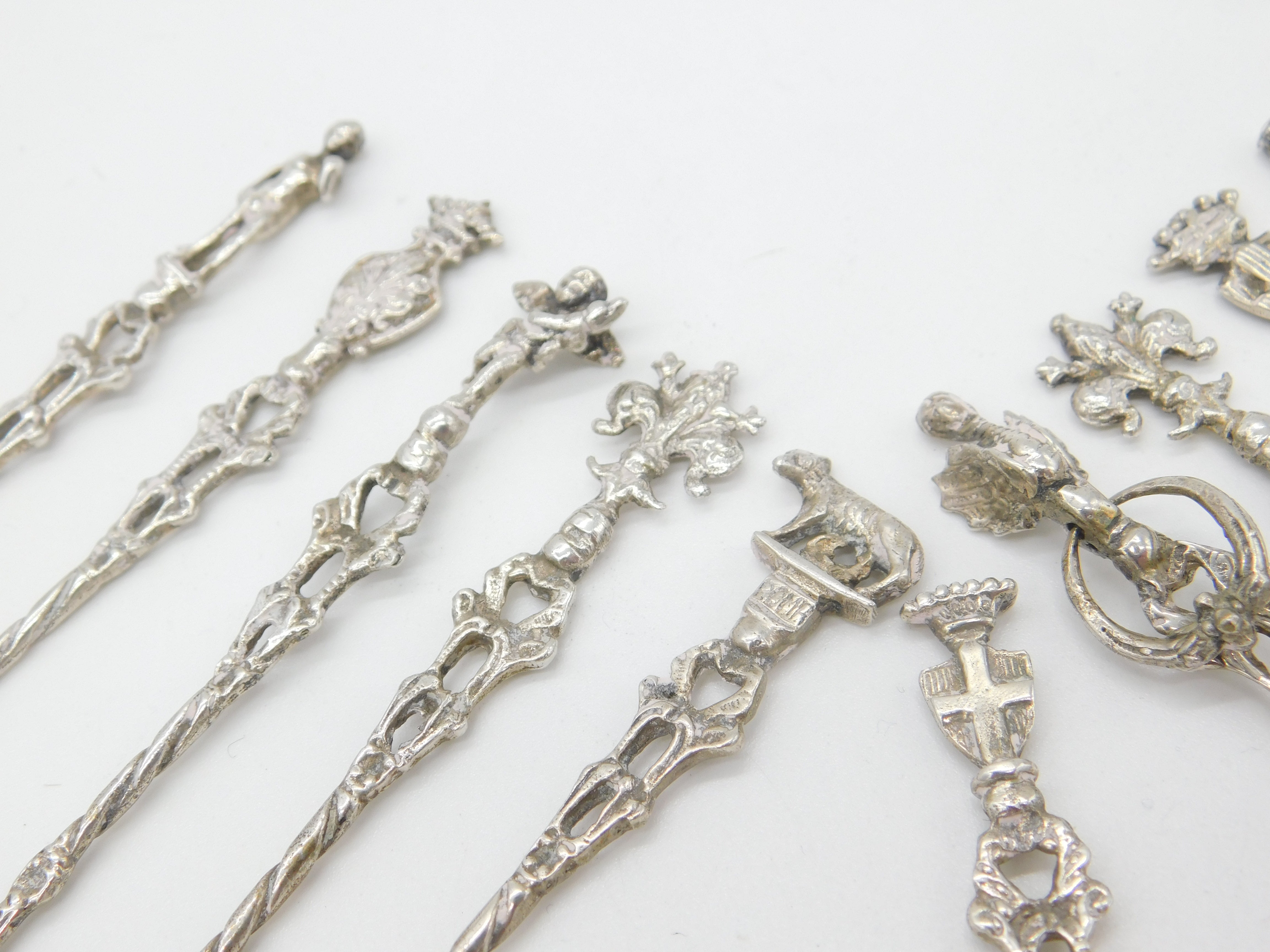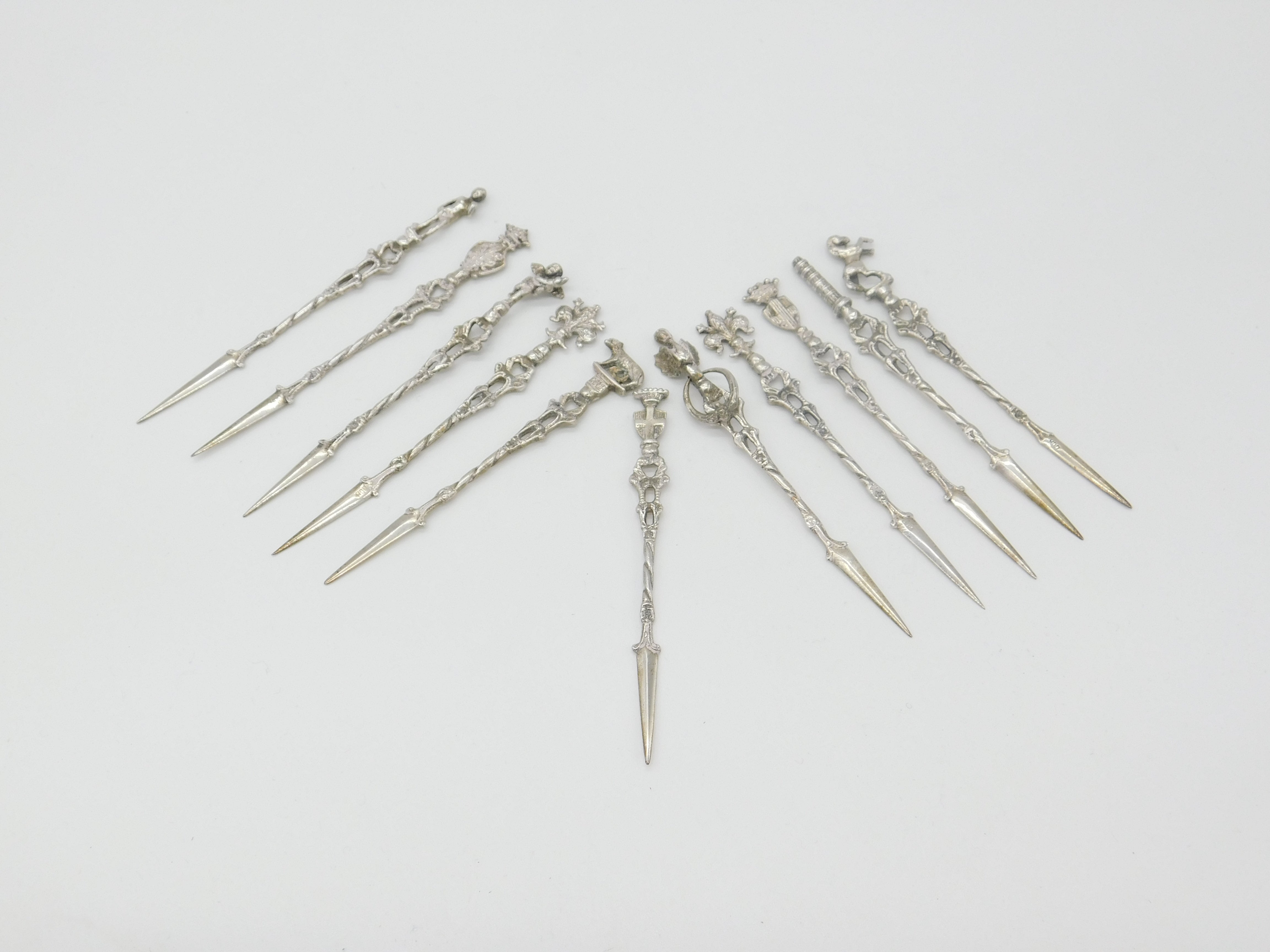 Set of Eleven .800 Silver Italian Souvenir Terminal Cocktail Sticks Vintage 1960
