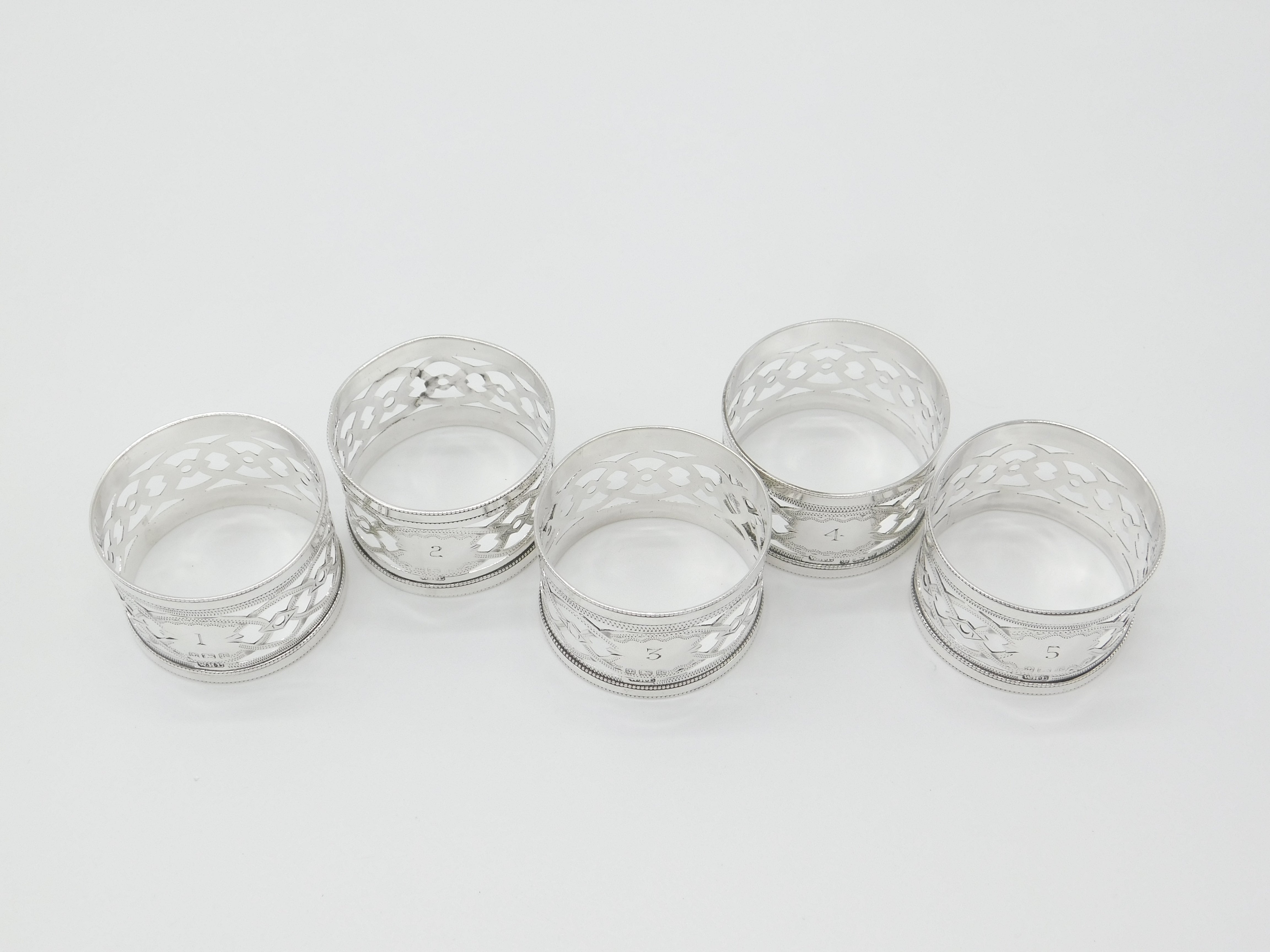 Set of Five Sterling Silver No. 1,2,3,4,5 Napkin Rings Antique 1909 Birmingham