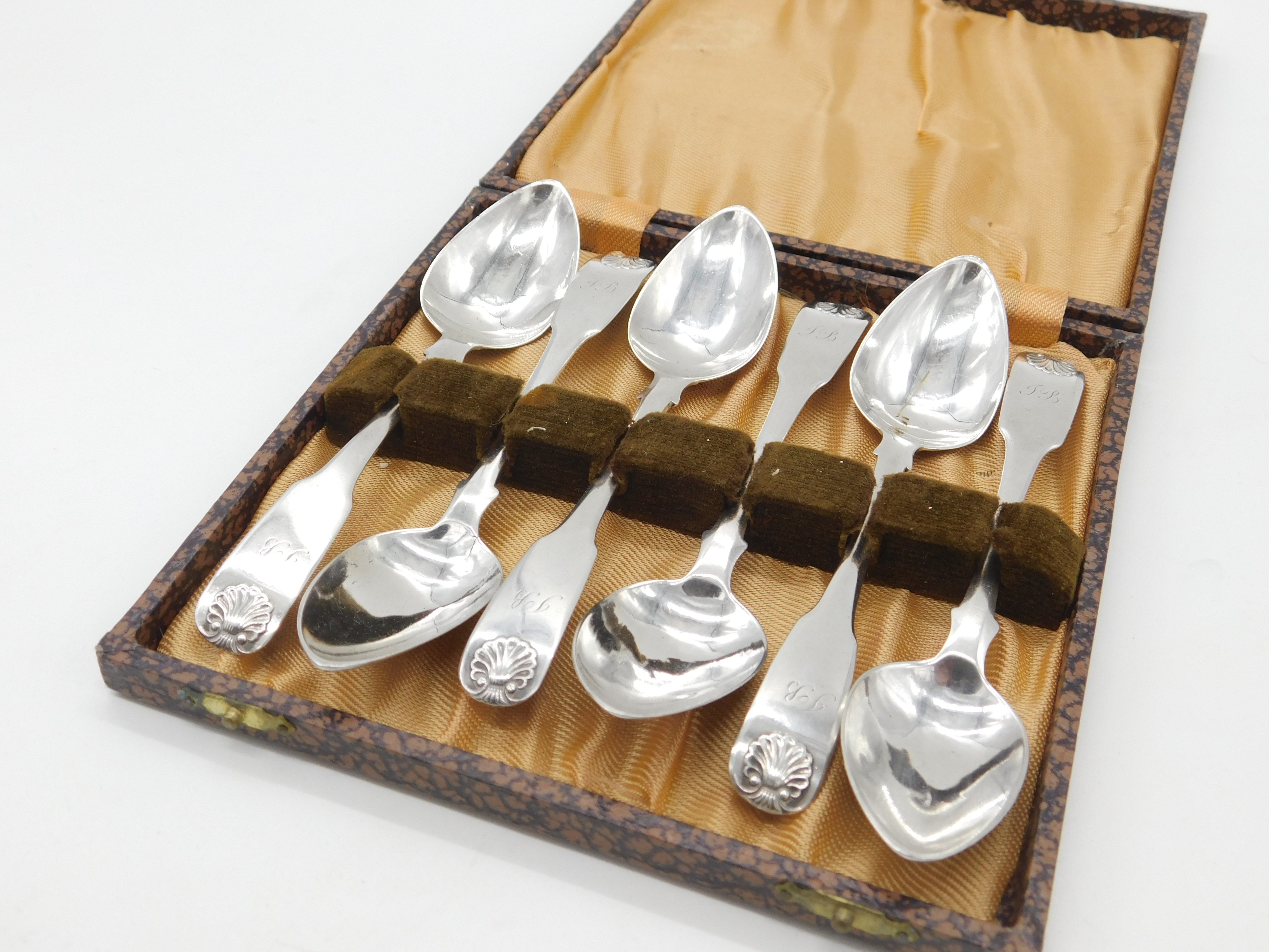 Set of Six Boxed Georgian Sterling Silver Teaspoons 1812 Edinburgh Antique