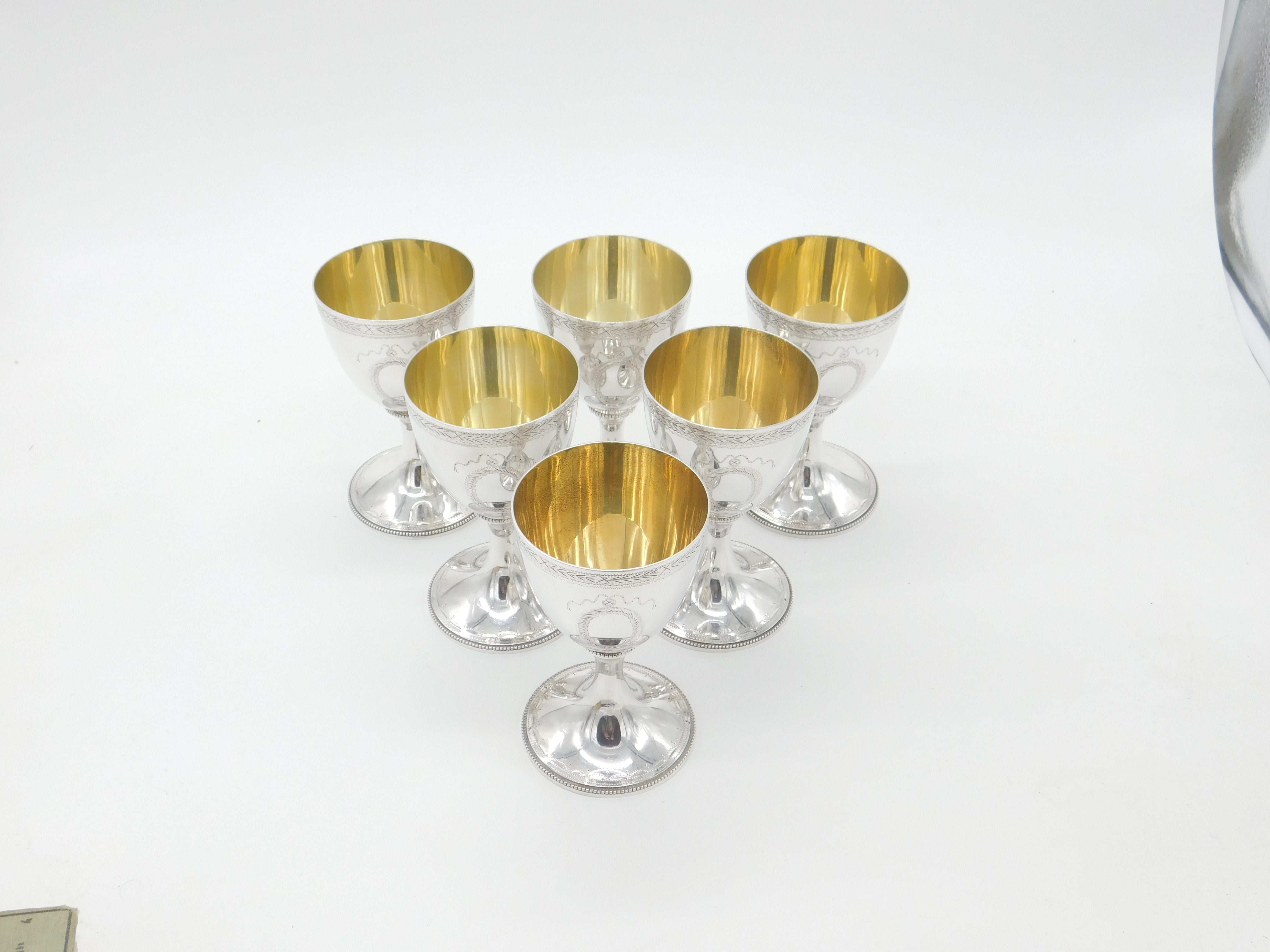 Set of Six Sterling Silver Goblet Chalices Gilded London 1968 Vintage CJ Vander