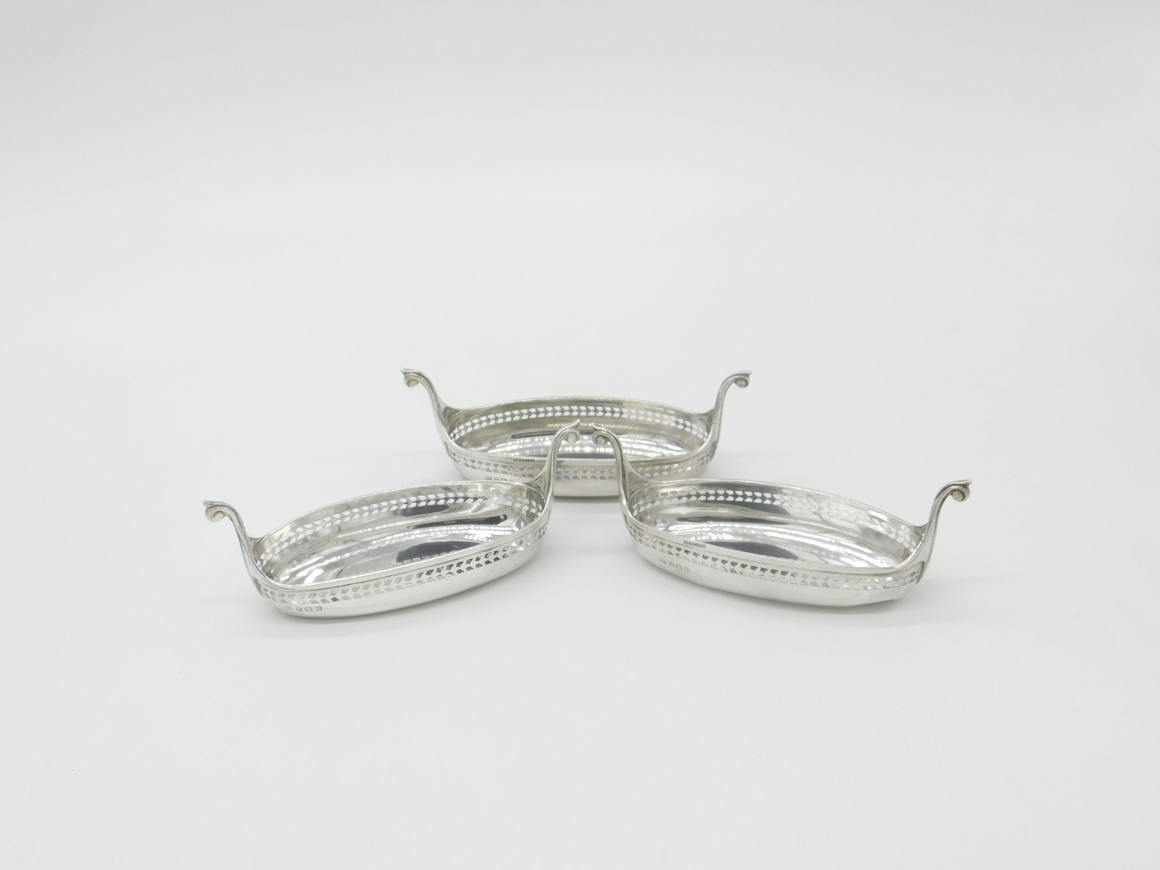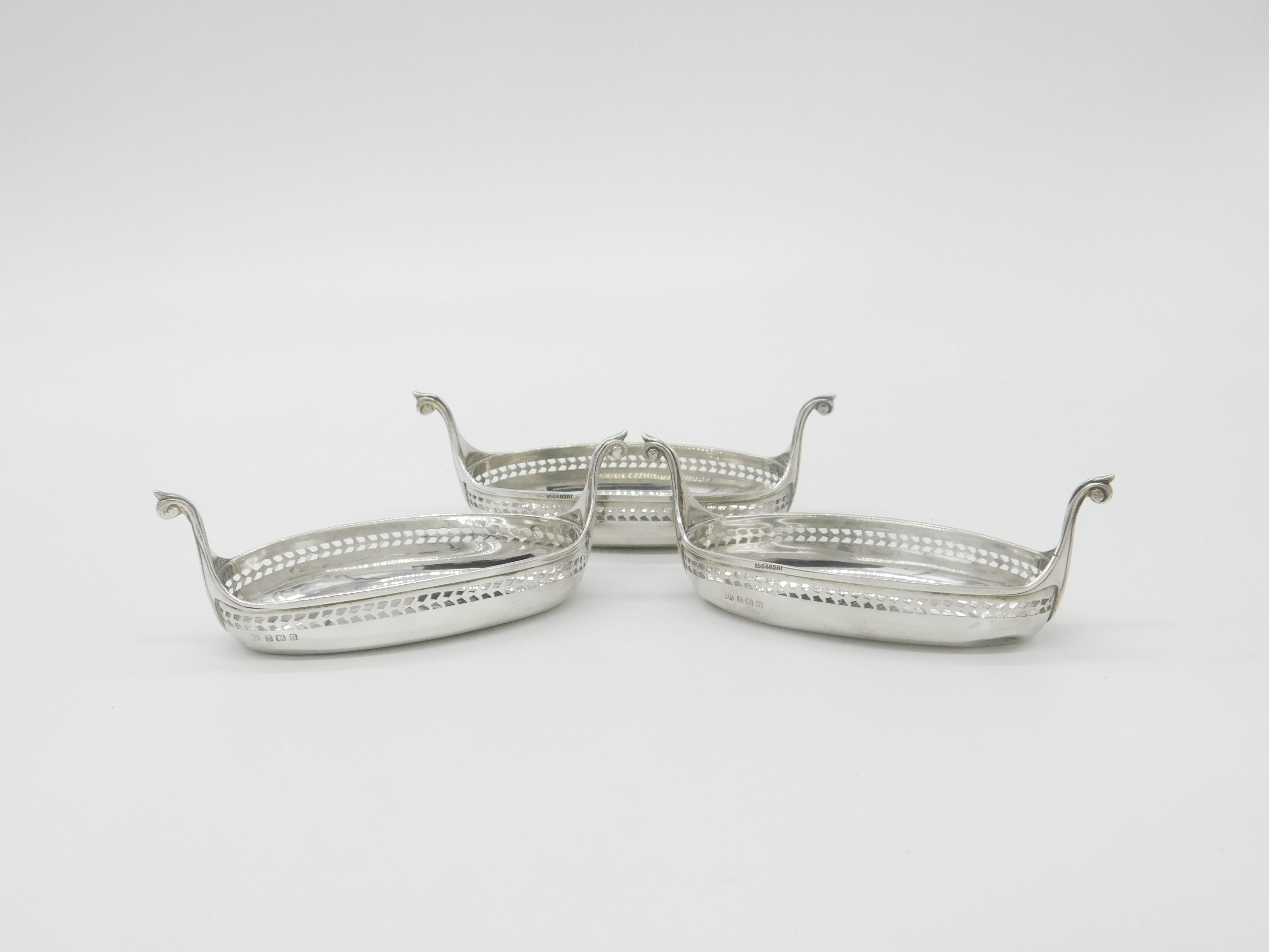 Set of Three Sterling Silver Viking Longboat Treat Dishes Antique 1928 Elkington & Co.