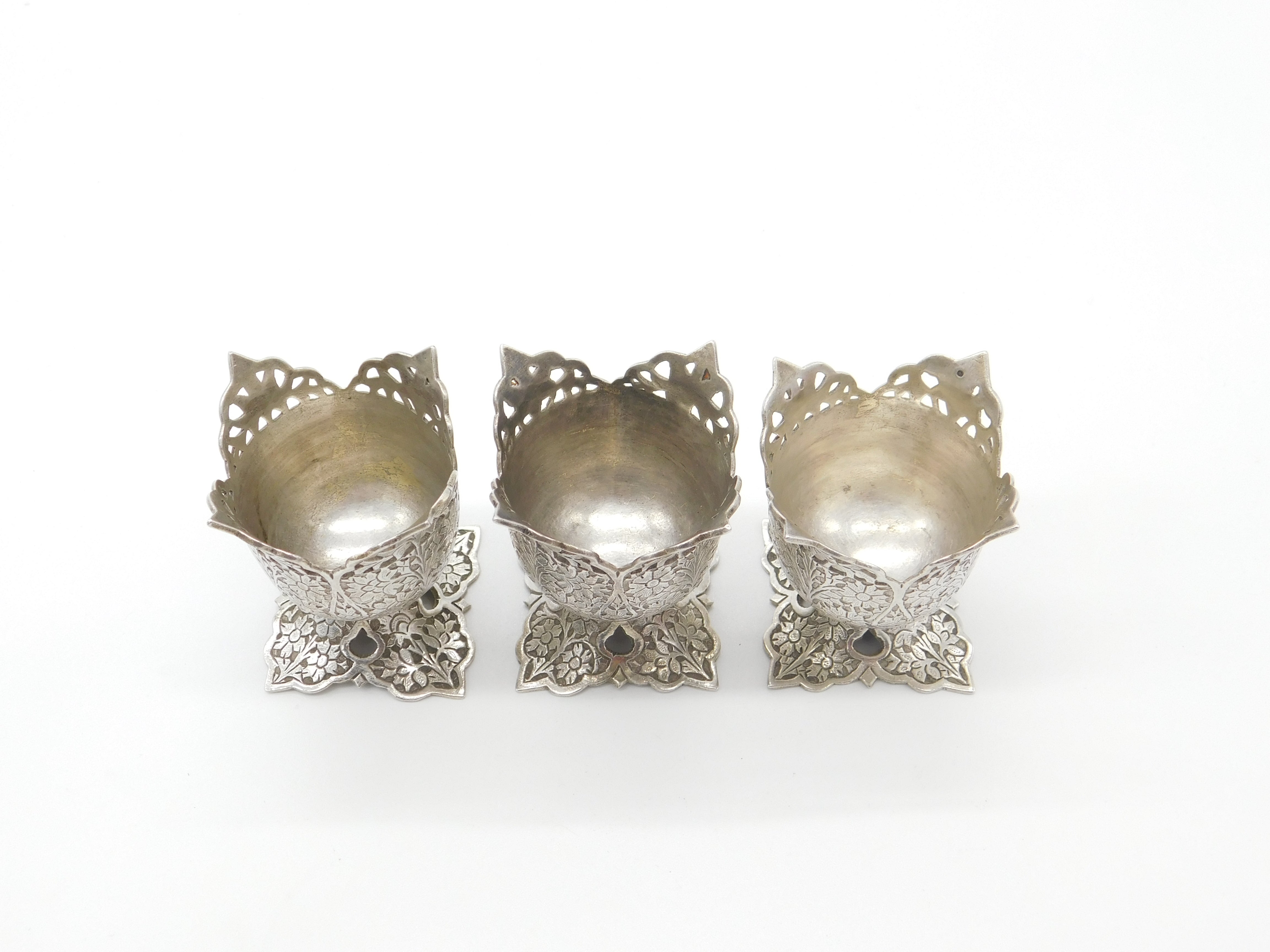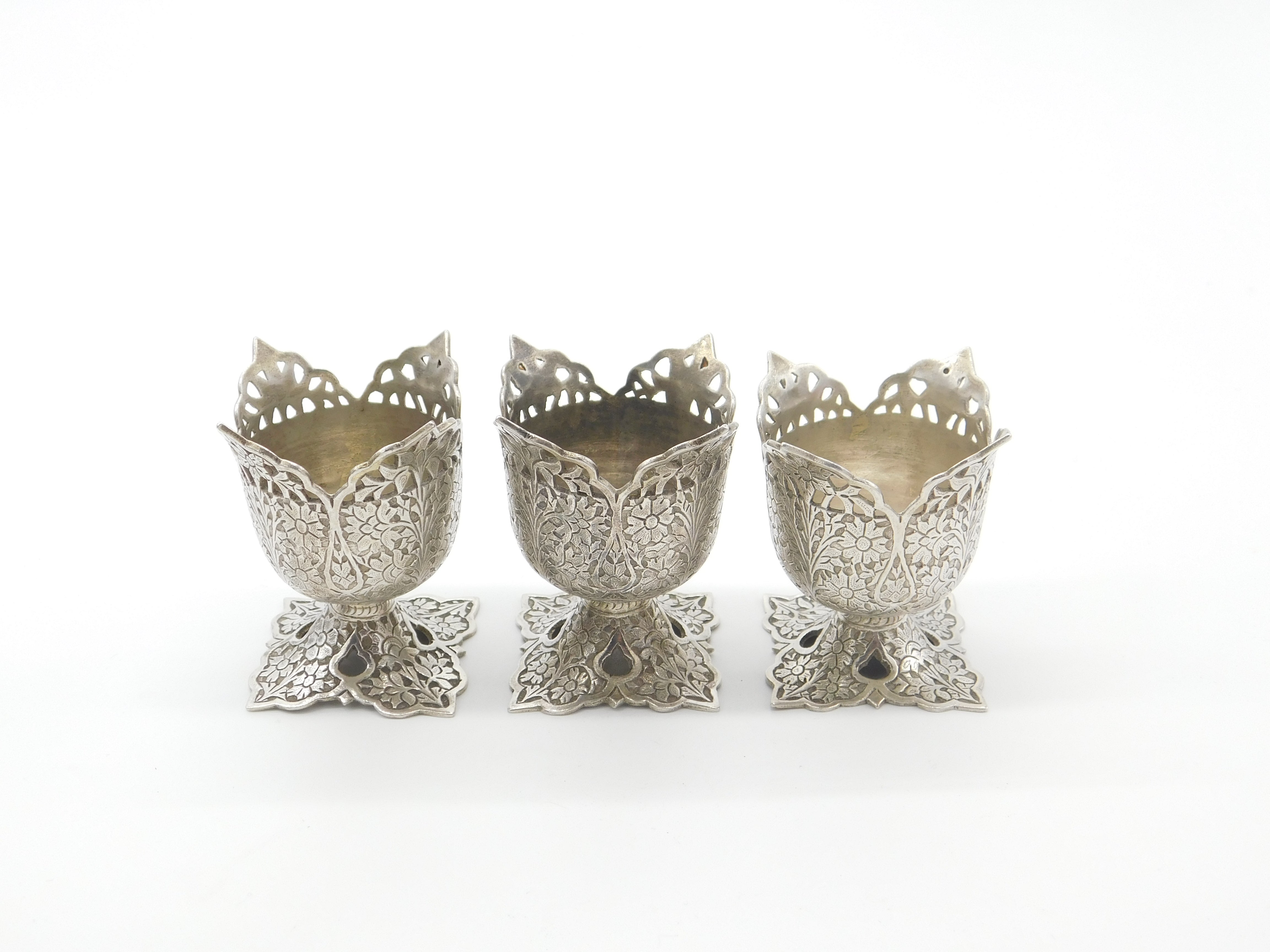Set Of Three Victorian Sterling Silver Anglo-Indian Egg Cups Antique c1900