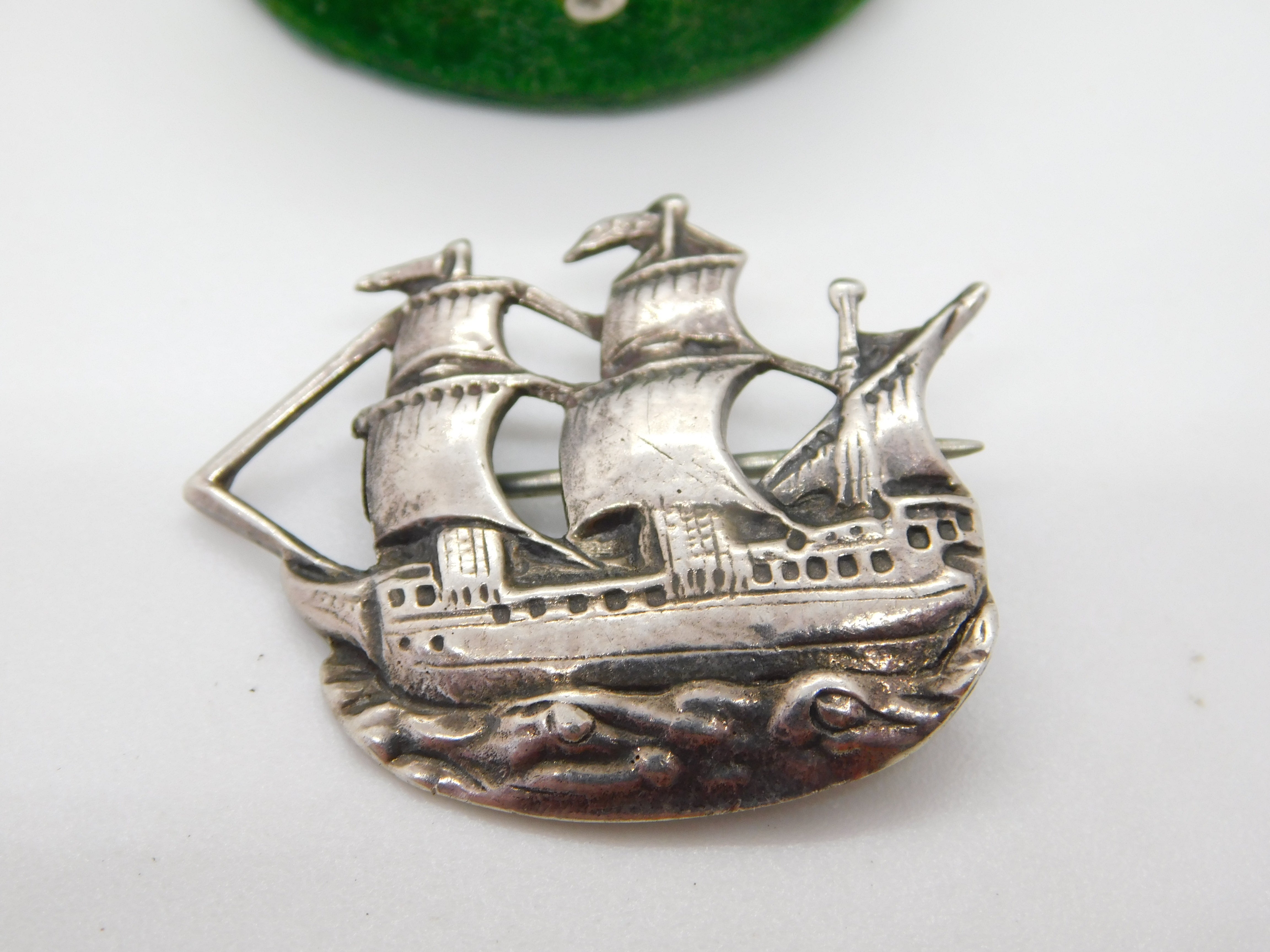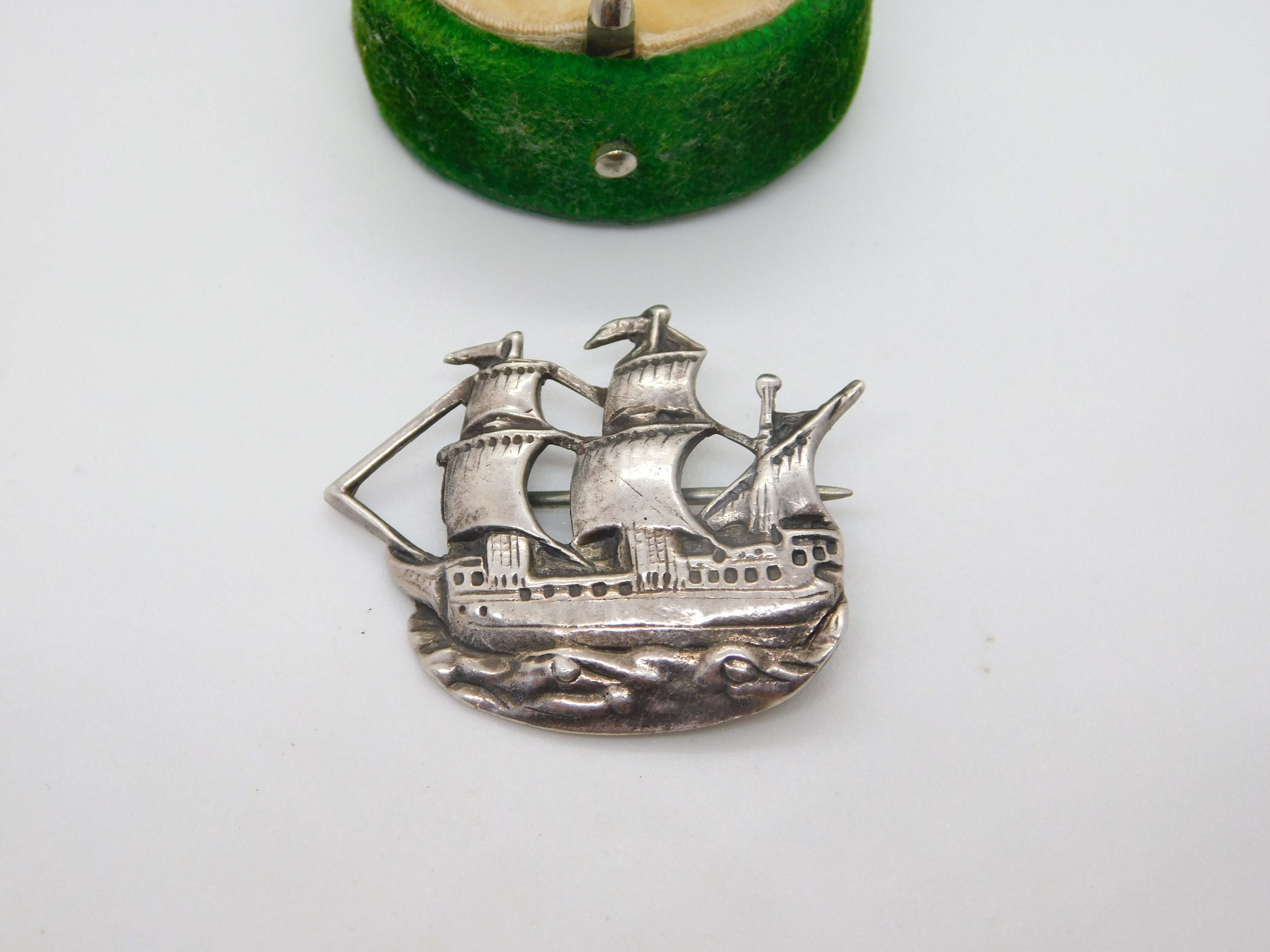 Shipton & Co. Sterling Silver Mayflower Ship Brooch 1938 Chester Antique Deco