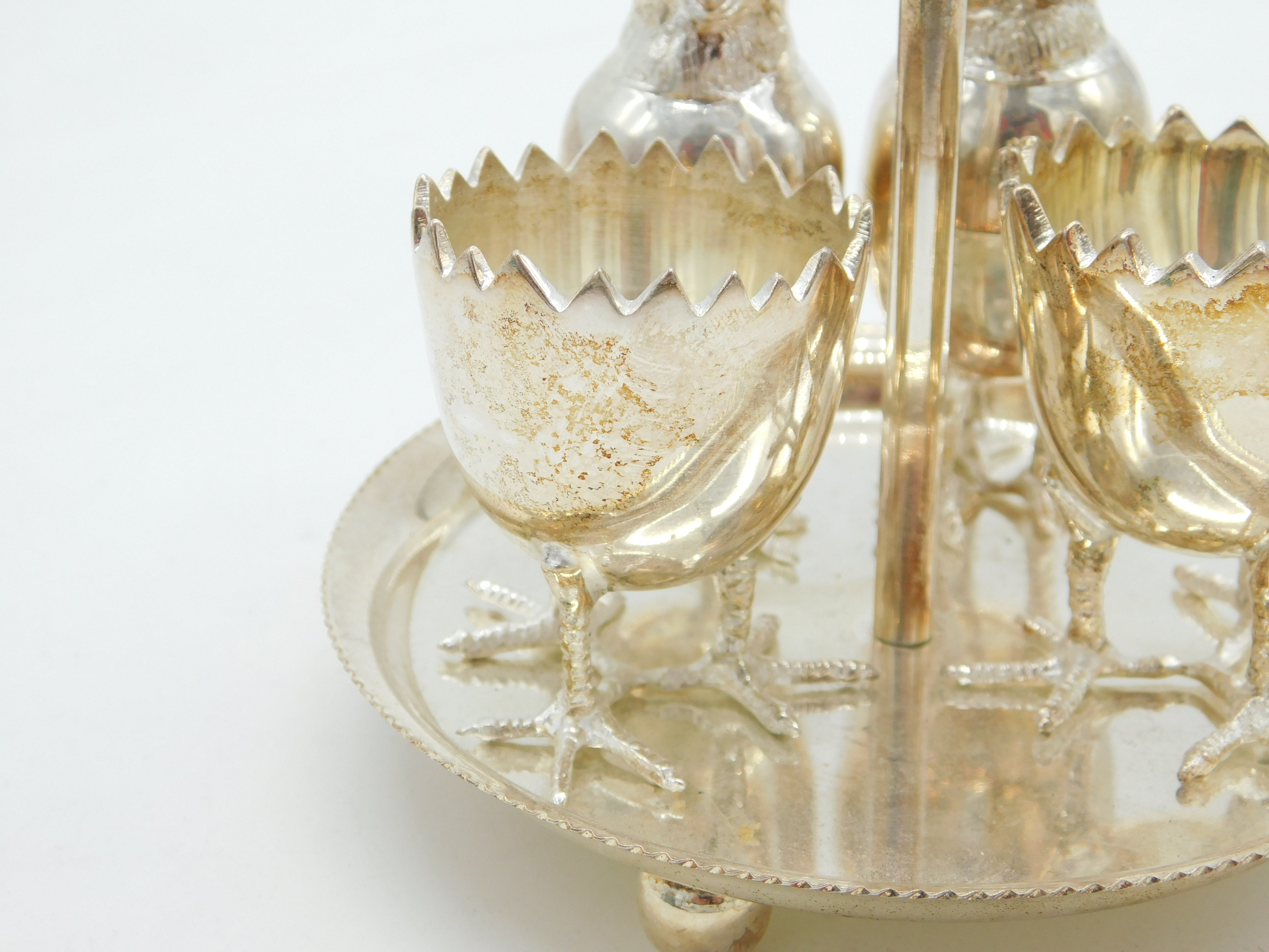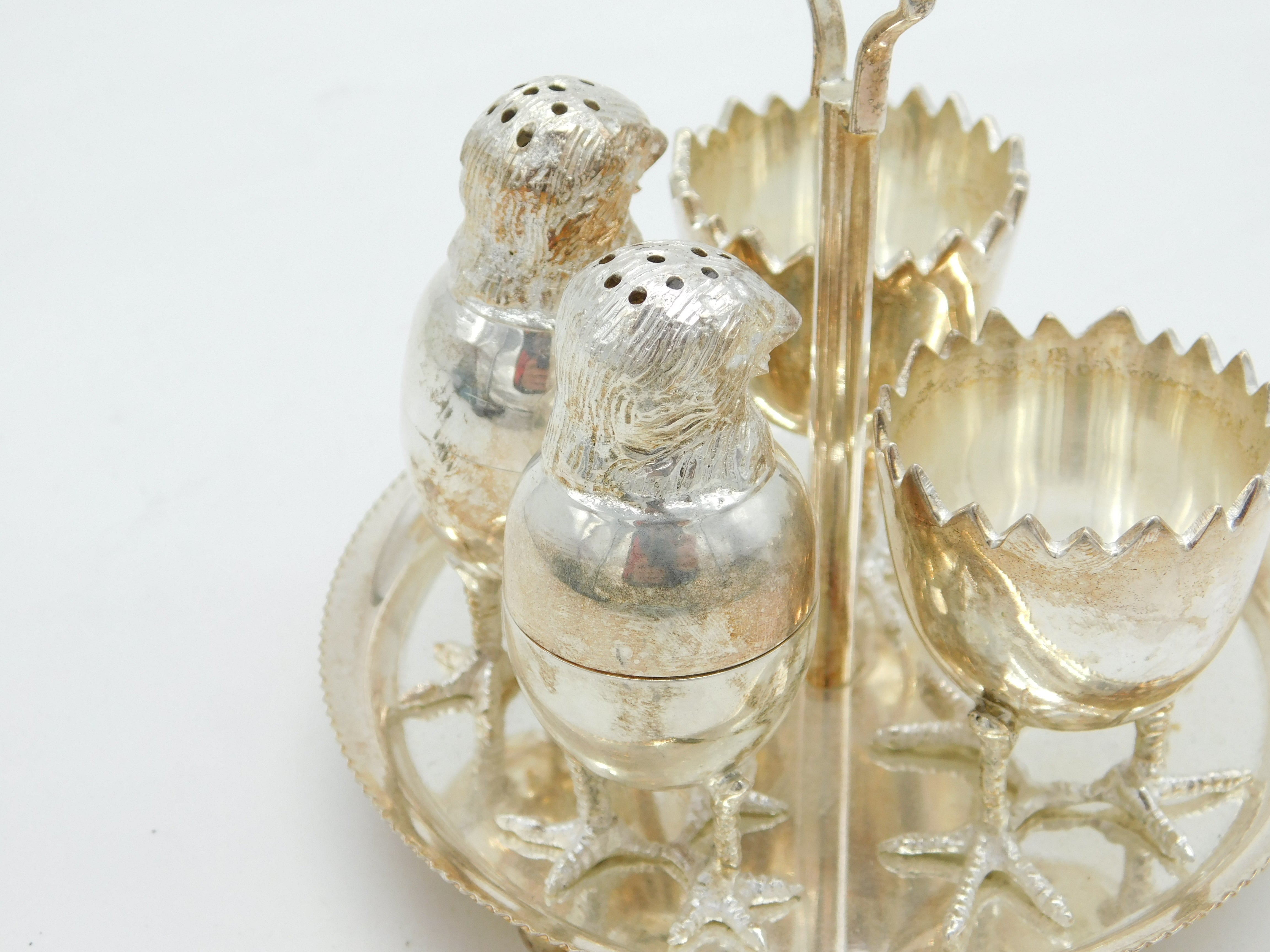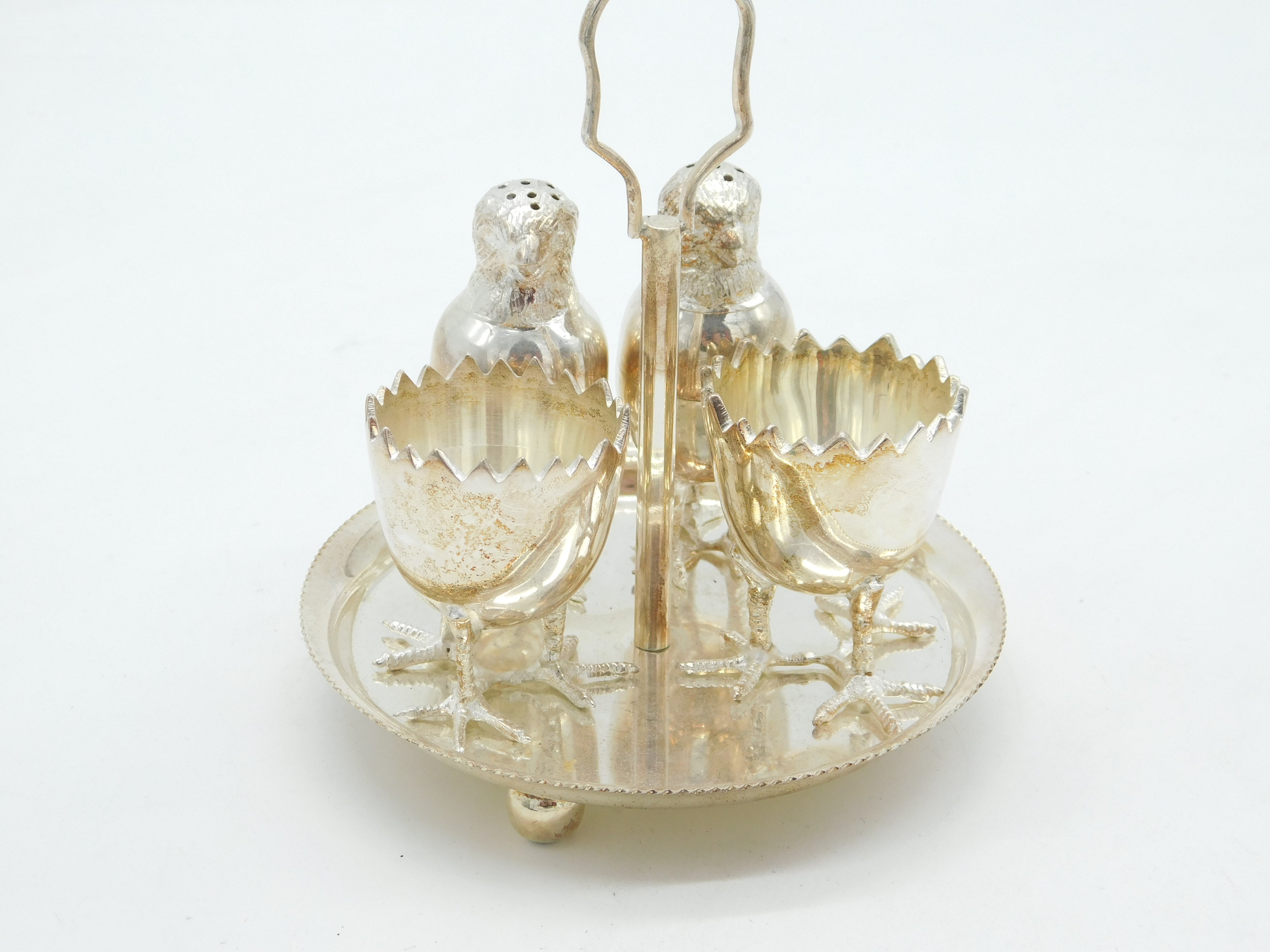 Silver Plated Novelty Boiled Egg Breakfast Set Antique c1930 Art Deco