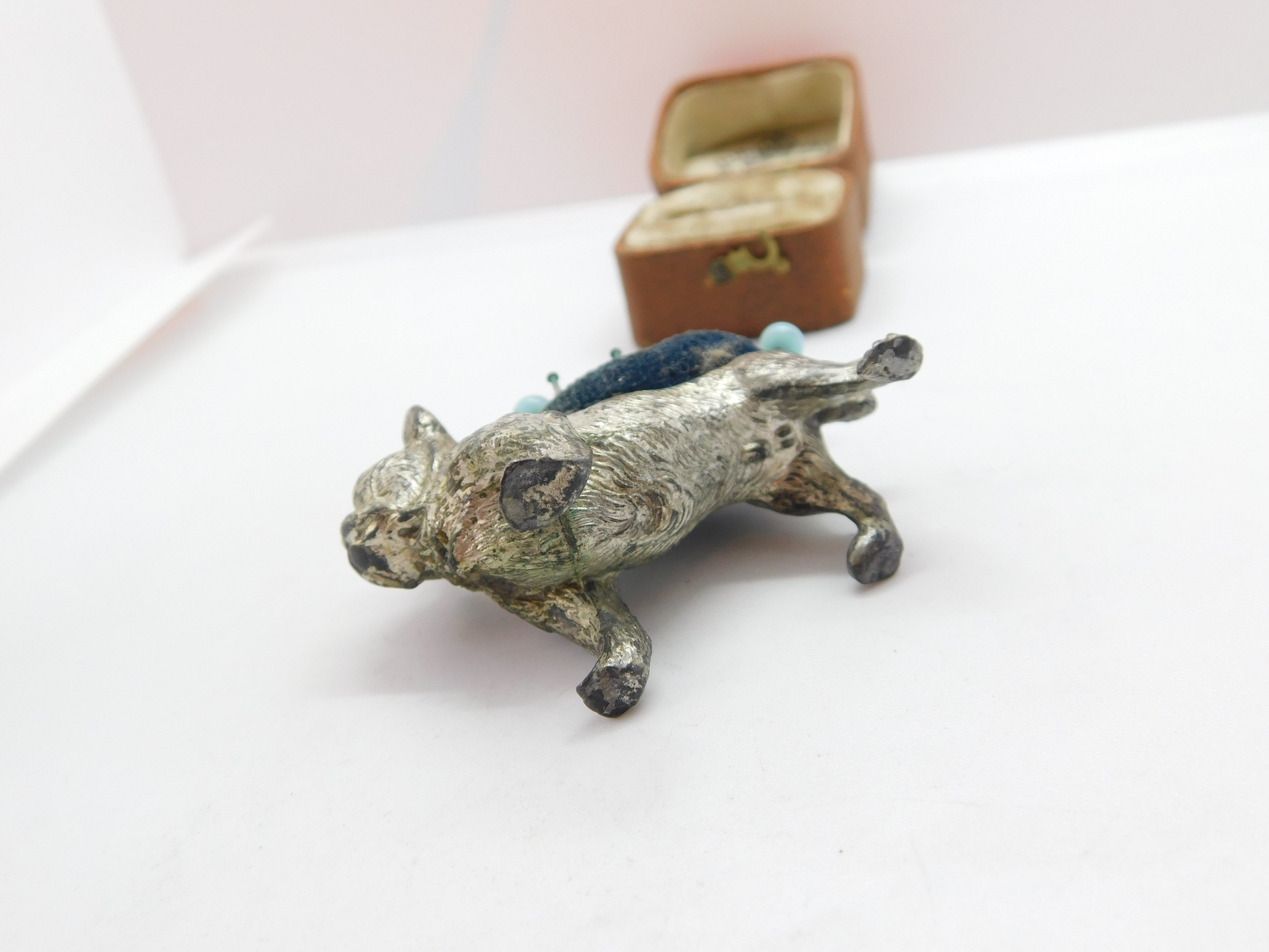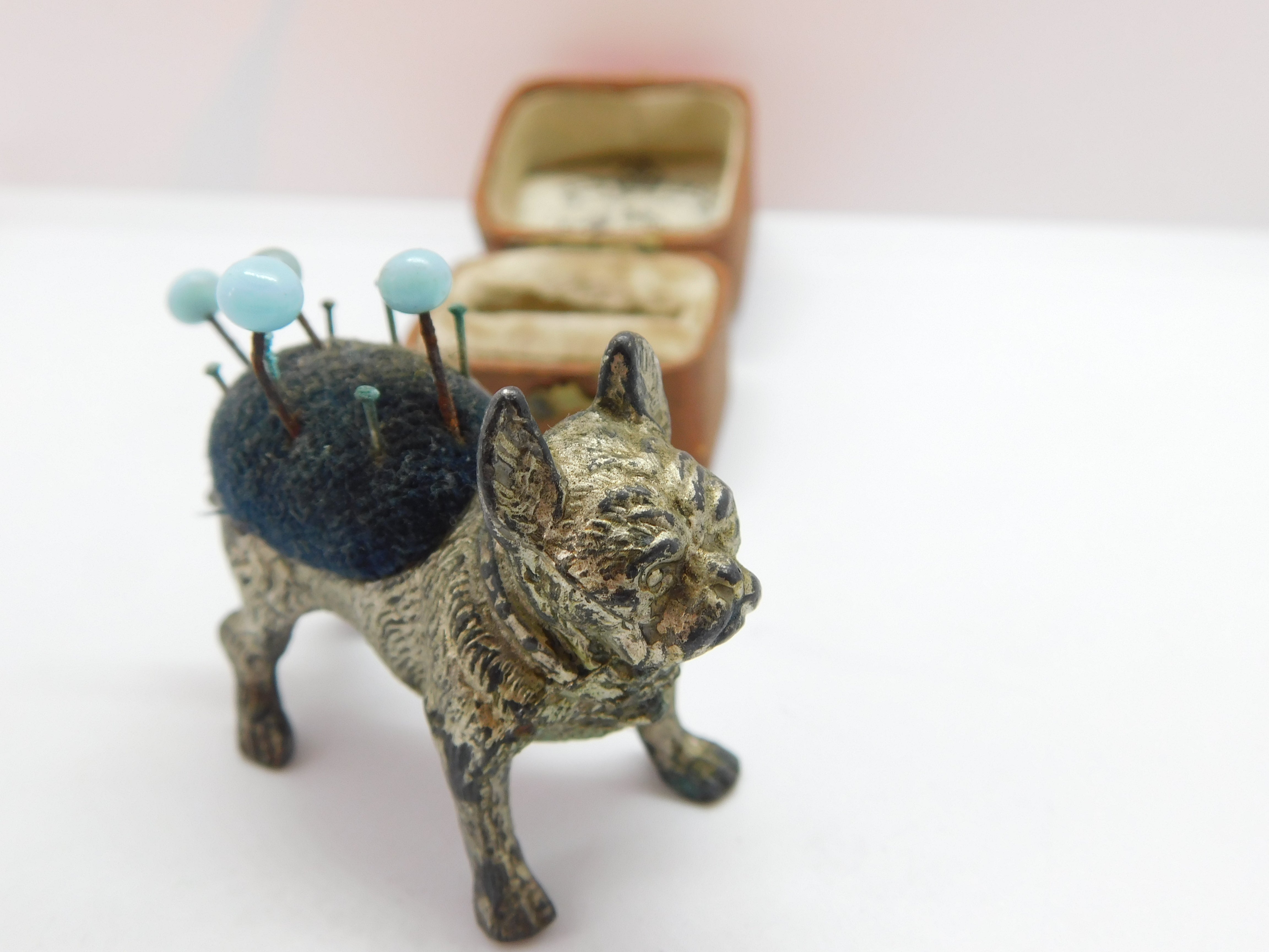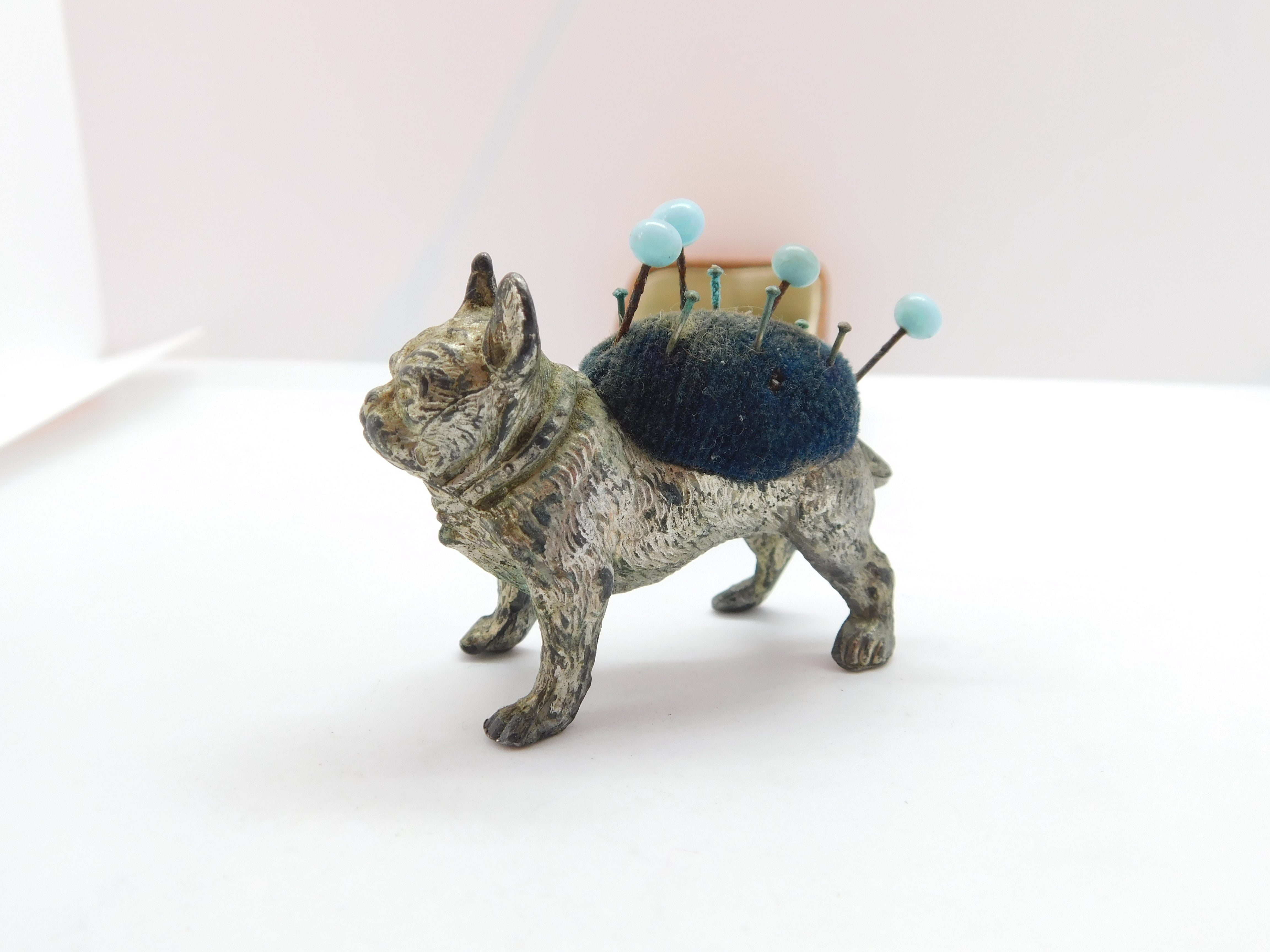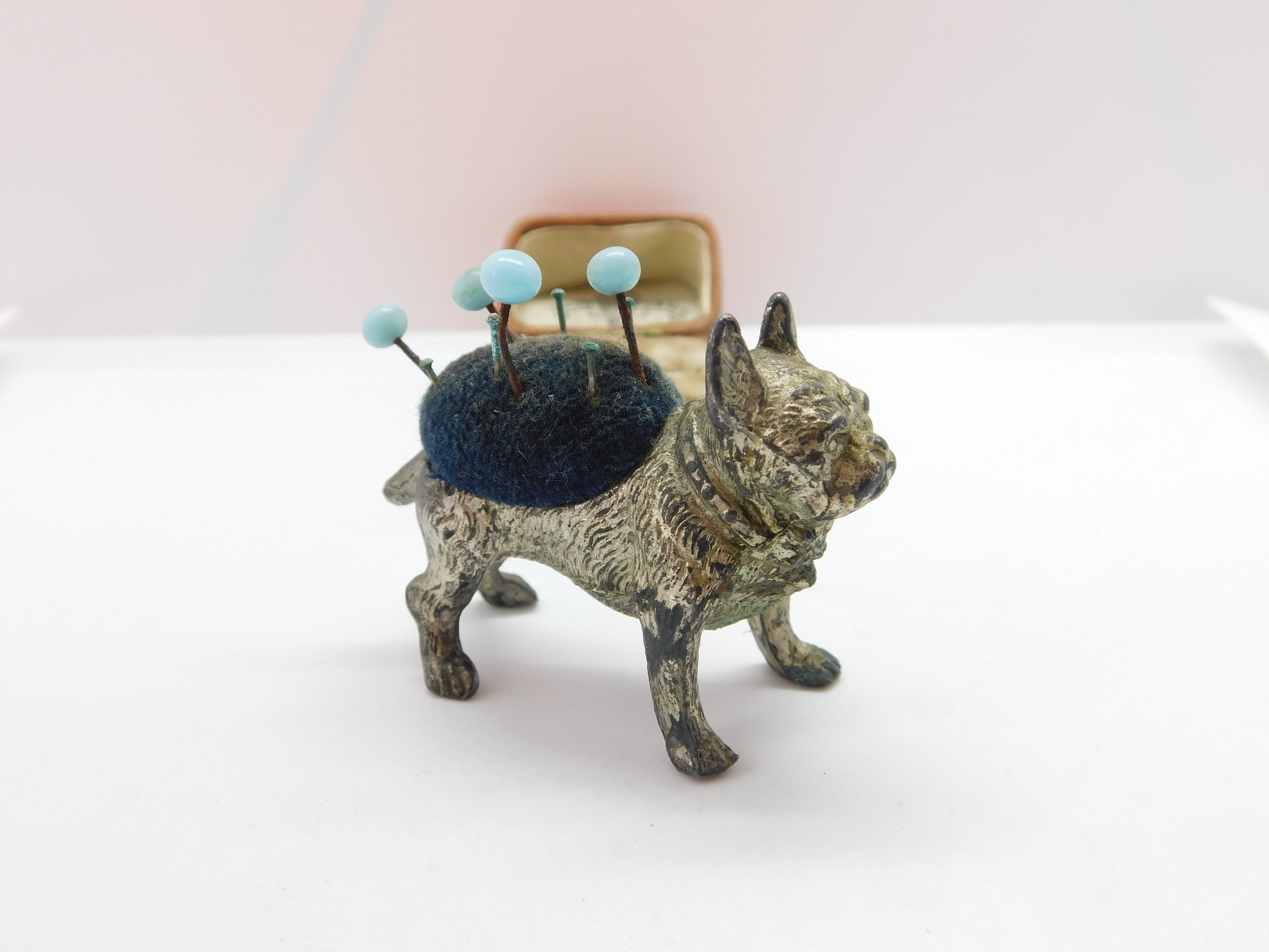 Silver Plated Novelty Bulldog Sewing Pin Cushion Antique c1920 Art Deco