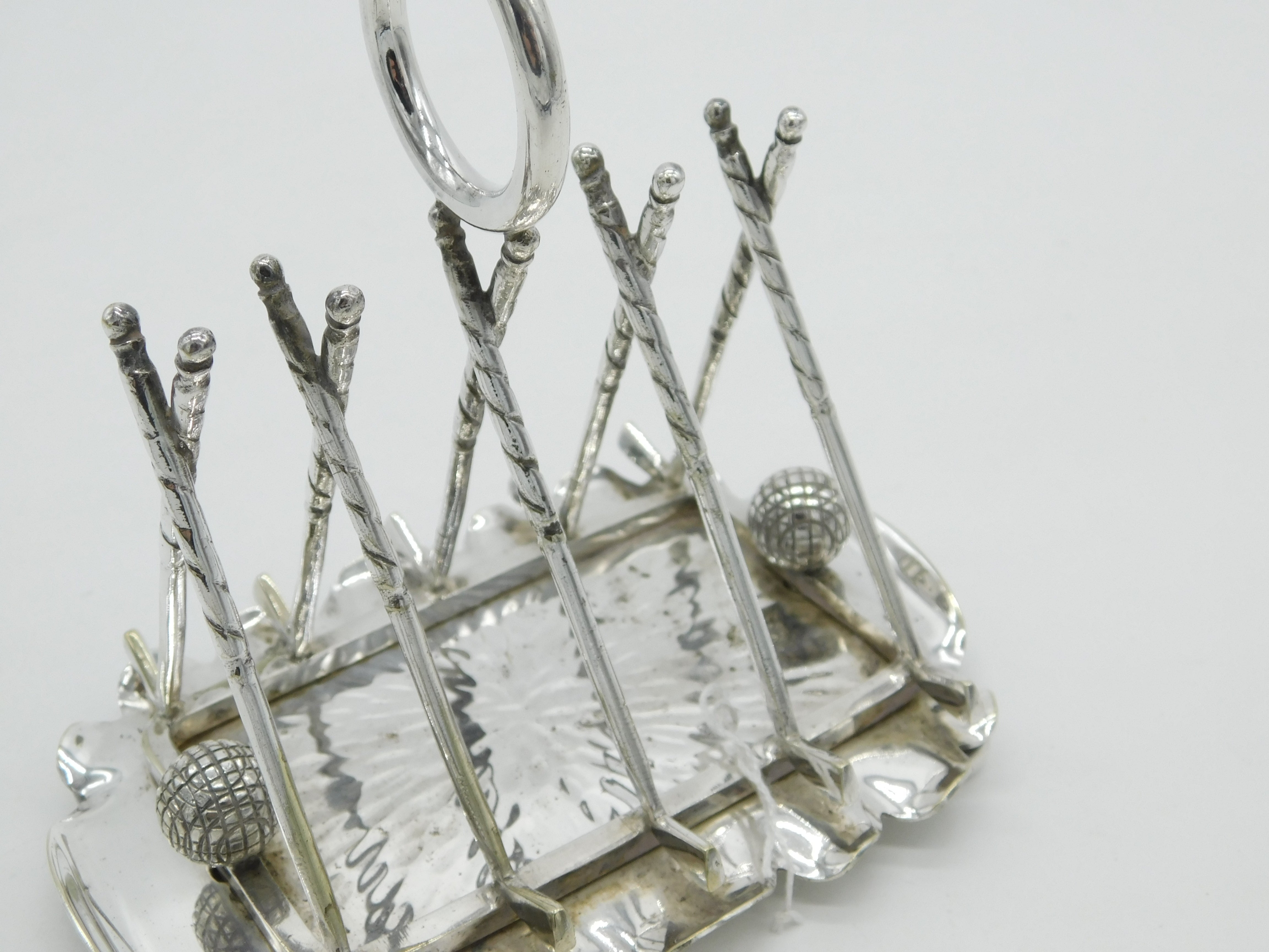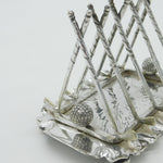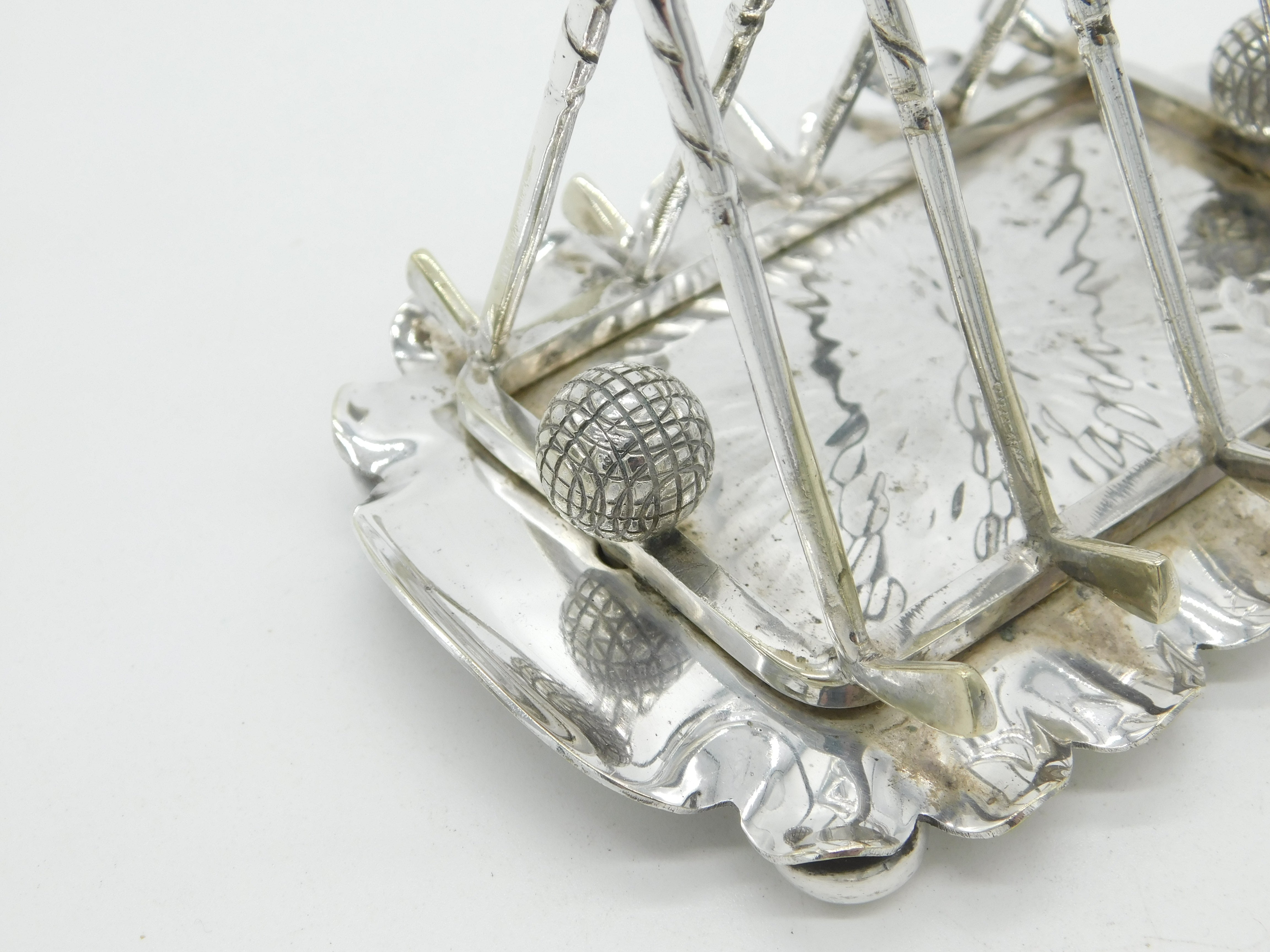 Silver Plated Novelty Golf Clubs & Balls Four Bar Toast Rack Antique c1920 Deco