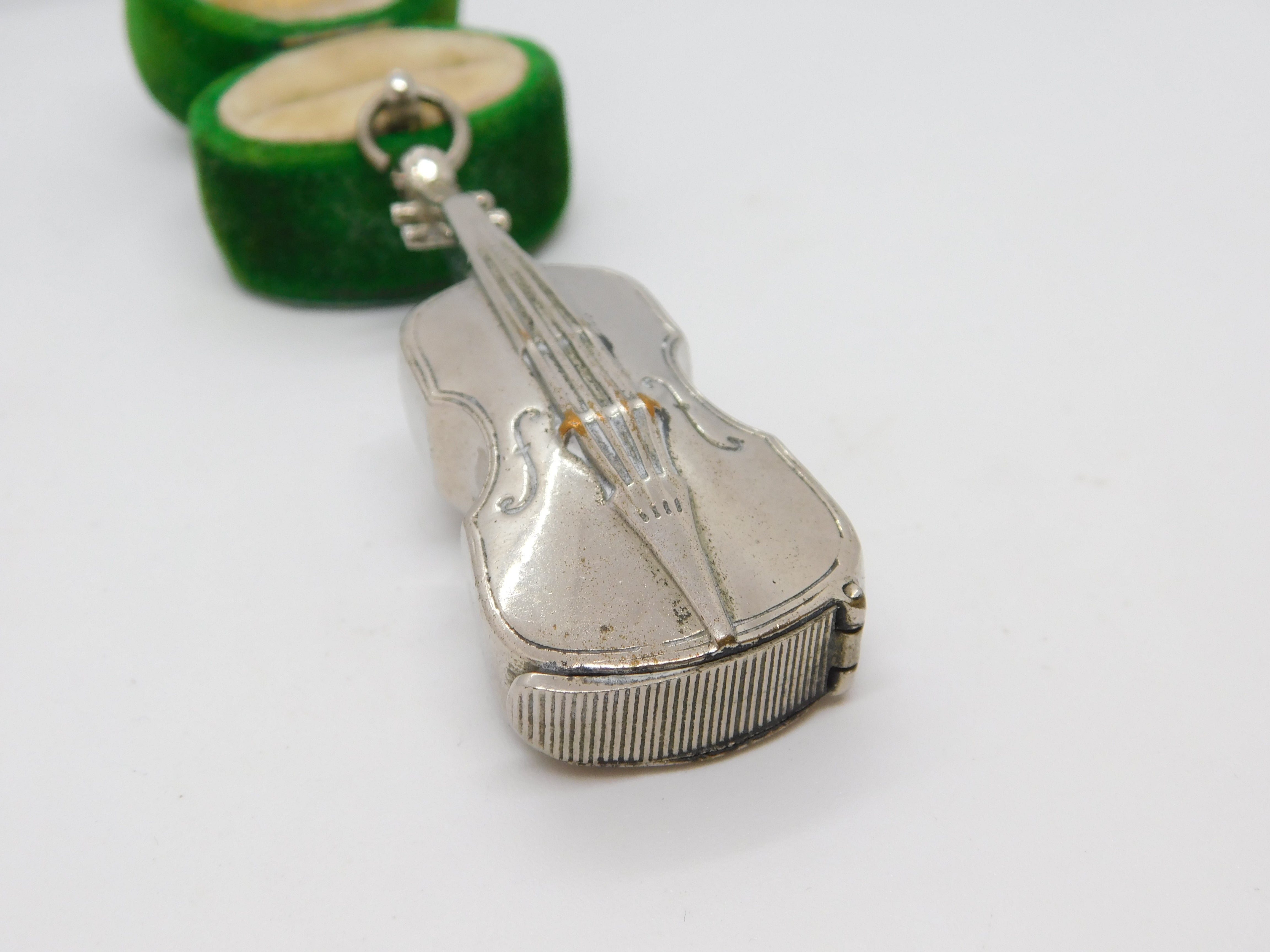 Silver Plated Novelty Violin Musical Vesta Case Antique c1920 Art Deco
