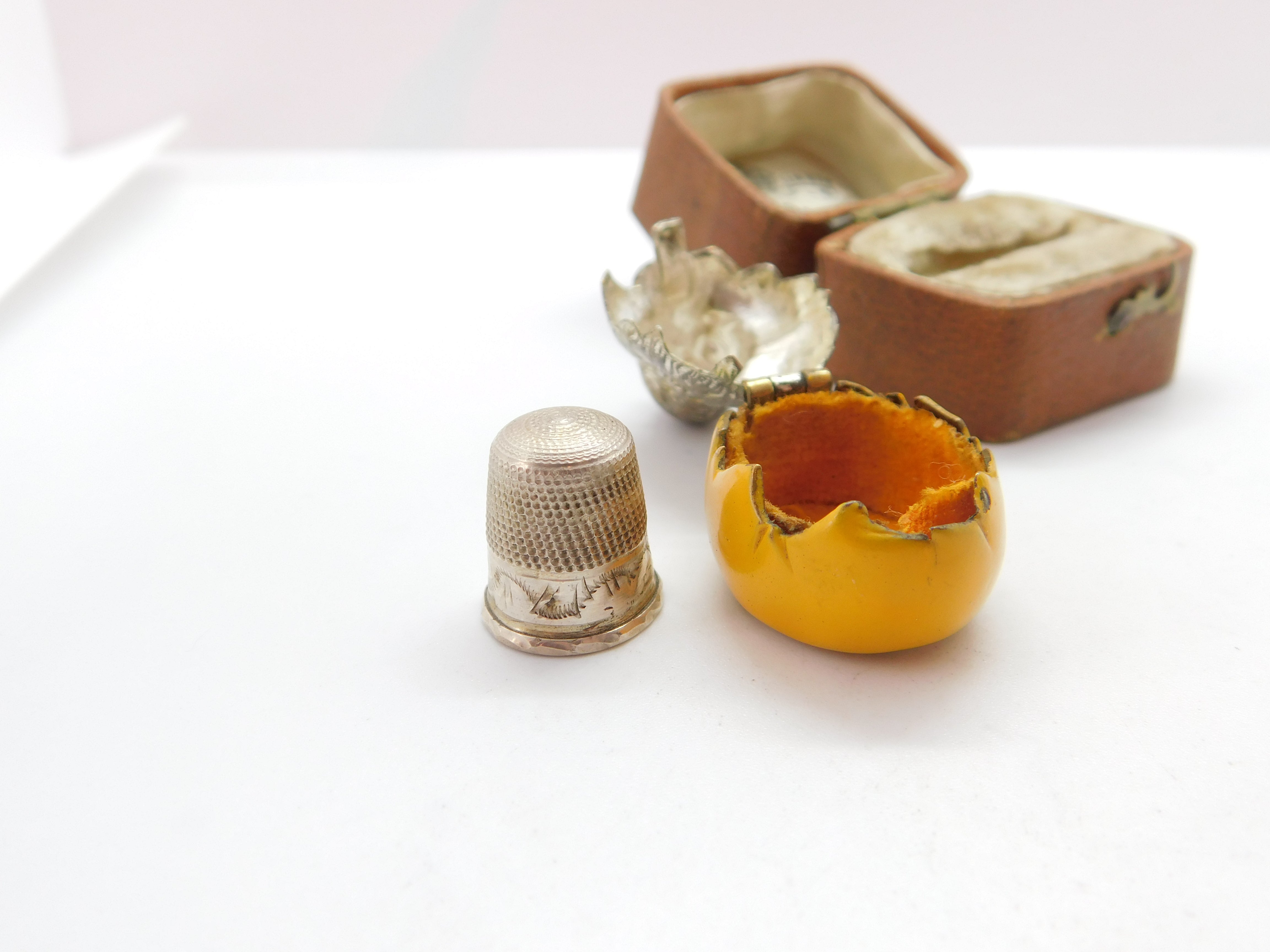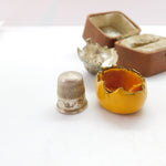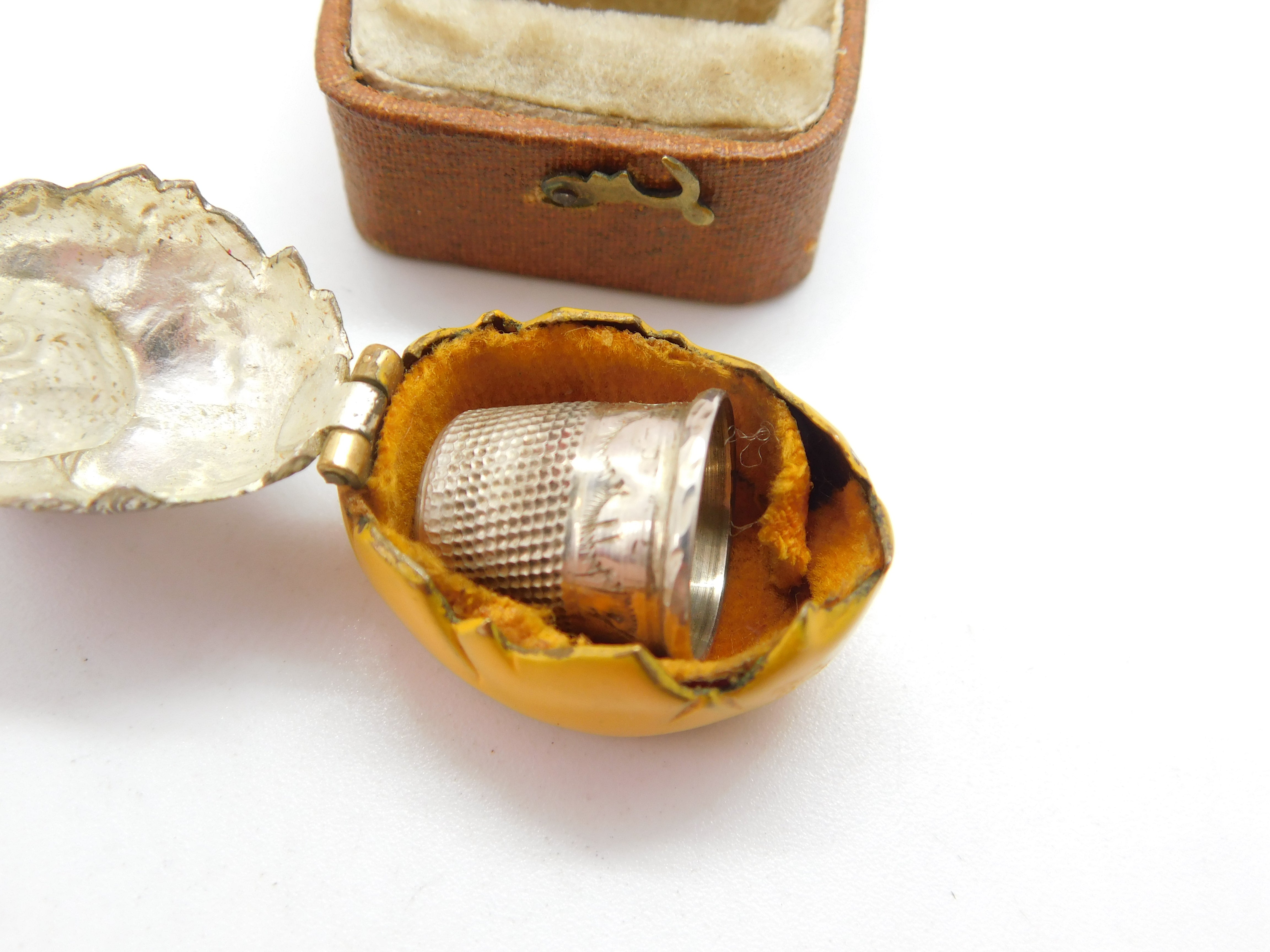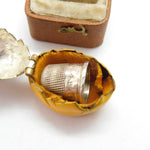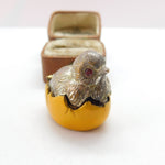 Silver Plated Yellow Enamel Chick in Egg Sewing Thimble Case c1910 Antique