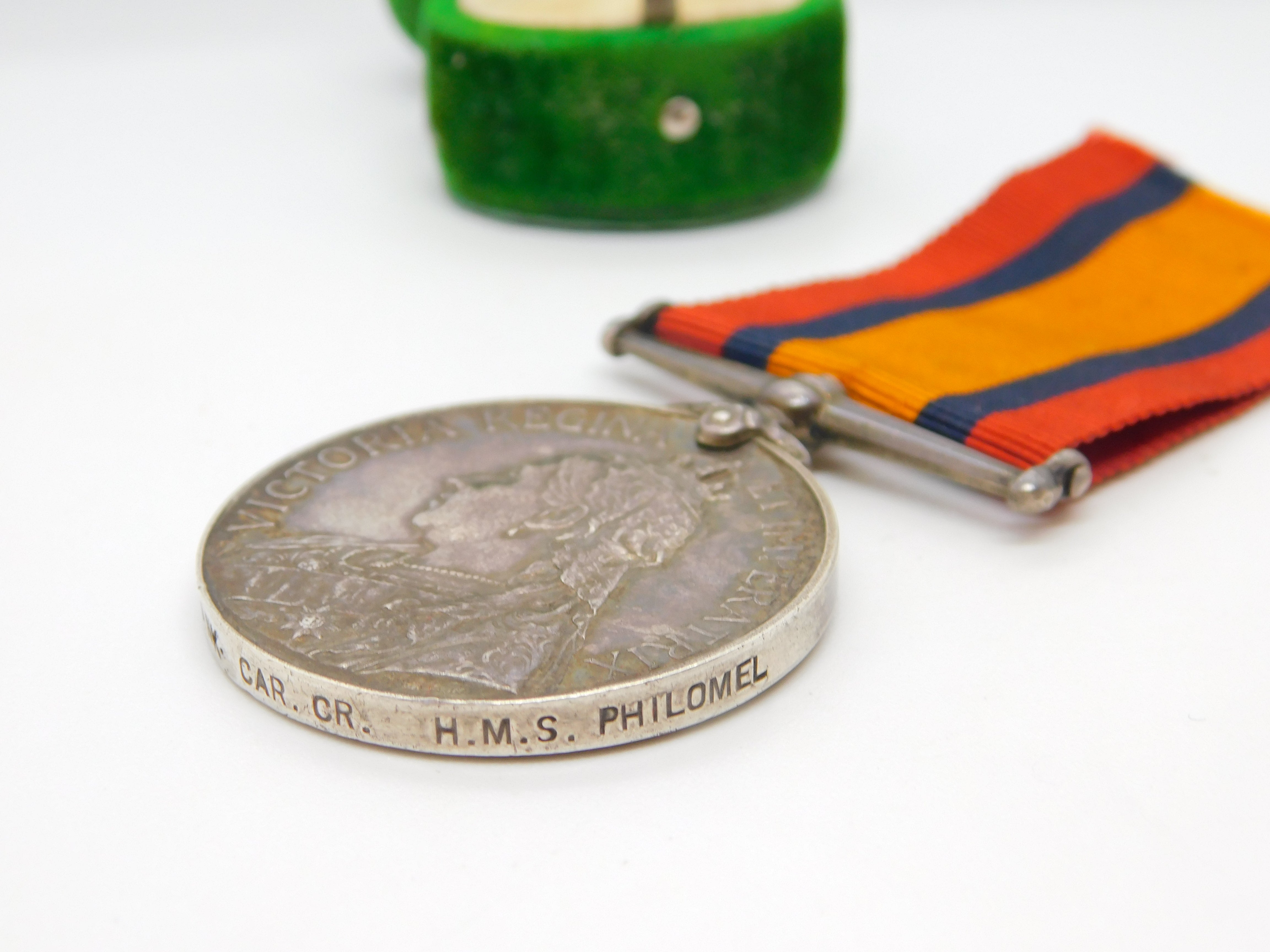 Silver Queens South Africa Medal J.E Pulleyblank HMS Philomel 1900 Antique