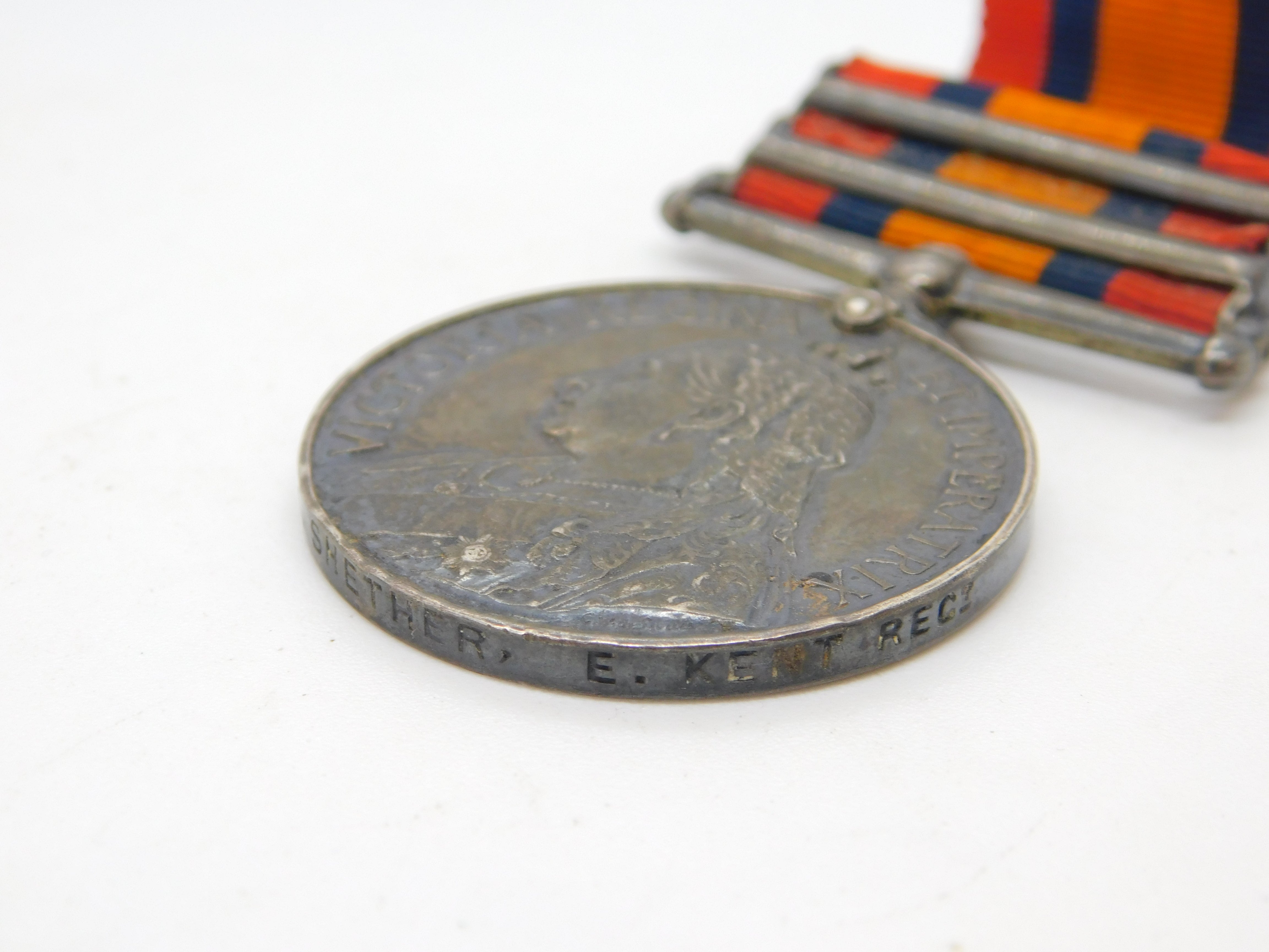 Details: A fantastic and wonderfully designed antique Victorian silver Queens South Africa Boer War medal issued to PTE C Shether of the East Kent Regiment with two bars - Cape Colony & Orange Free State c1900. This is a wonderful item that would make a perfect gift or addition to any collection. The BOX pictured is for PRESENTATION ONLY and is NOT included in the listings but used to frame the pictures unless specifically stated otherwise.