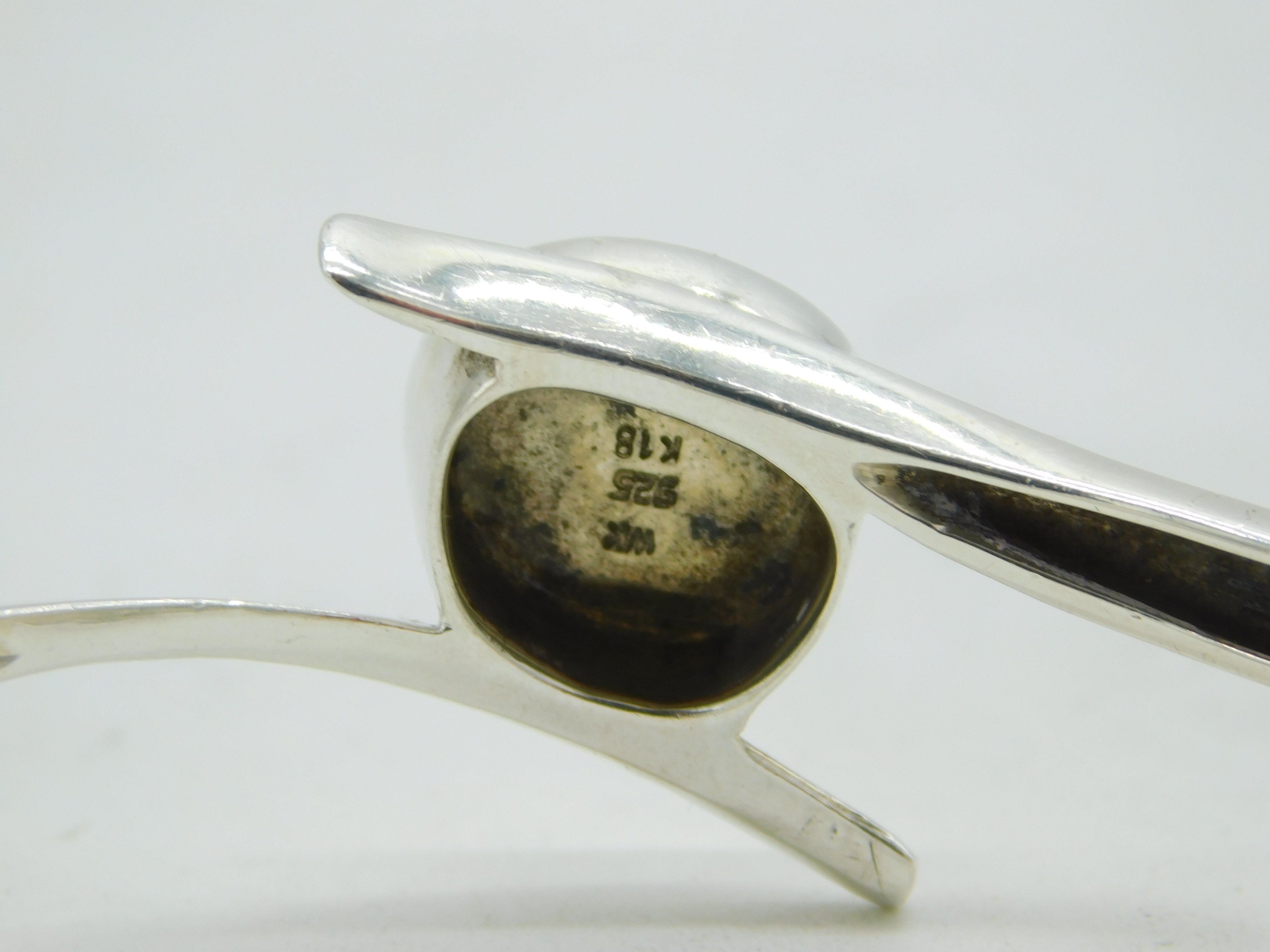 Details: A fantastic and wonderfully designed vintage sterling silver studio jewellery bangle bracelet set with a stunning doublet opal to the centre set in 18ct yellow gold, hallmarked to the reverse '925 & 18K' by maker 'WK'. This is a wonderful item that would make a perfect gift or addition to any collection. We are more than happy to provide XRF reports for items upon request.