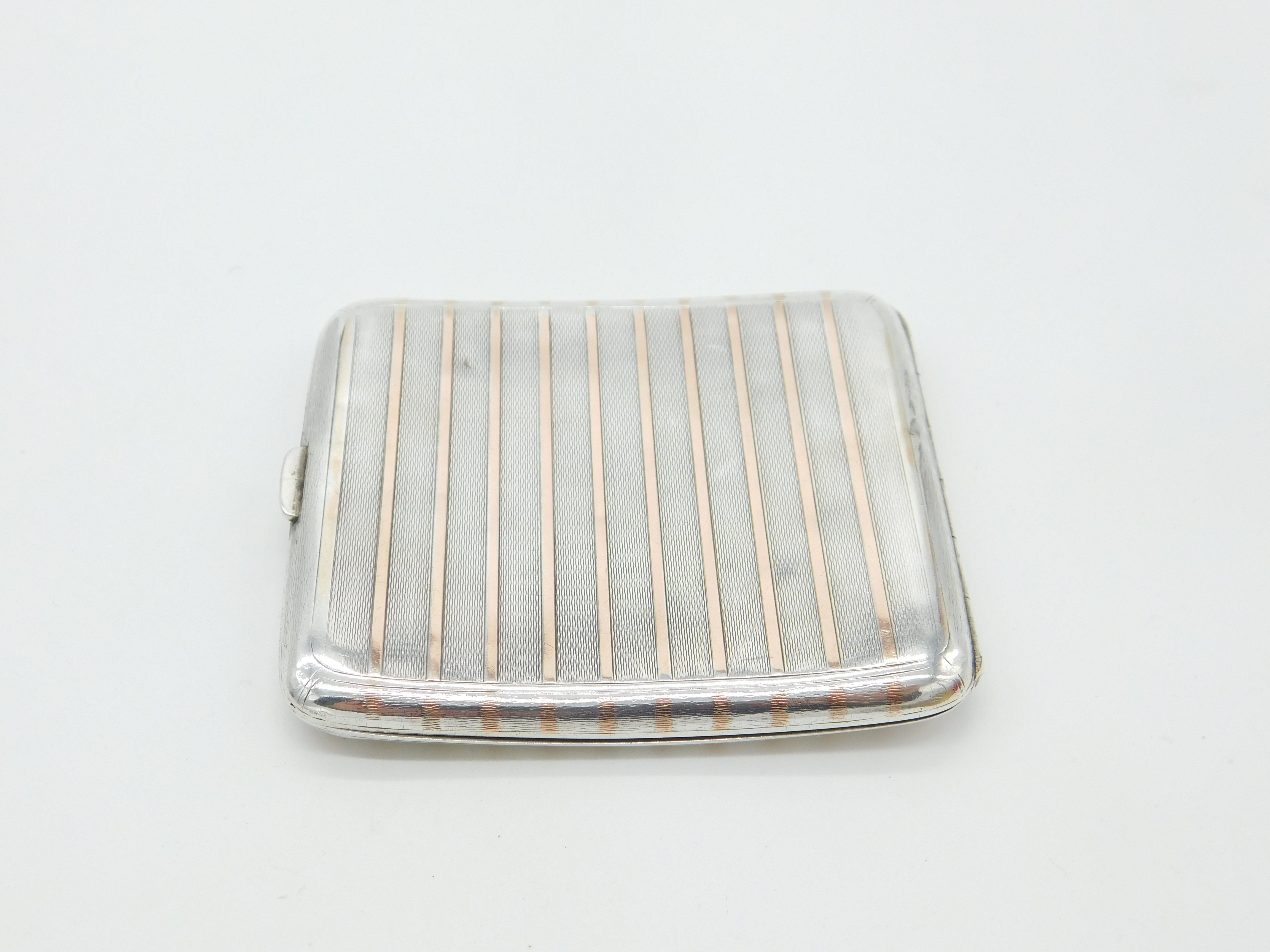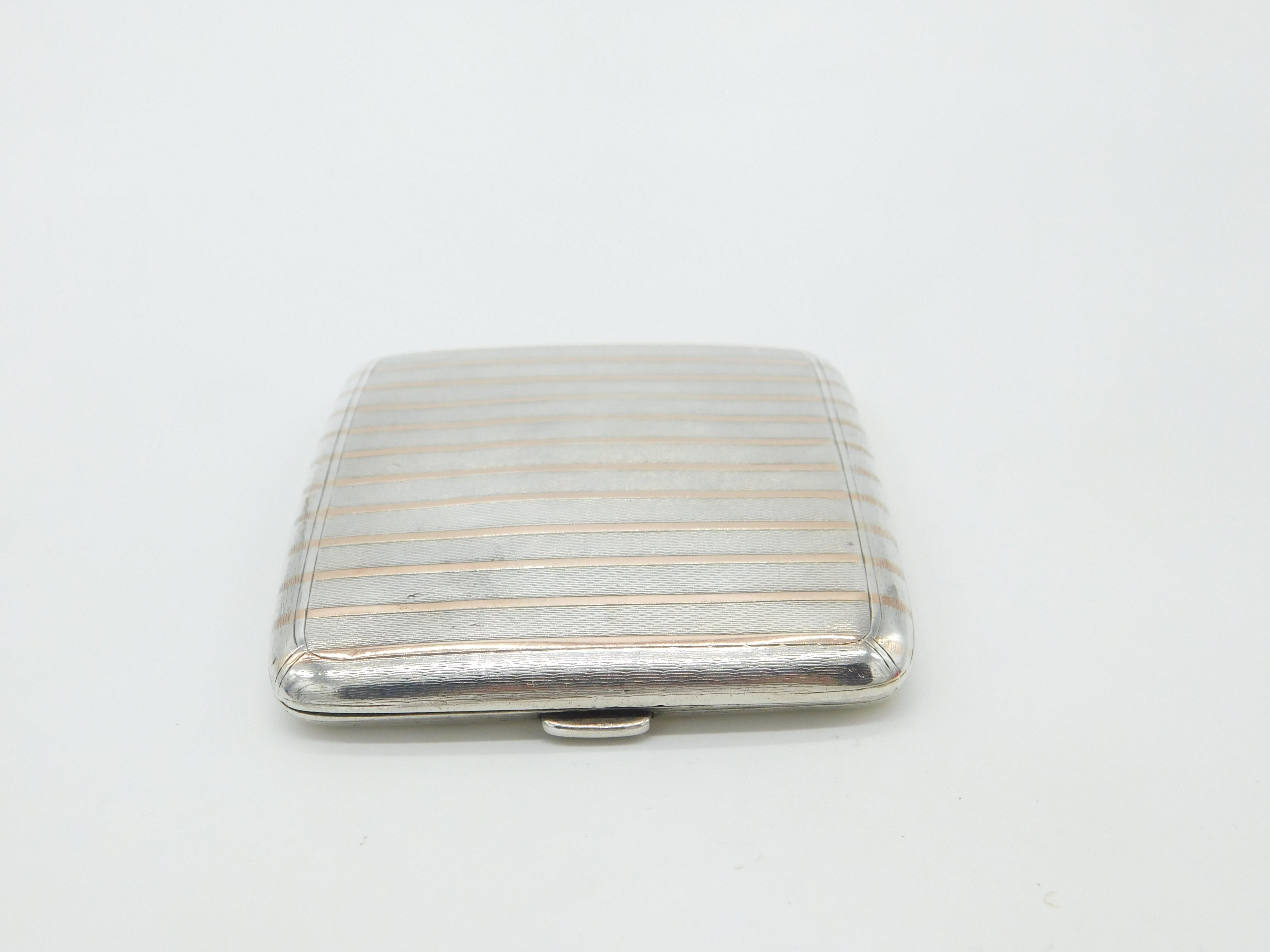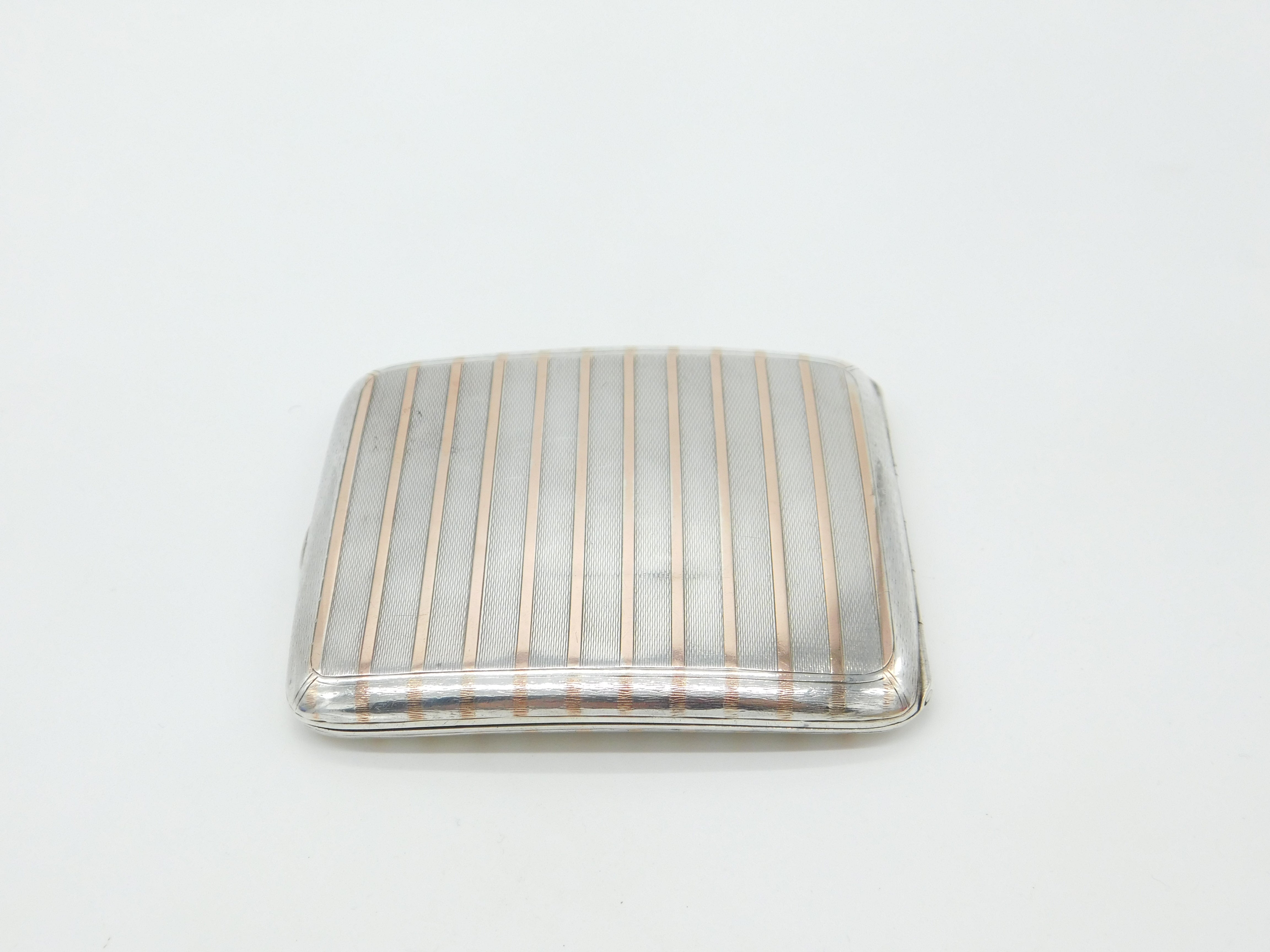 Sterling Silver & 9ct Rose Gold Lined Cigarette Case Antique 1924 Birmingham