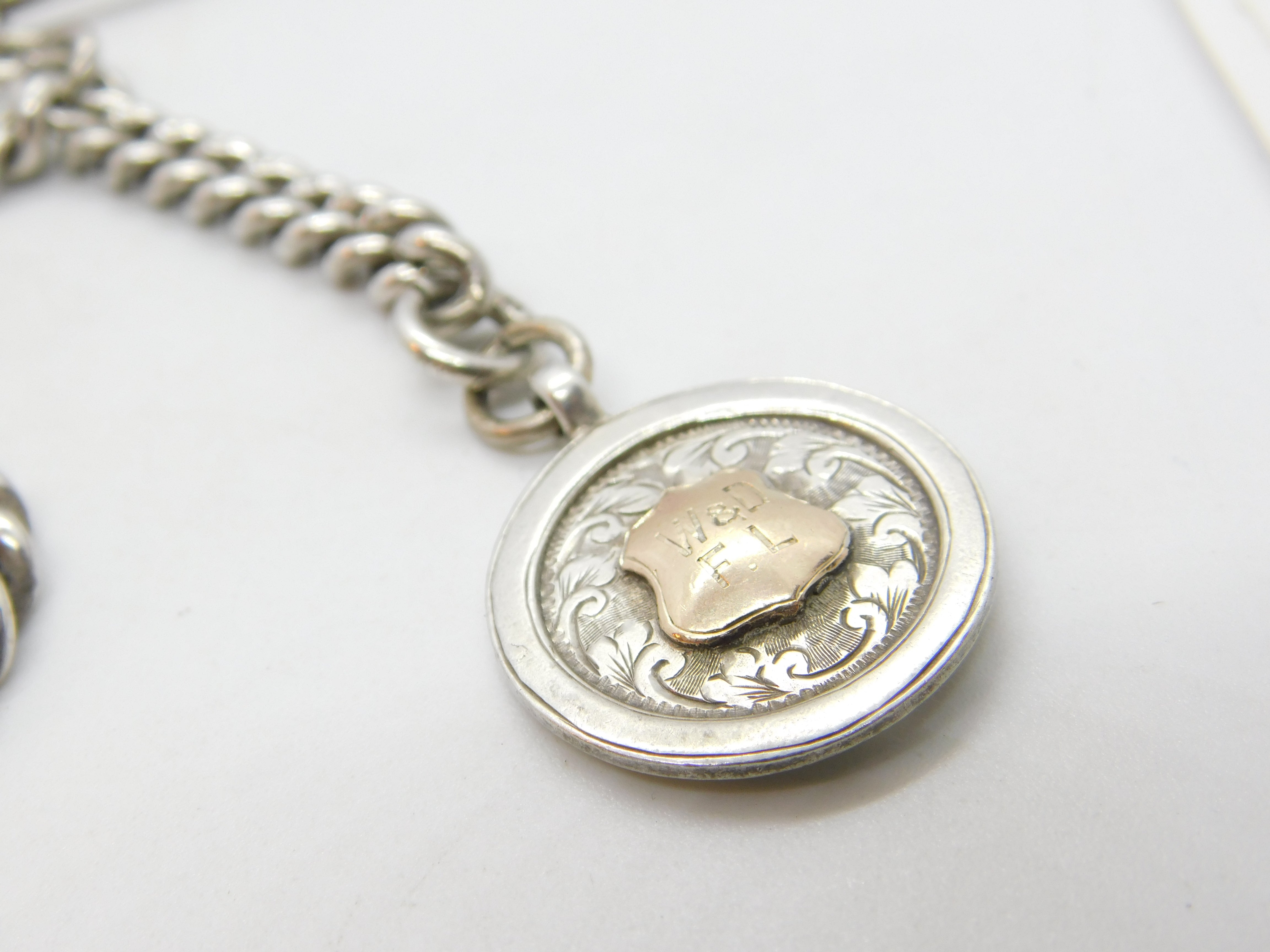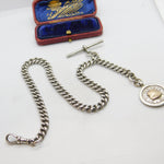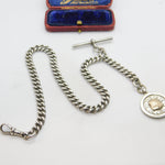 Sterling Silver Albert Watch Chain with Fob Antique 1911 Birmingham Art Deco