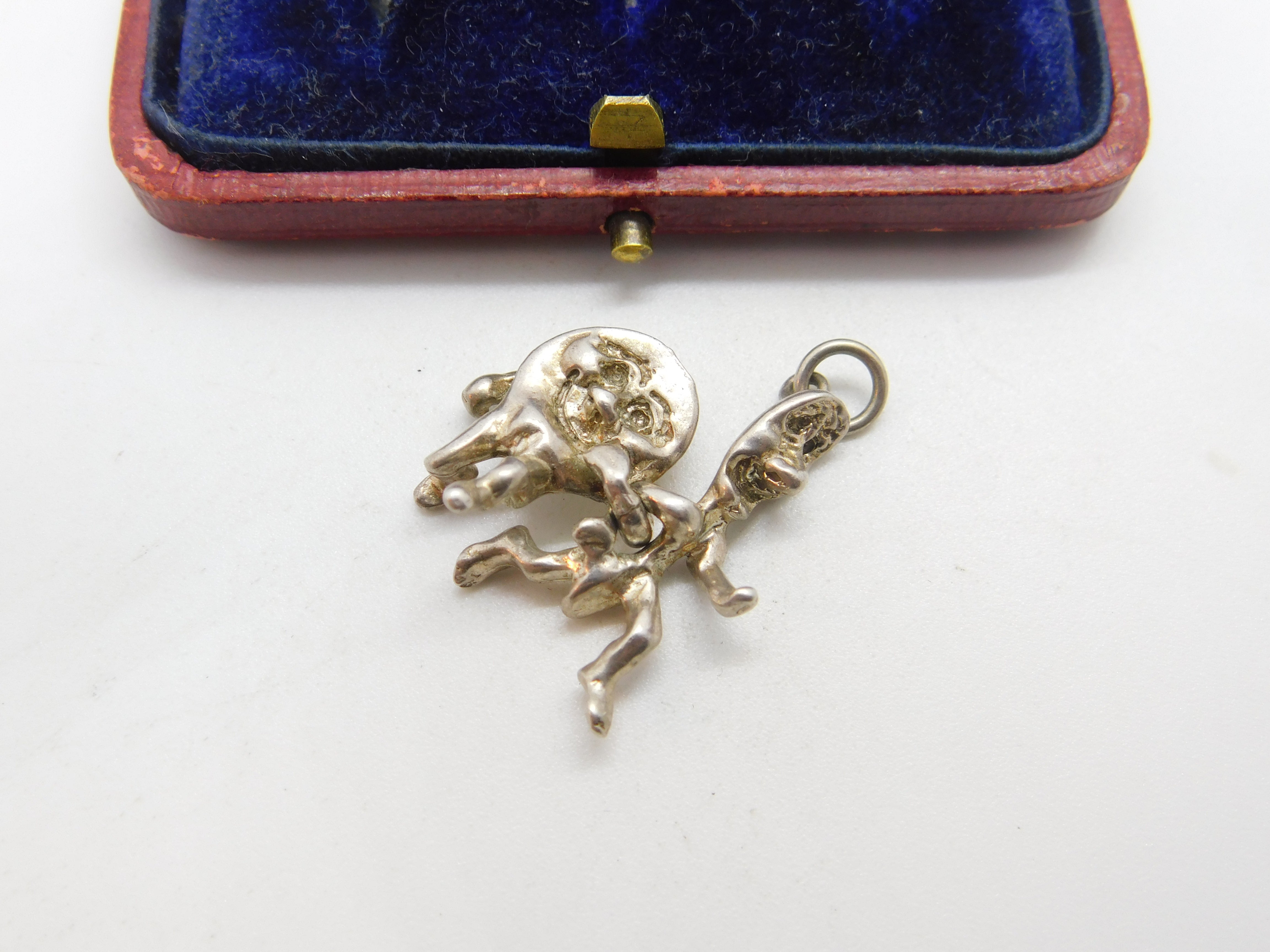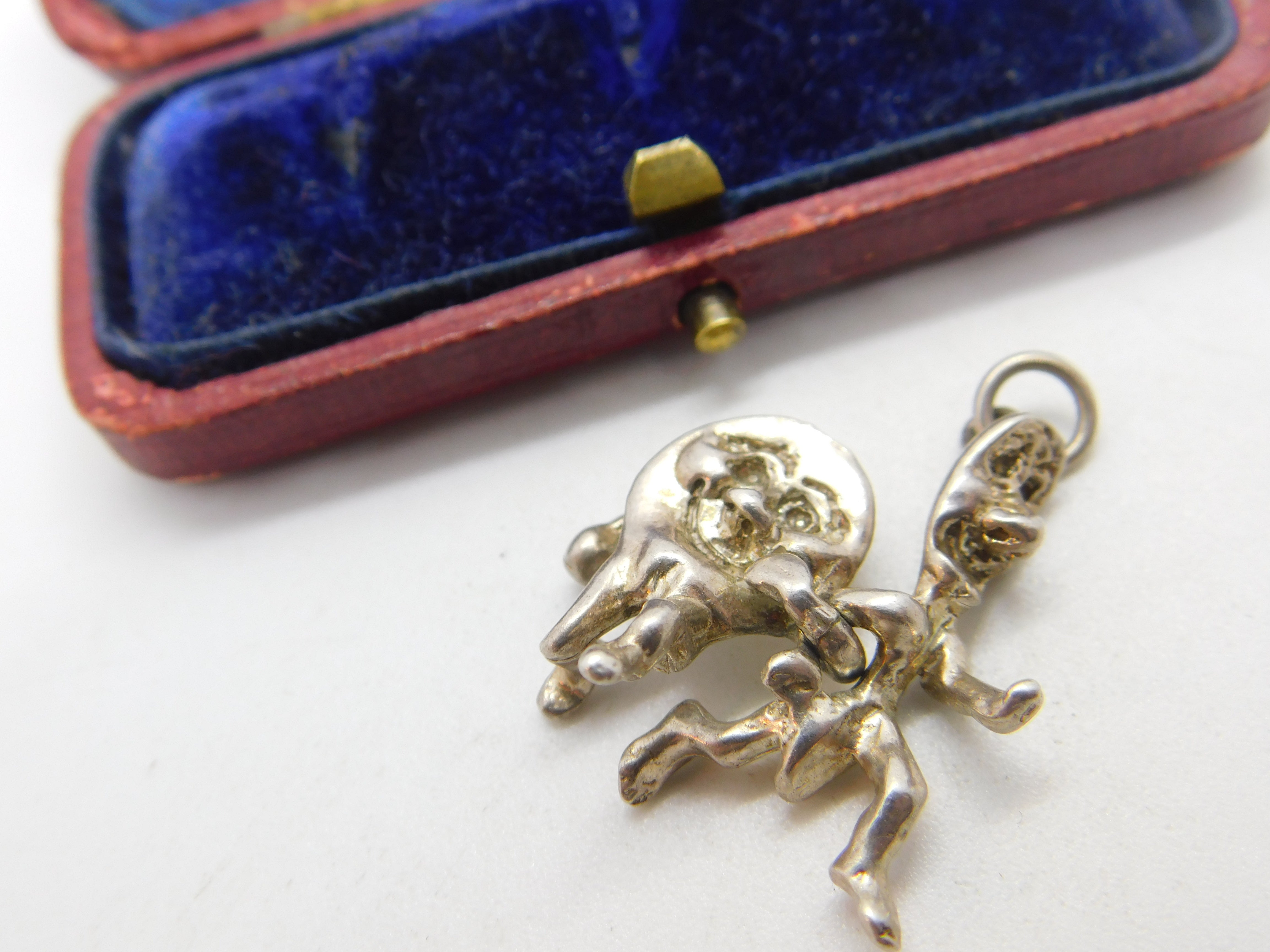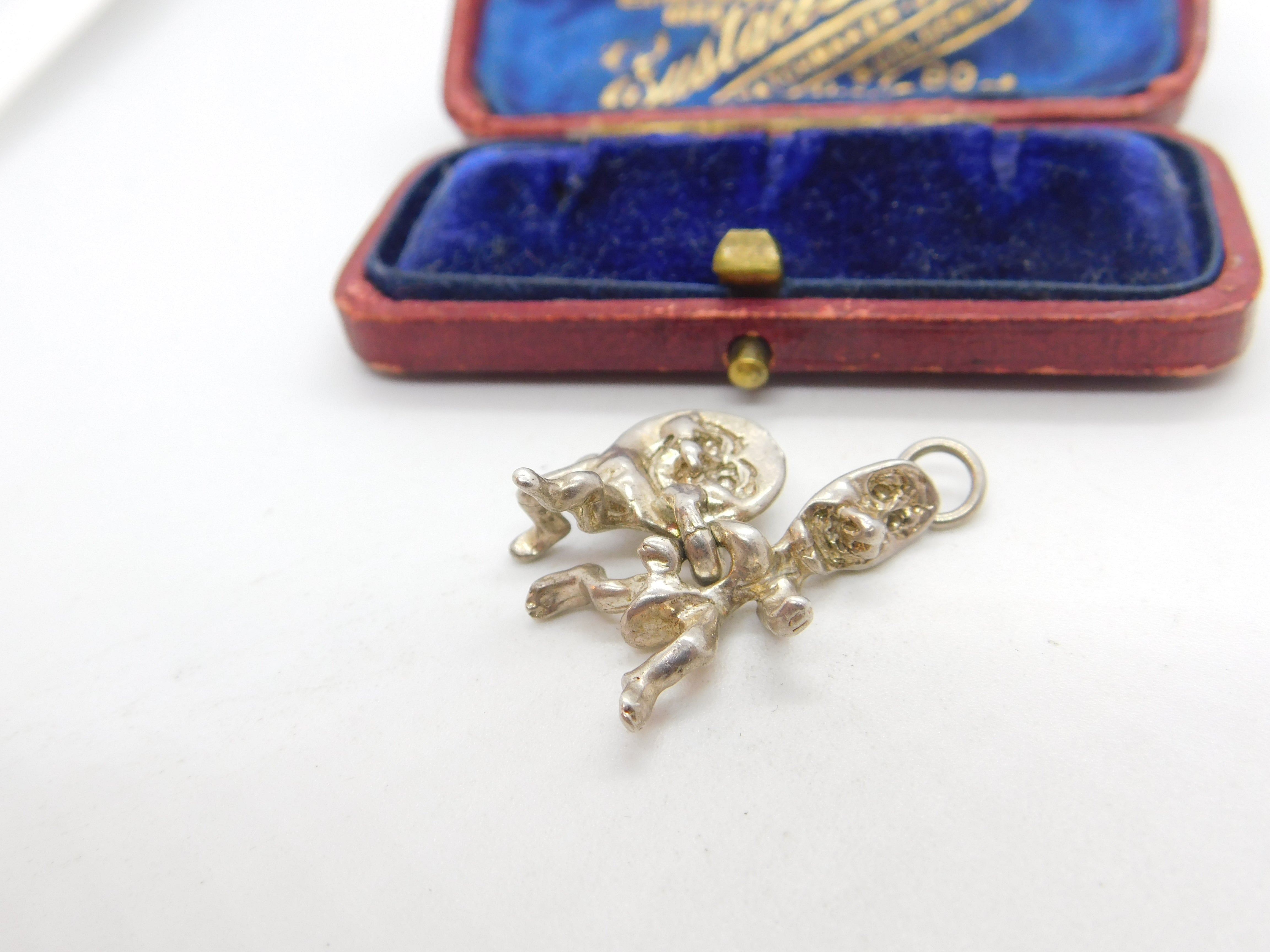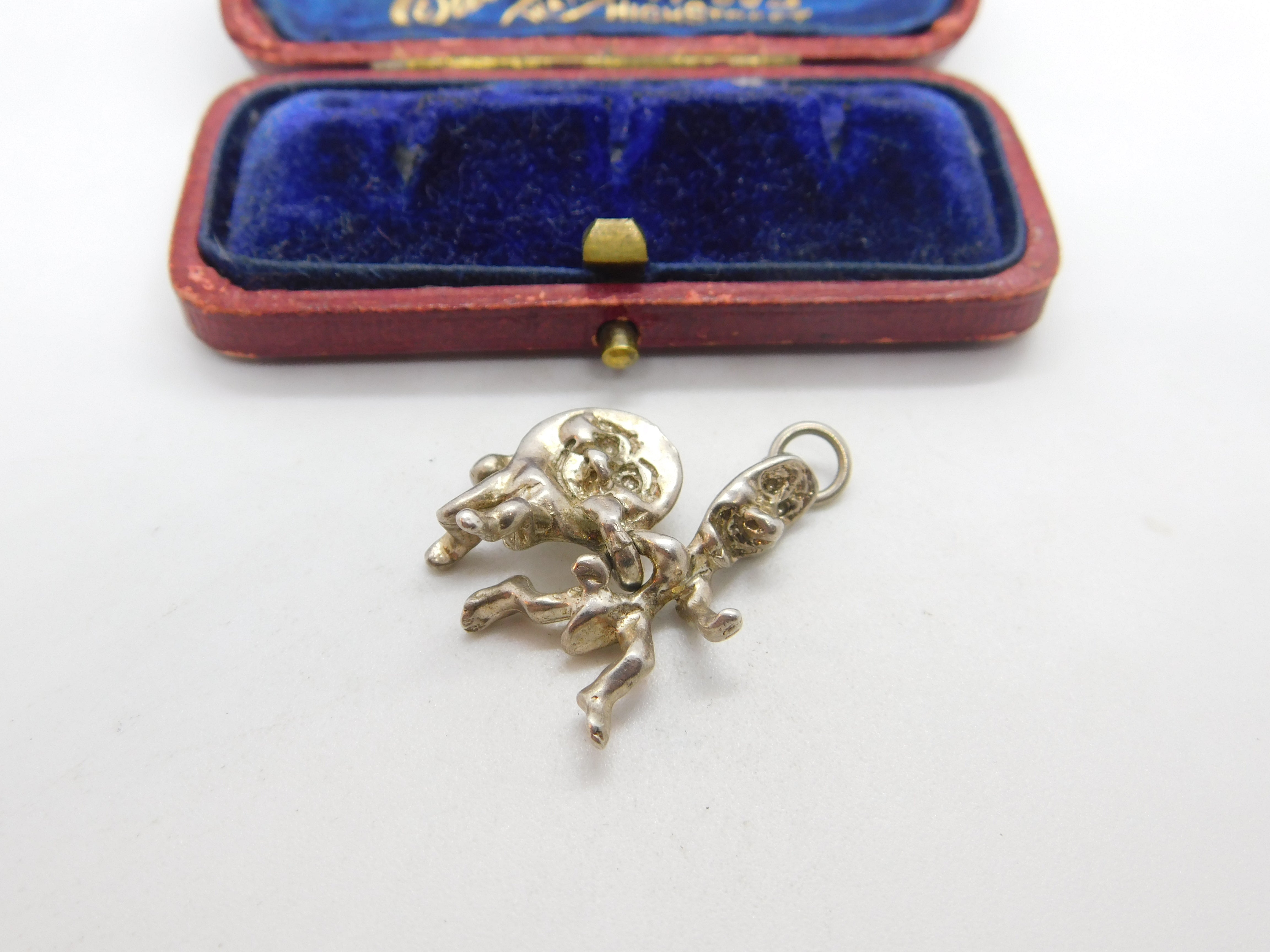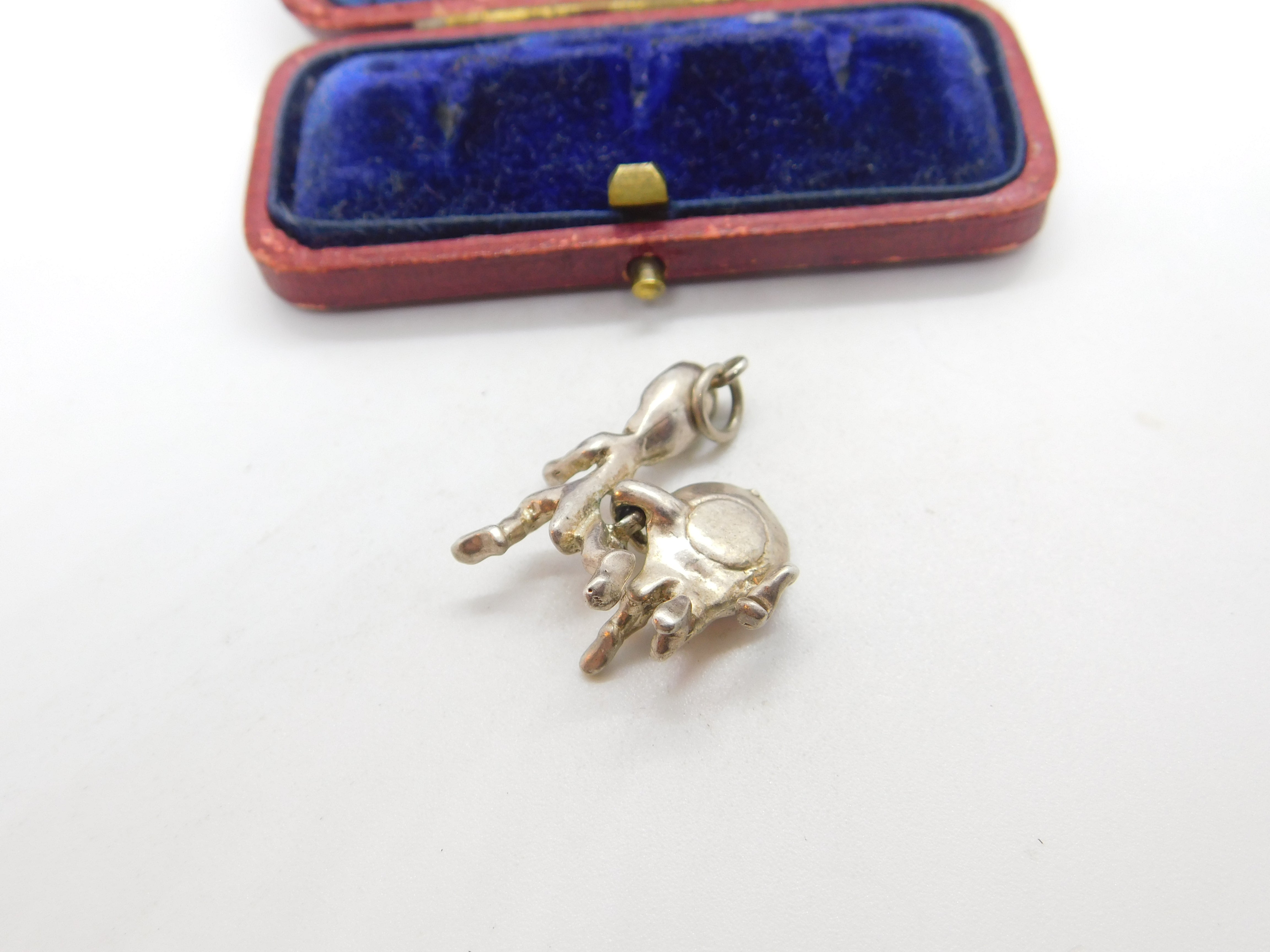 Details: A fantastic and wonderfully designed vintage very unique sterling silver articulated charm depicting the scene from the nursery rhyme 'The dish running away with the spoon' c1970. This is a wonderful item that would make a perfect gift or addition to any collection. The BOX pictured is for PRESENTATION ONLY and is NOT included in the listings but used to frame the pictures unless specifically stated otherwise.