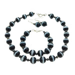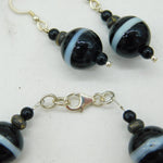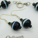 Sterling Silver Banded Agate 3-Part Jewellery Suite Necklace, Bracelet, Earrings c1970