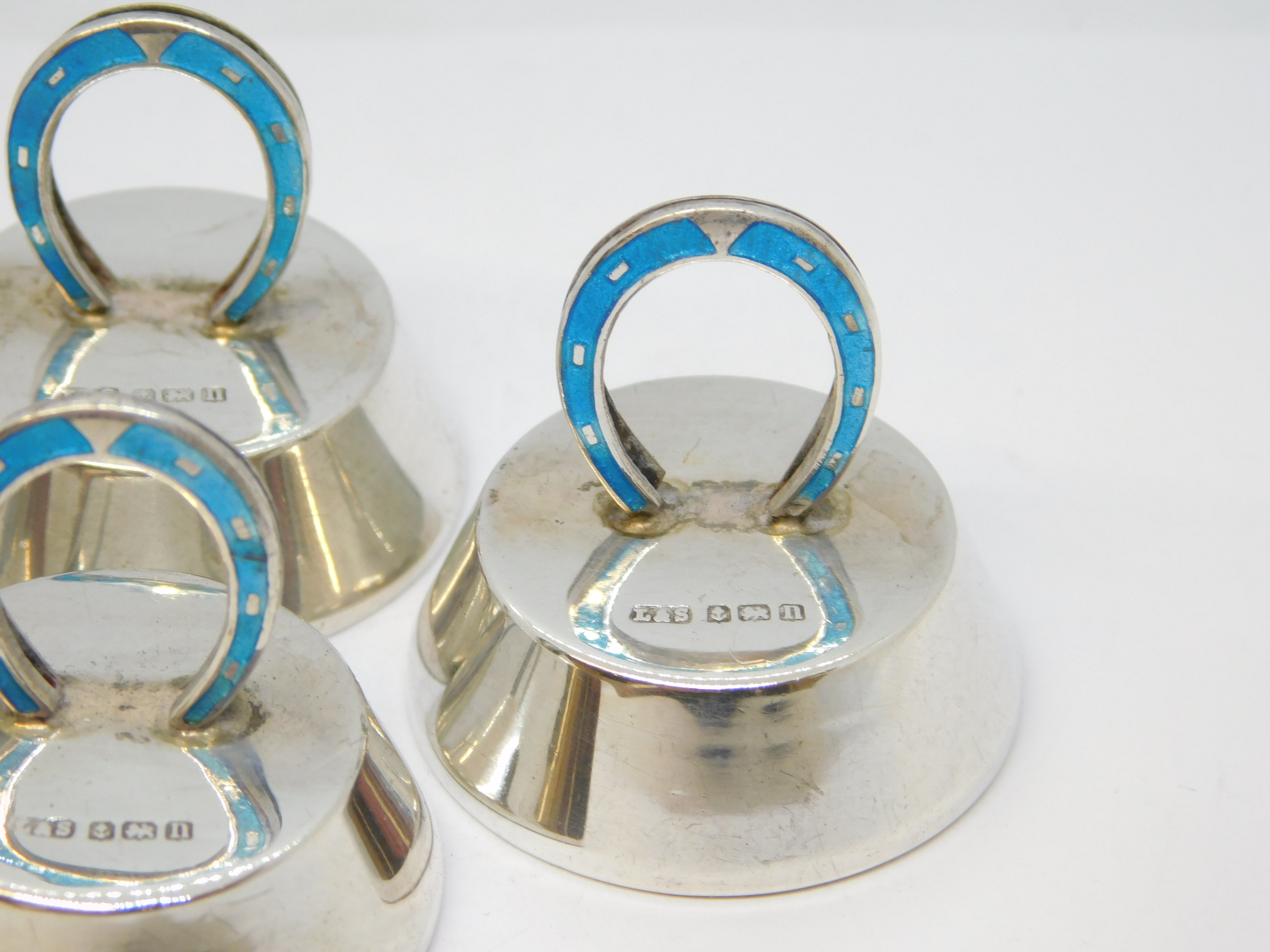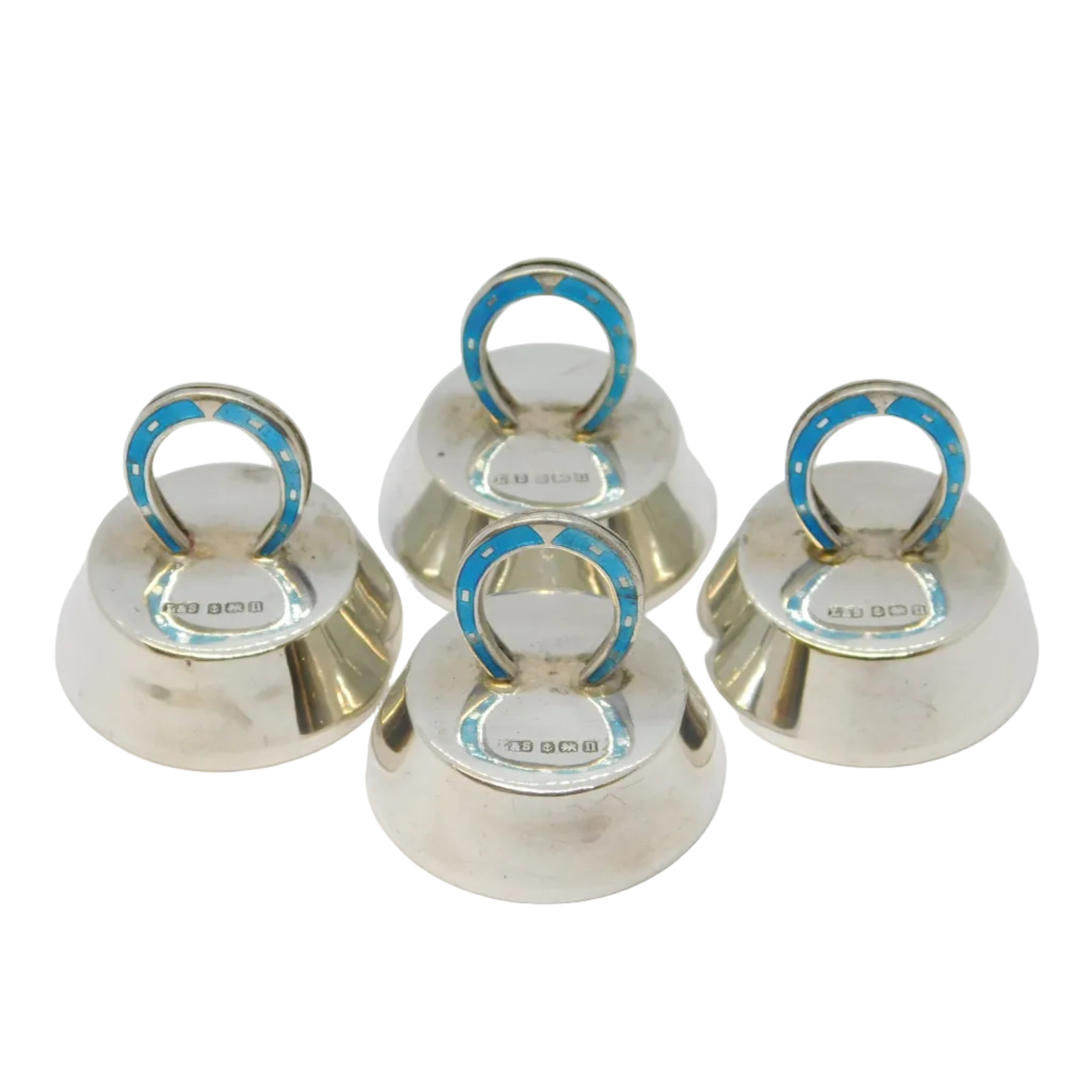 Sterling Silver & Blue Enamel Horseshoe Menu or Place Settings Antique Art Deco