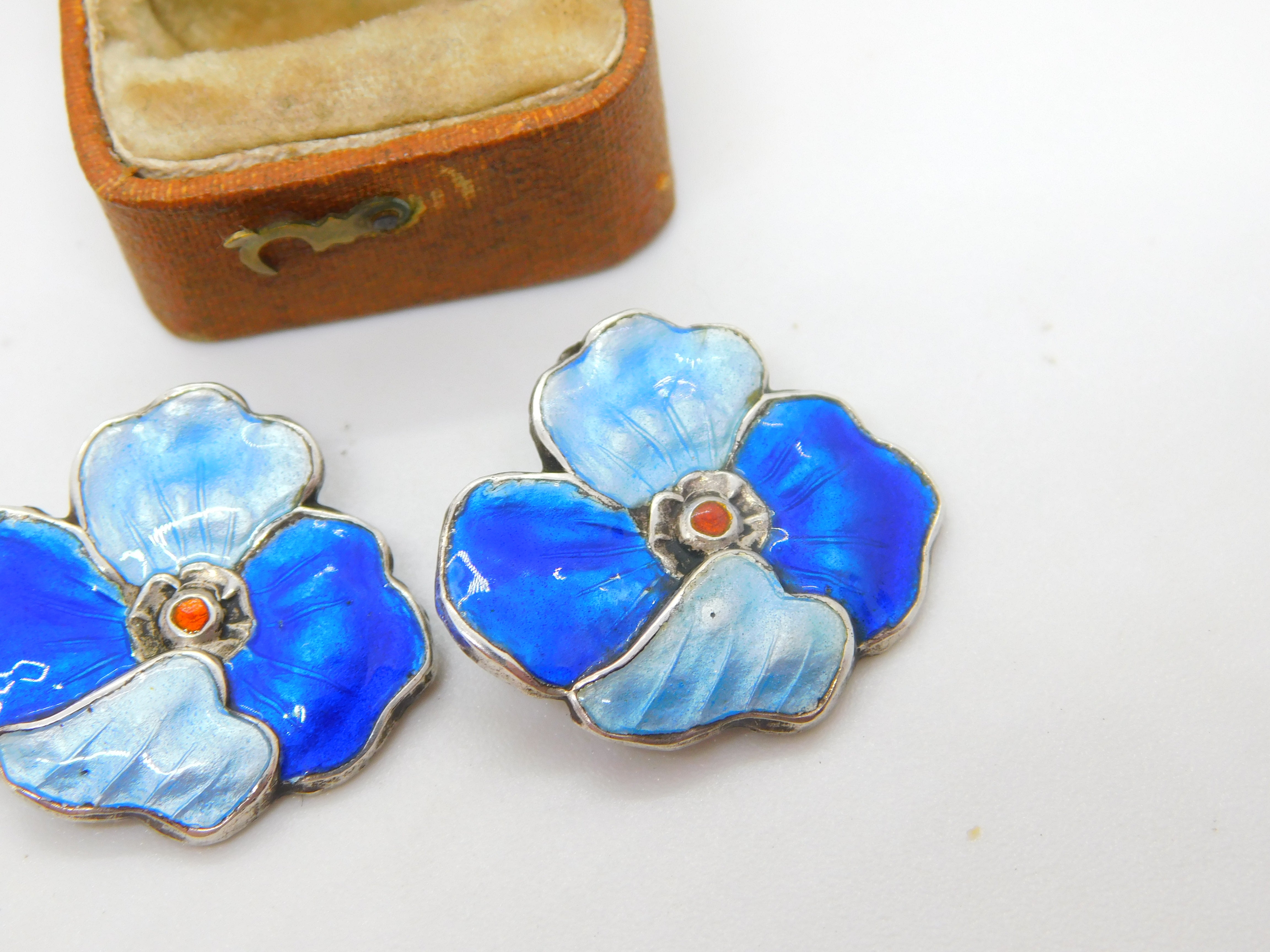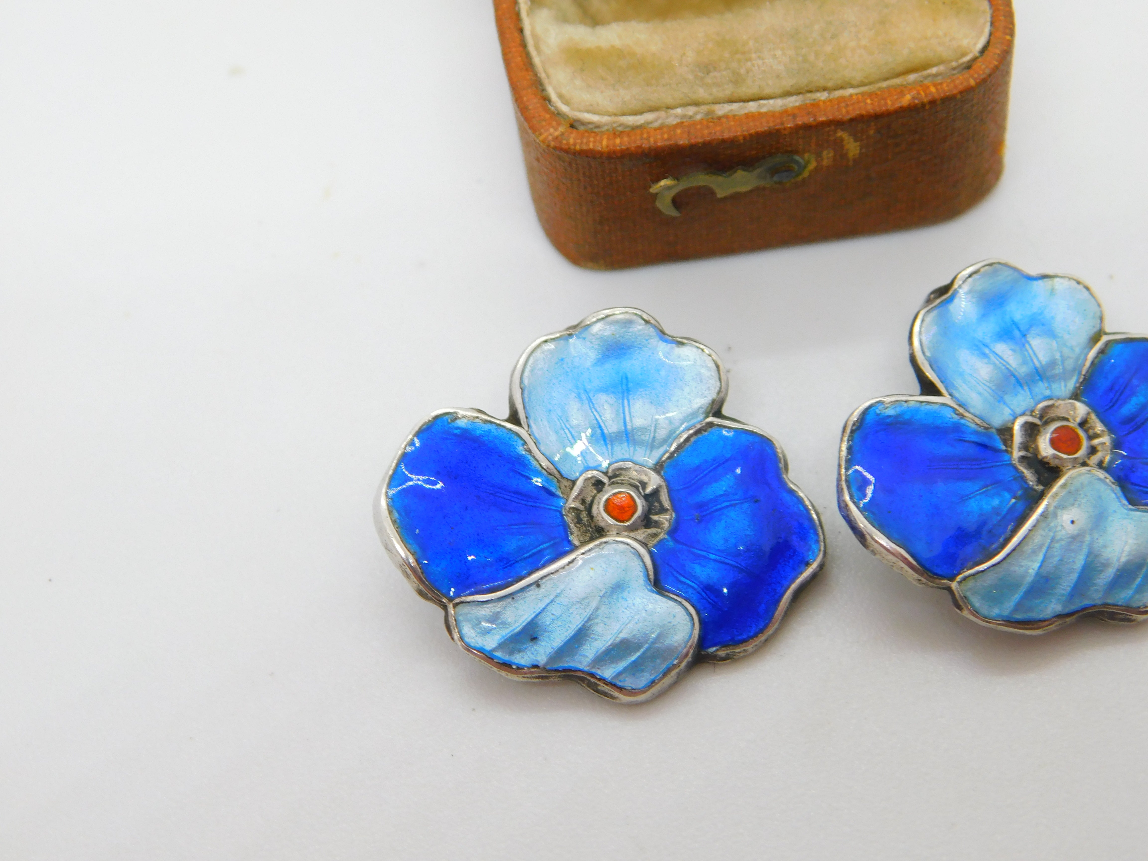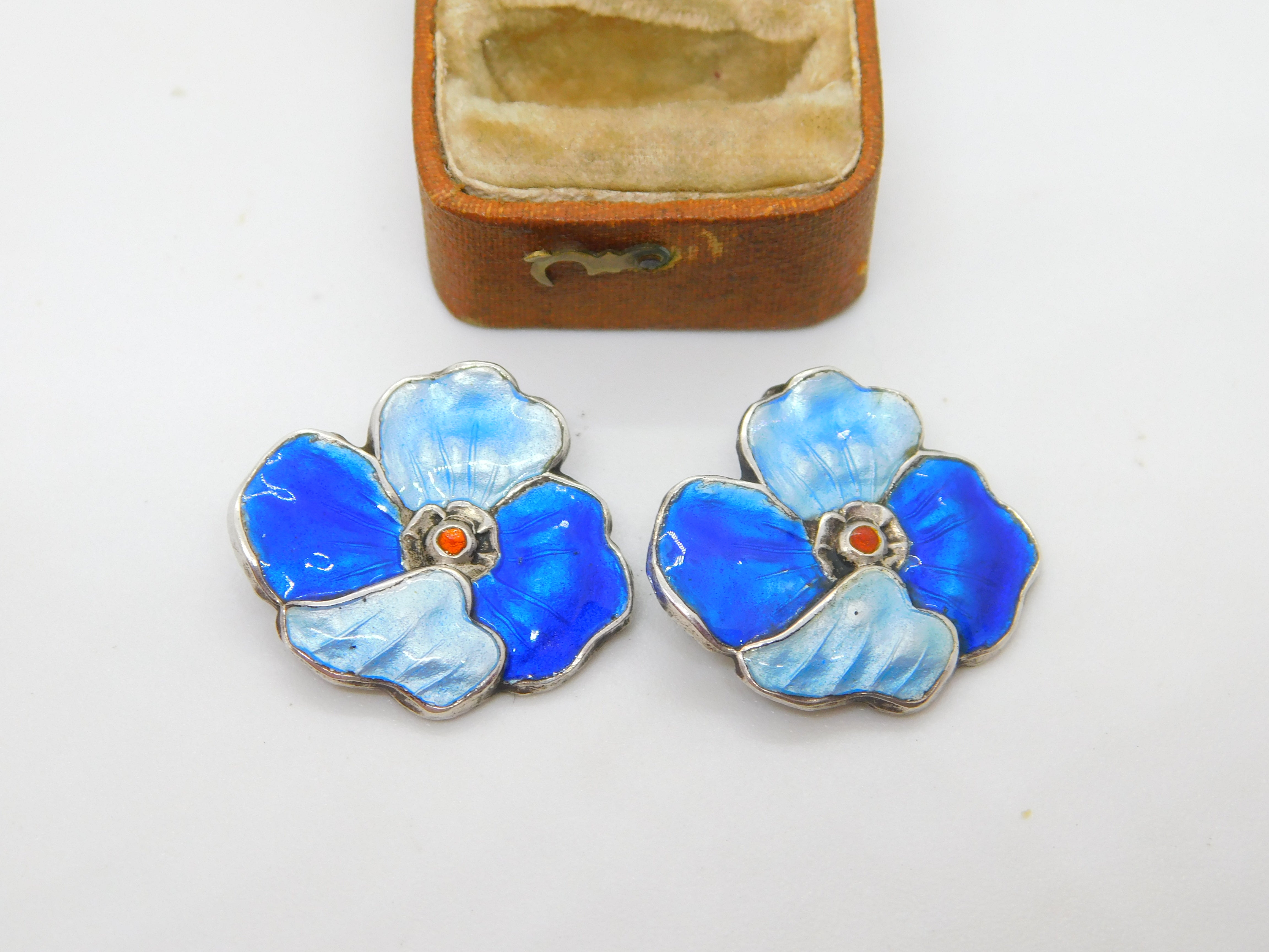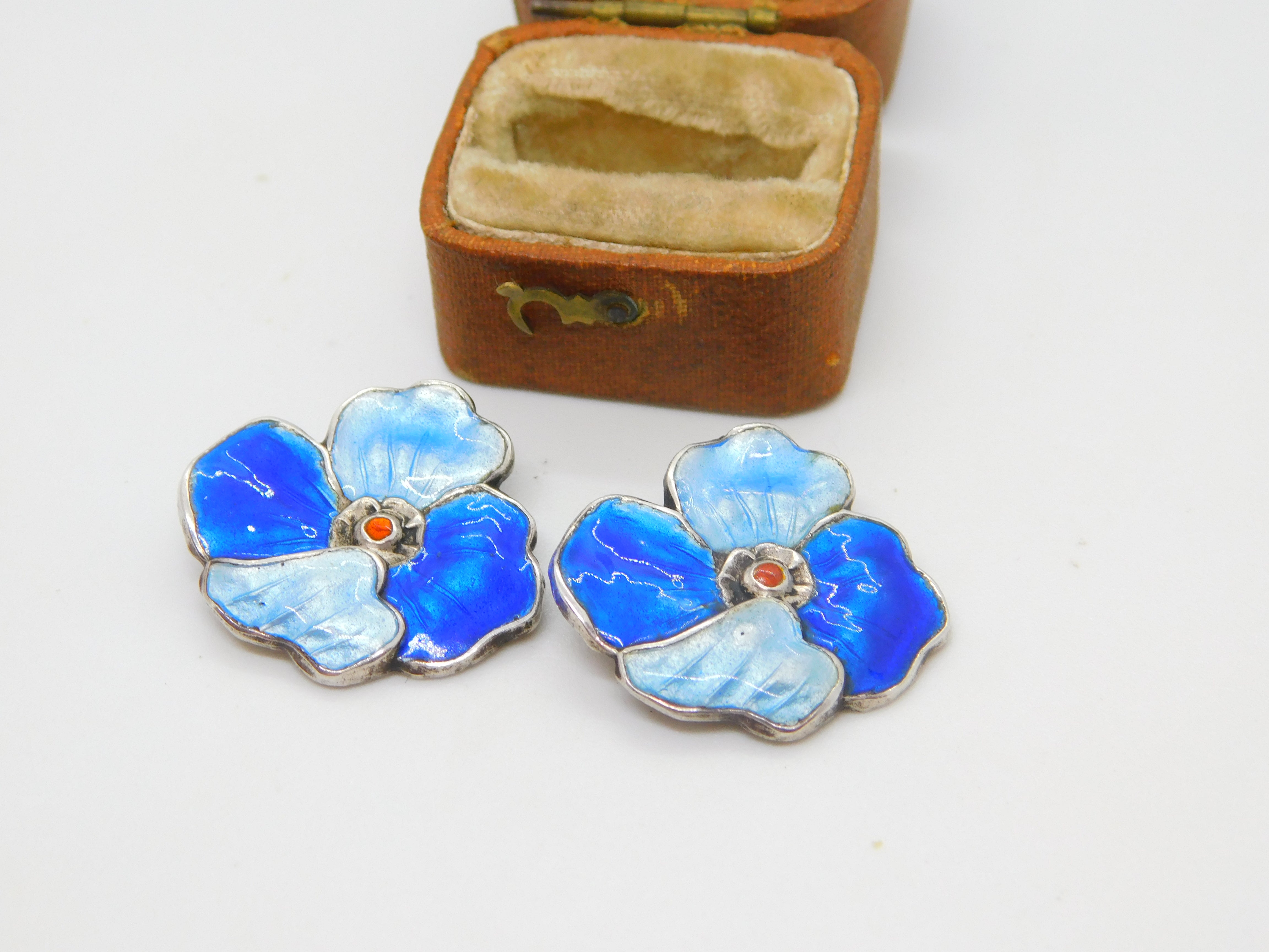 Details: A fantastic and wonderfully designed antique art deco sterling silver guilloche enamel floral clip-on earrings with lovely detailing hallmarked to the reverse c1930 possibly scandinavian. This is a wonderful item that would make a perfect gift or addition to any collection. The BOX pictured is for PRESENTATION ONLY and is NOT included in the listings but used to frame the pictures unless specifically stated otherwise.
