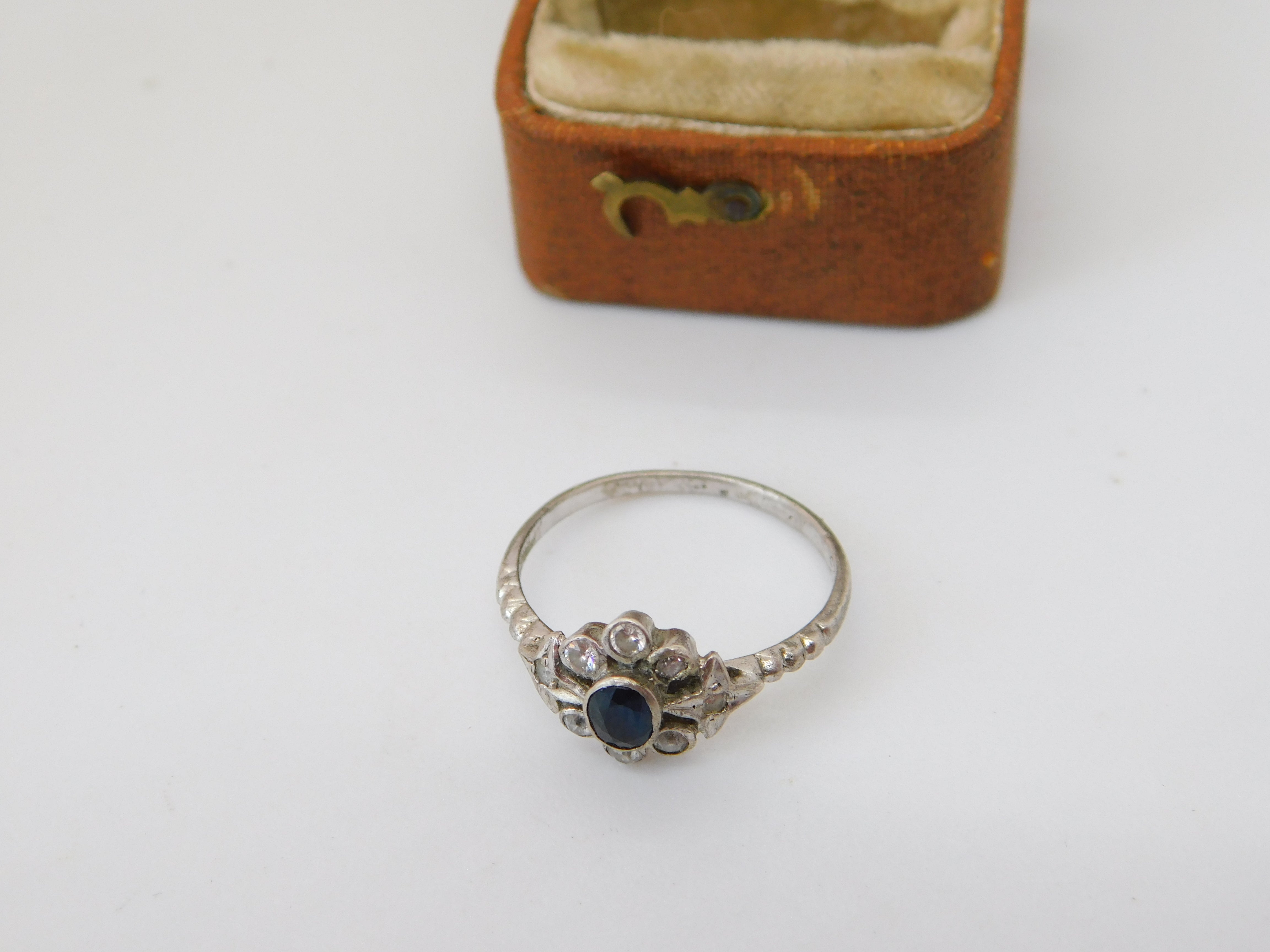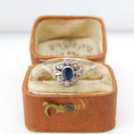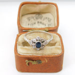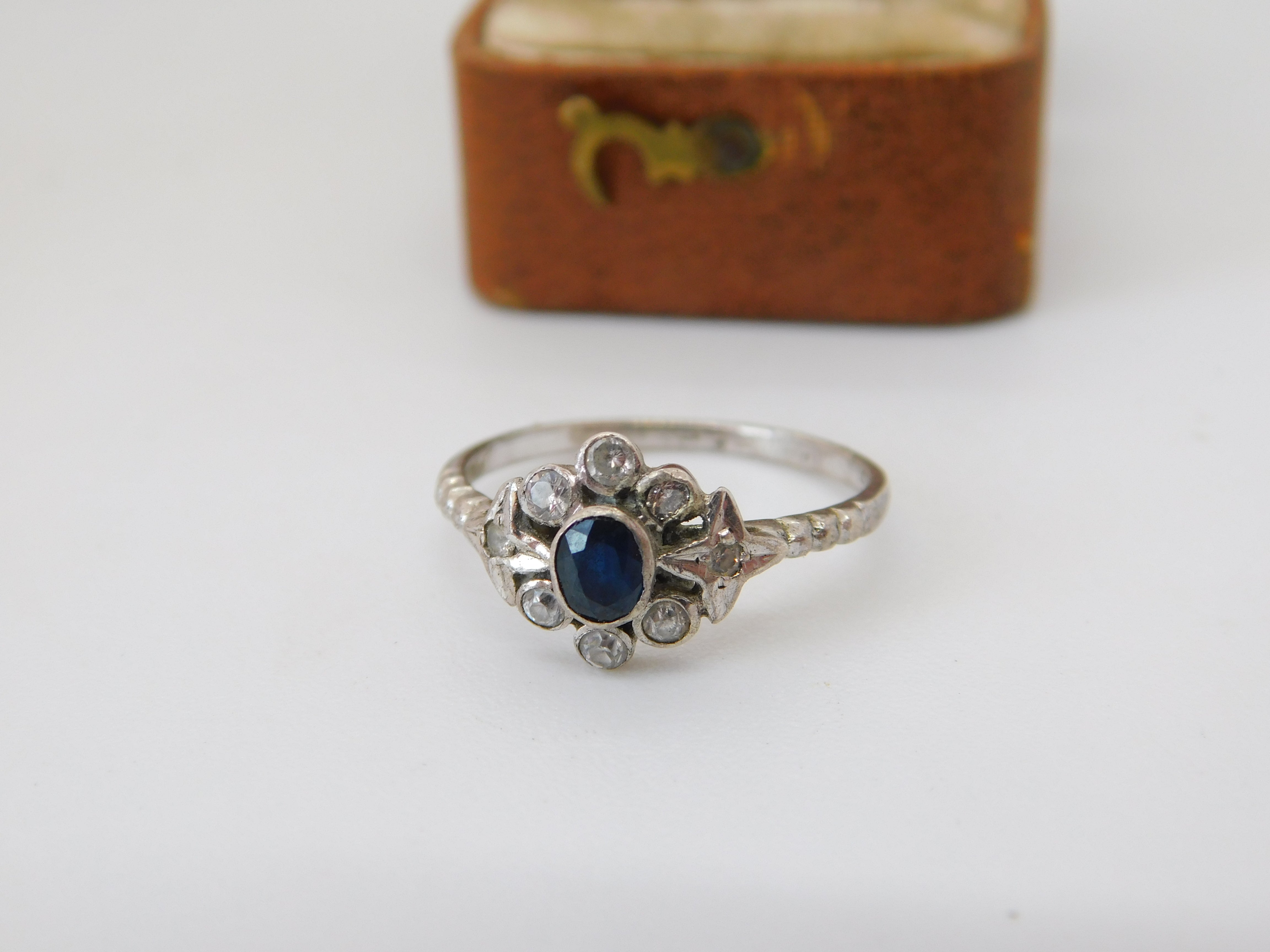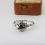 Sterling Silver, Blue Sapphire & Spinel Set Floral Cluster Ring Antique c1930
