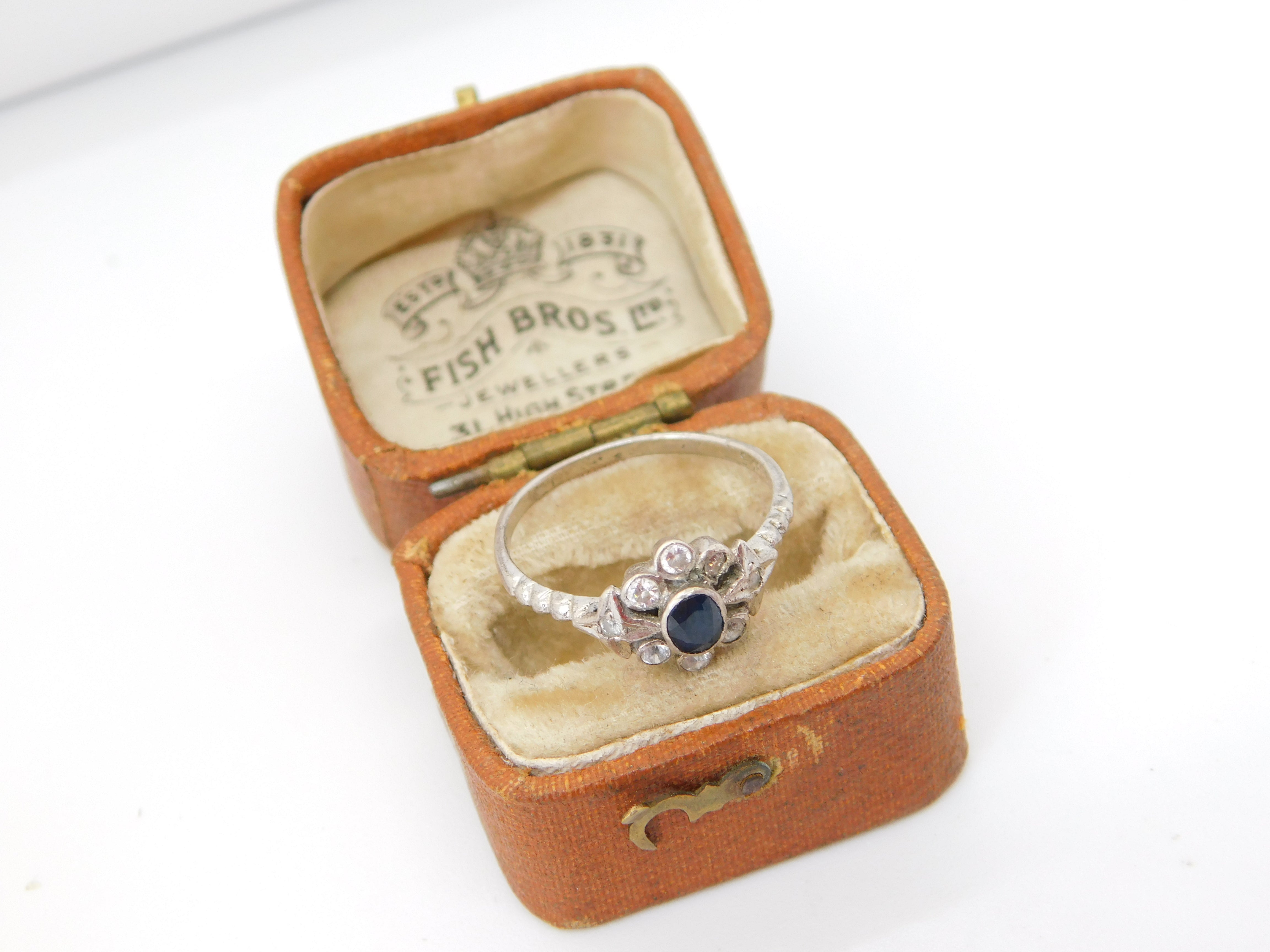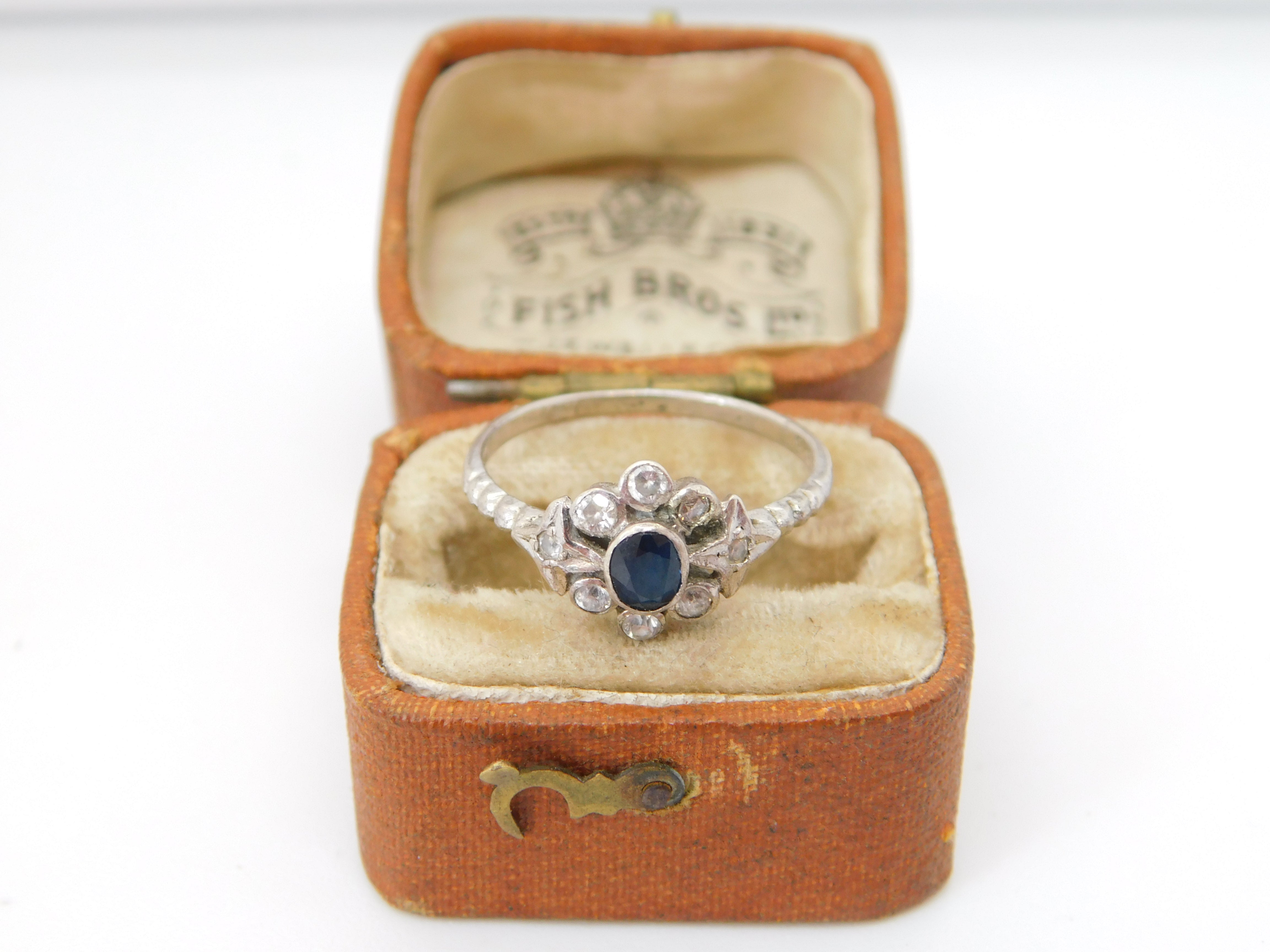 Details: A fantastic and wonderfully designed antique art deco sterling silver floral cluster ring set with natural sapphire & spinel stones hallmarked to the interior c1930. This is a wonderful item that would make a perfect gift or addition to any collection. The BOX pictured is for PRESENTATION ONLY and is NOT included in the listings but used to frame the pictures unless specifically stated otherwise.
