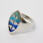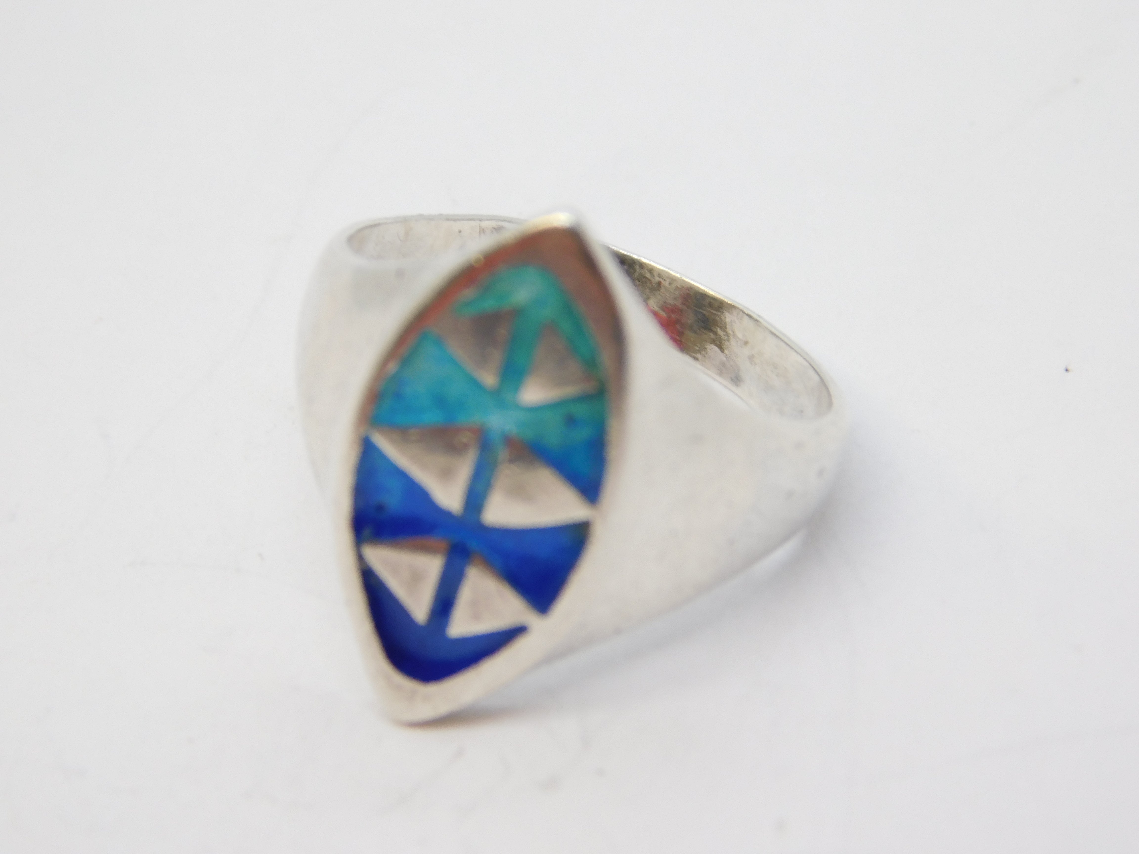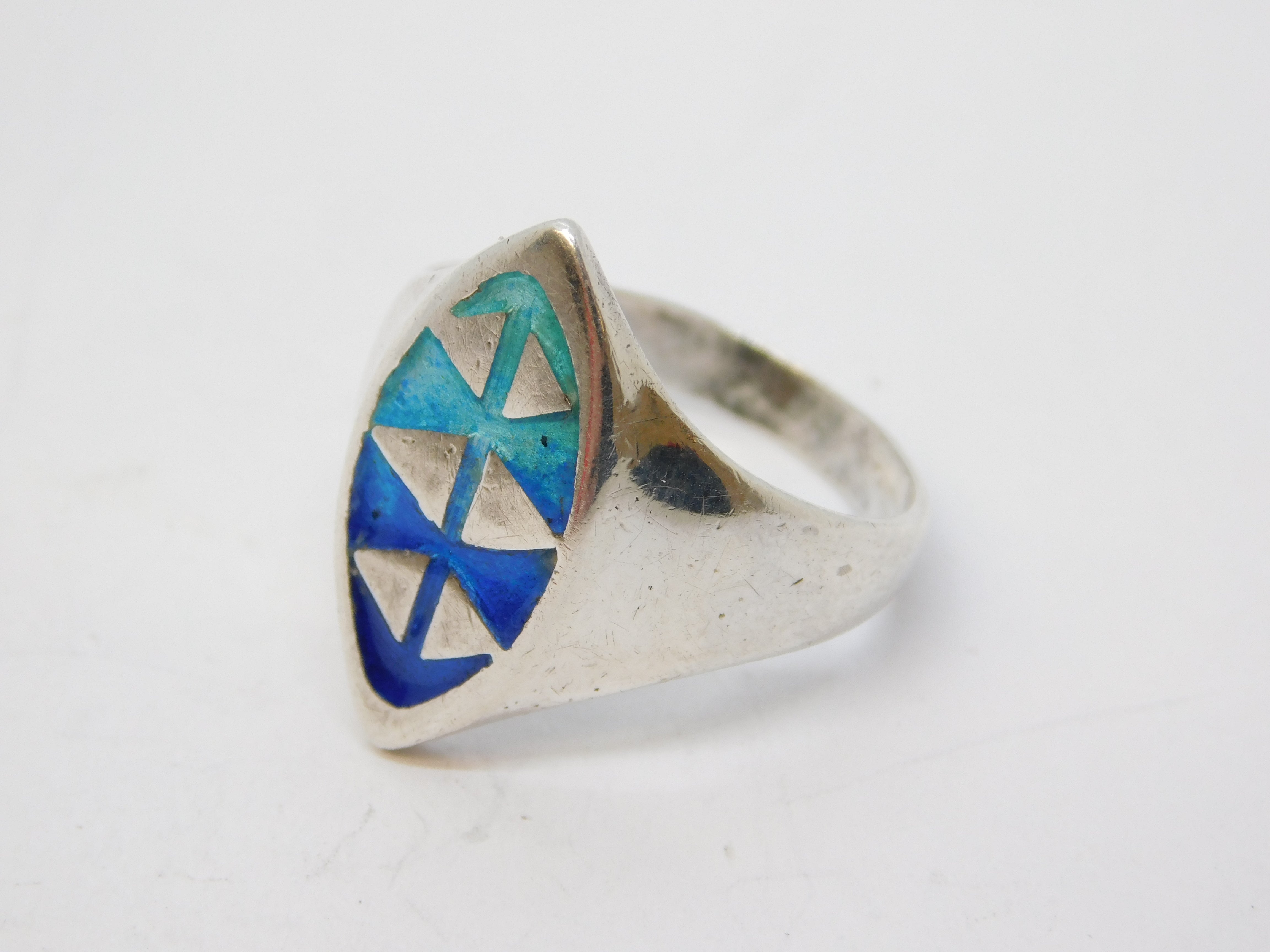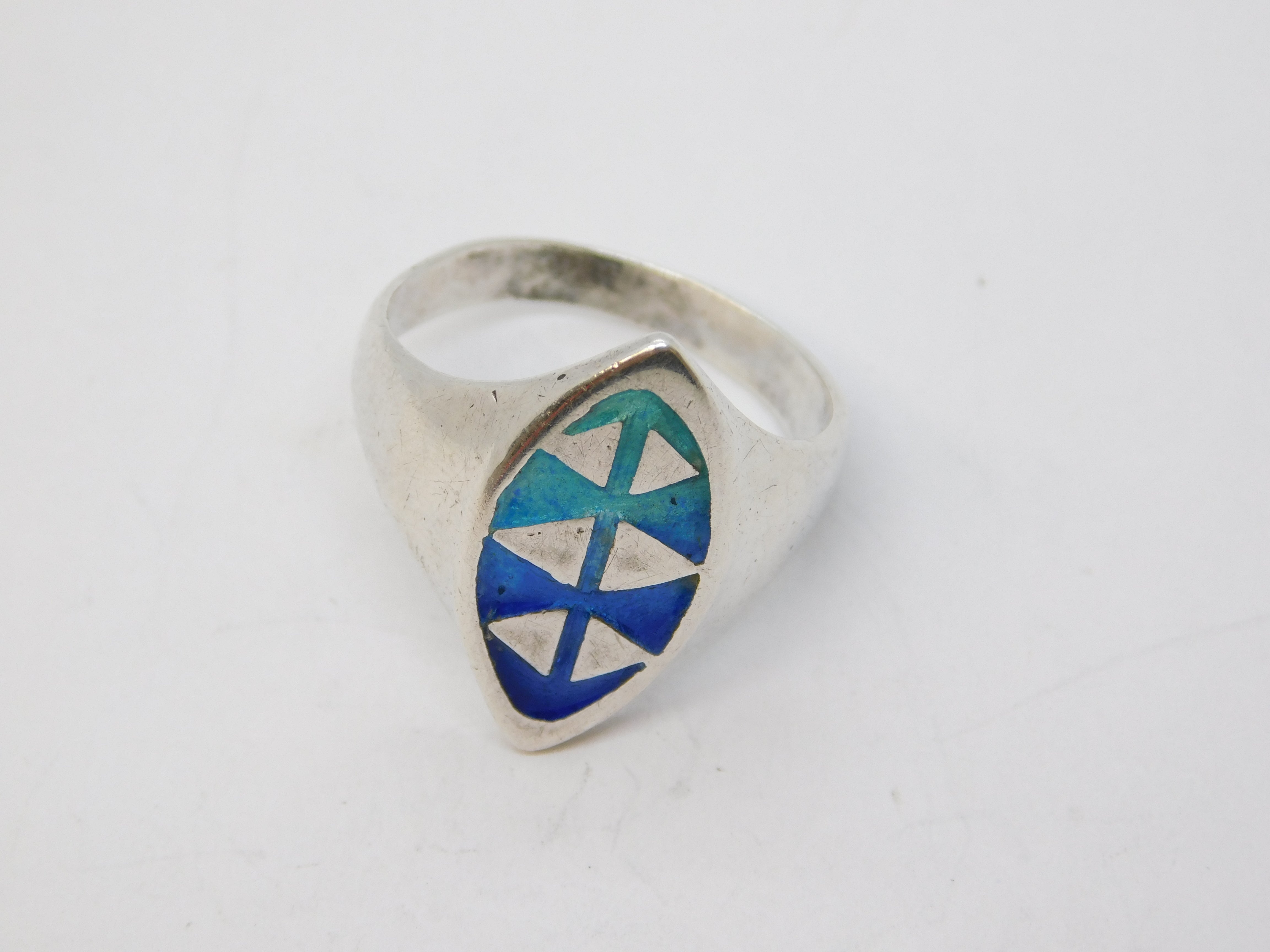 Sterling Silver Blue-Tone Enamel Studio Jewellery Dress Ring Vintage c1970