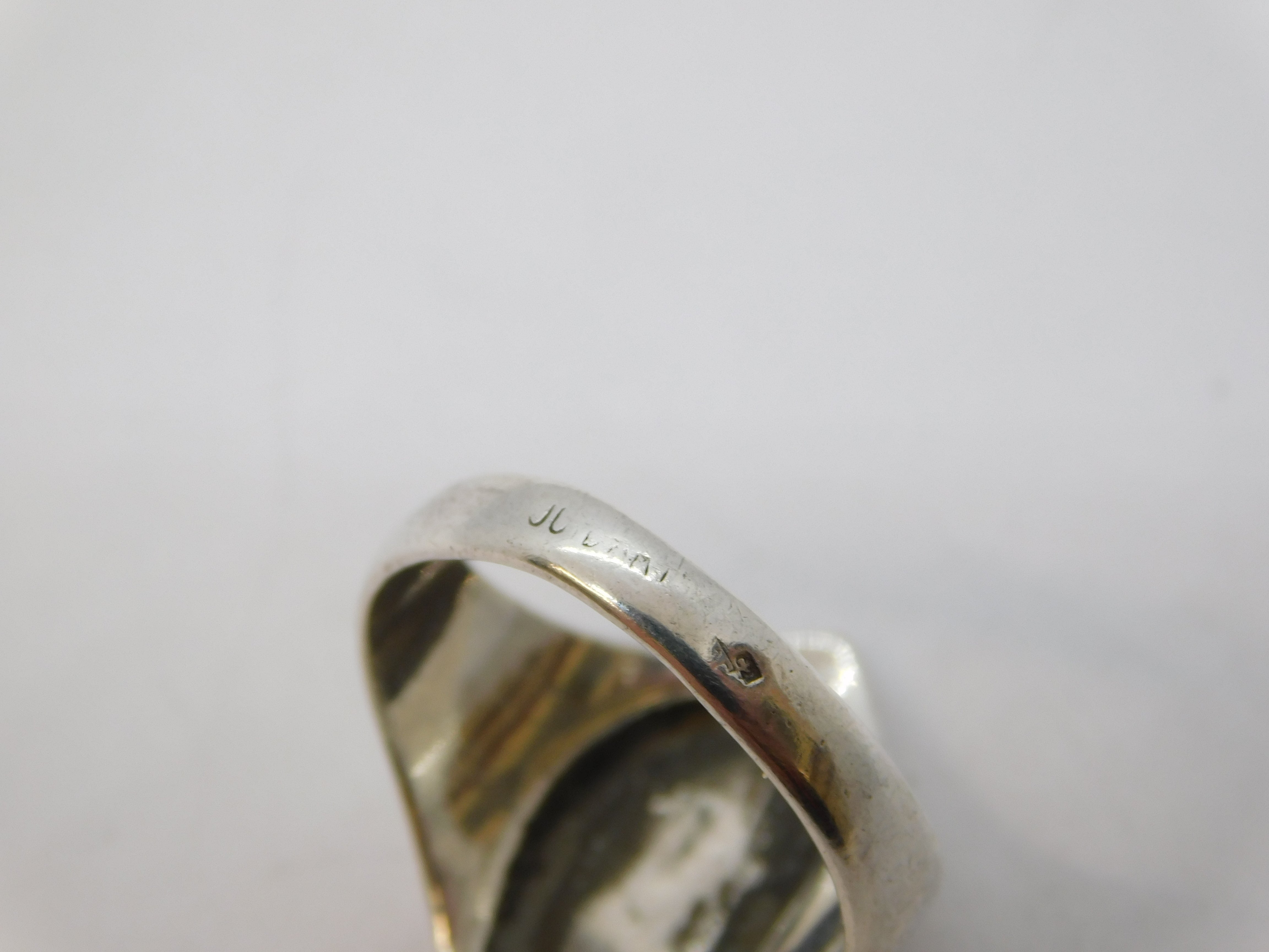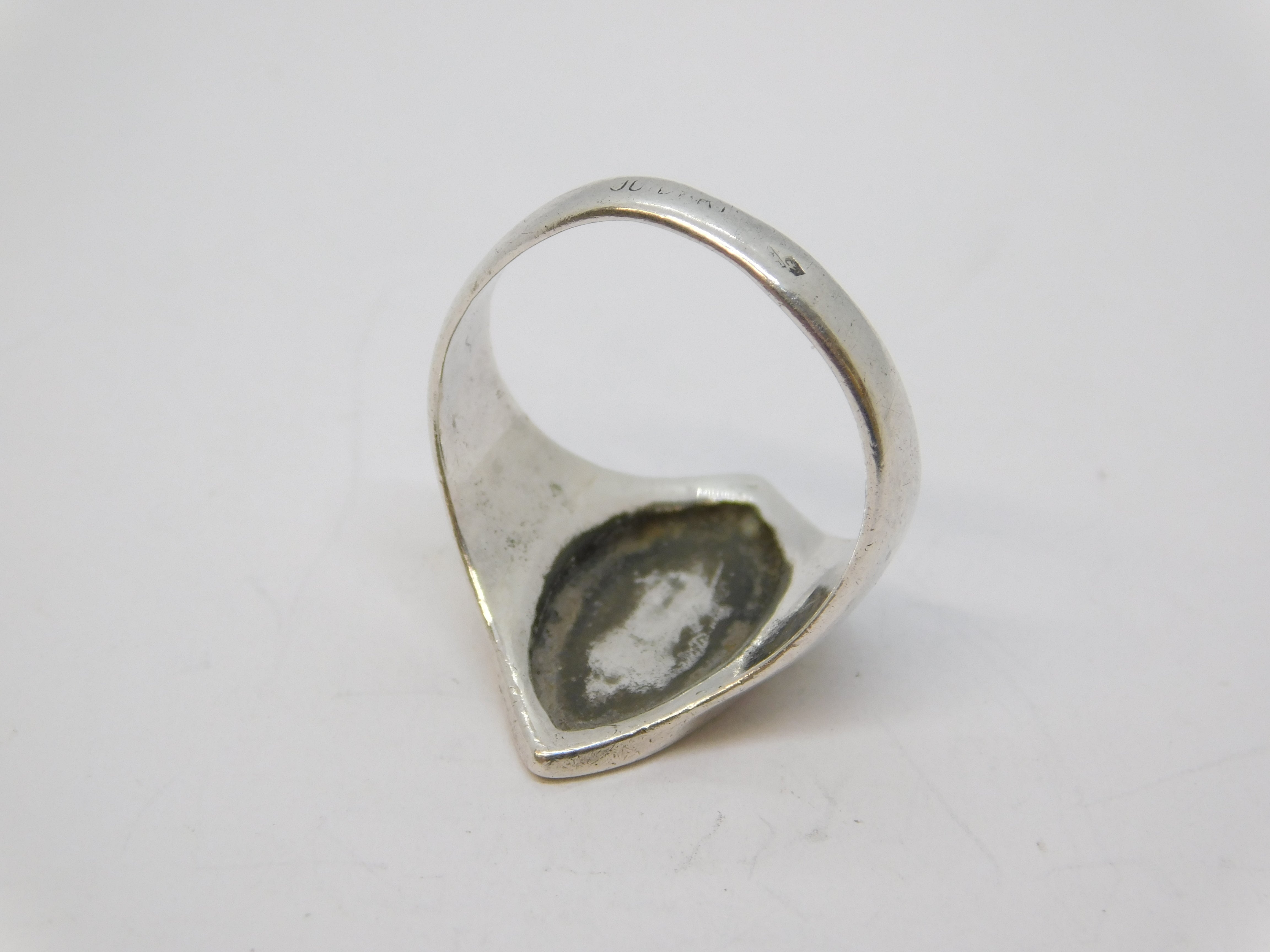 Details: A fantastic and wonderfully designed vintage sterling silver & blue-tone enamel statement ring with lovely detailing, likely Scandinavian, hallmarked faintly to the back of the band and XRF tested c1970. This is a wonderful item that would make a perfect gift or addition to any collection. We are more than happy to provide XRF reports for items upon request.
