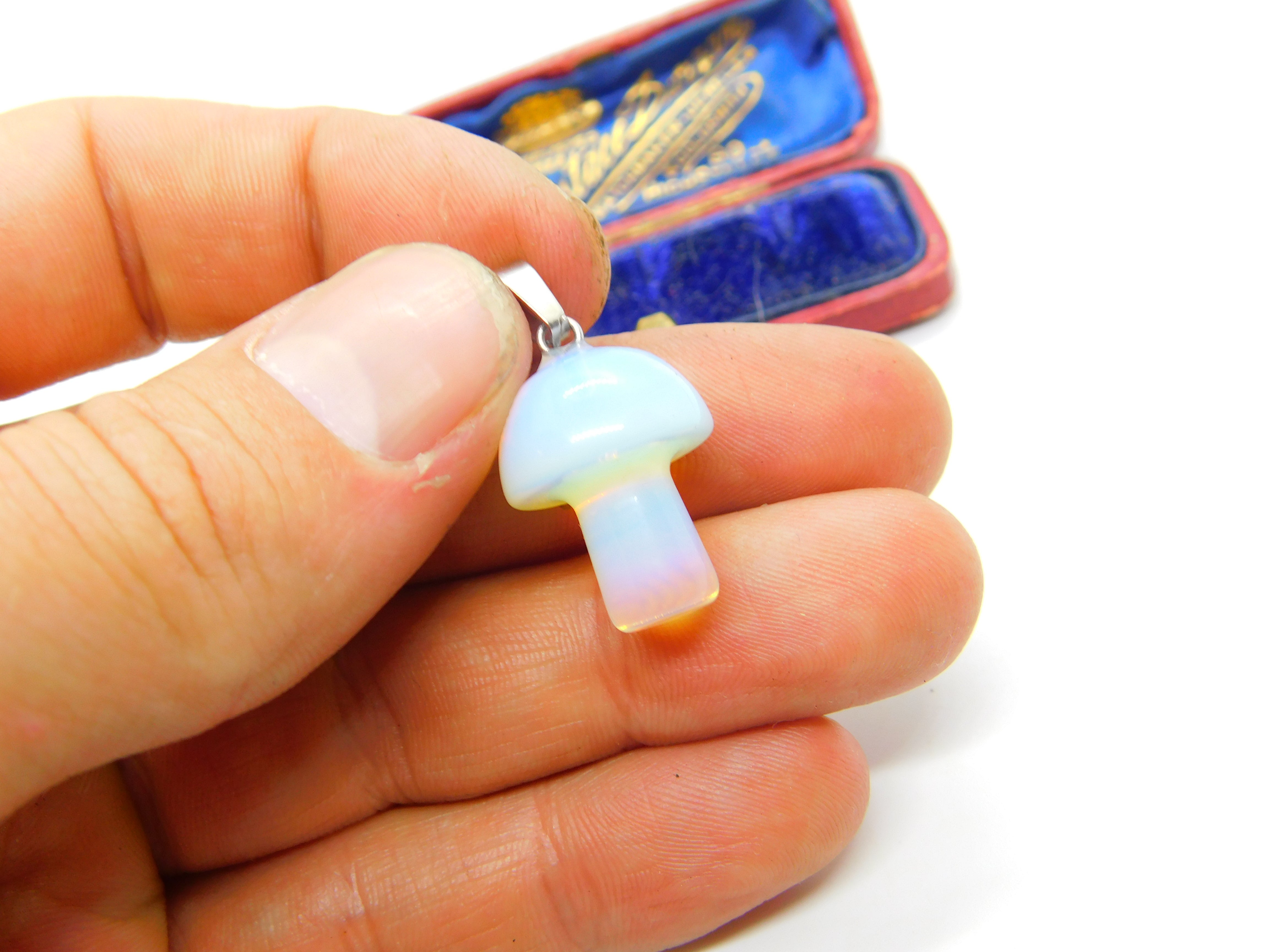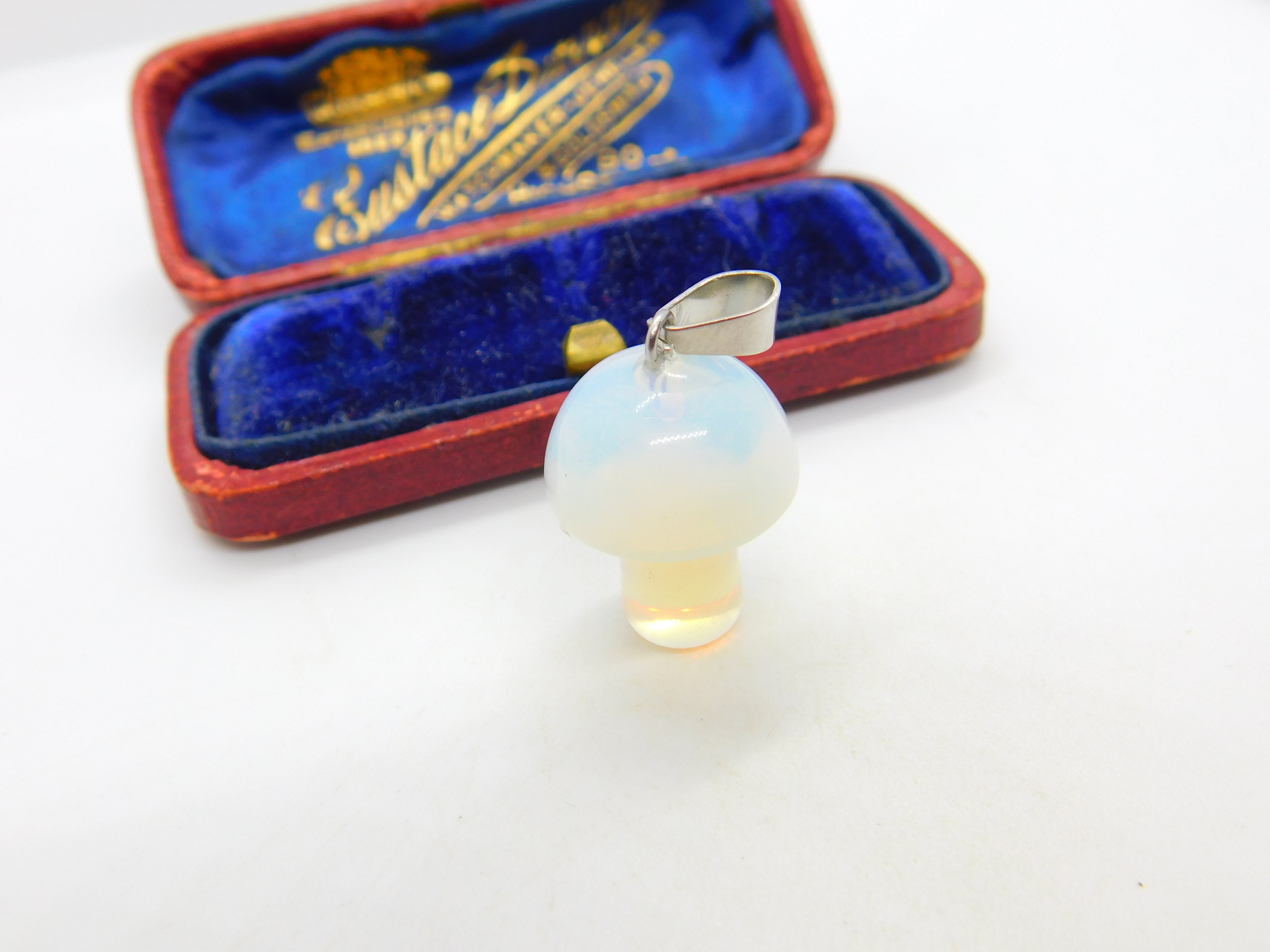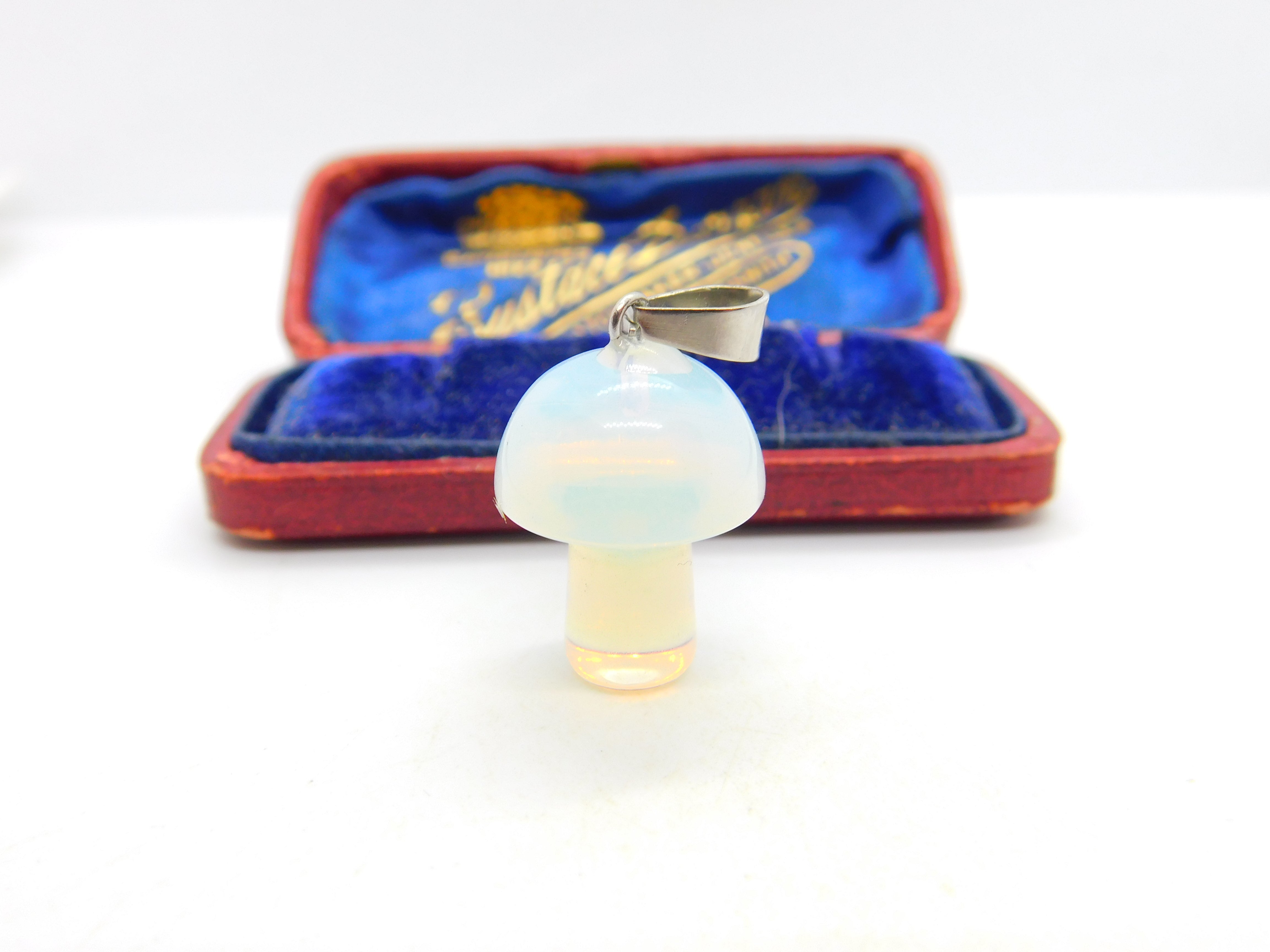 Details: A fantastic and wonderfully designed vintage sterling silver mounted carved natural opal mushroom pendant with superb detailing c1980, the opal has been tested. This is a wonderful item that would make a perfect gift or addition to any collection. The BOX pictured is for PRESENTATION ONLY and is NOT included in the listings but used to frame the pictures unless specifically stated otherwise.