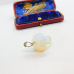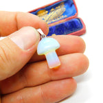 Sterling Silver & Carved Natural Opal Stone Mushroom Pendant Vintage c1980