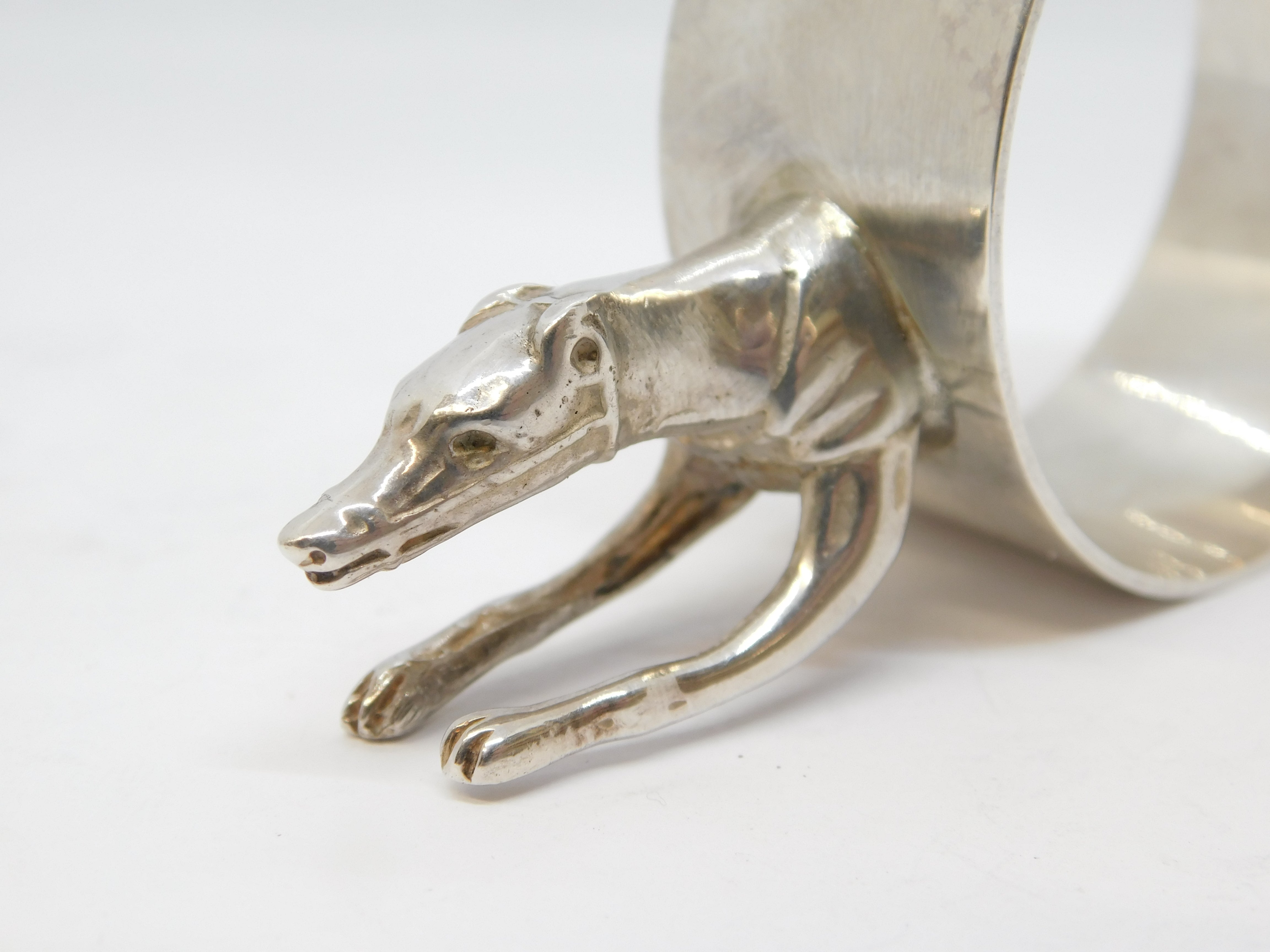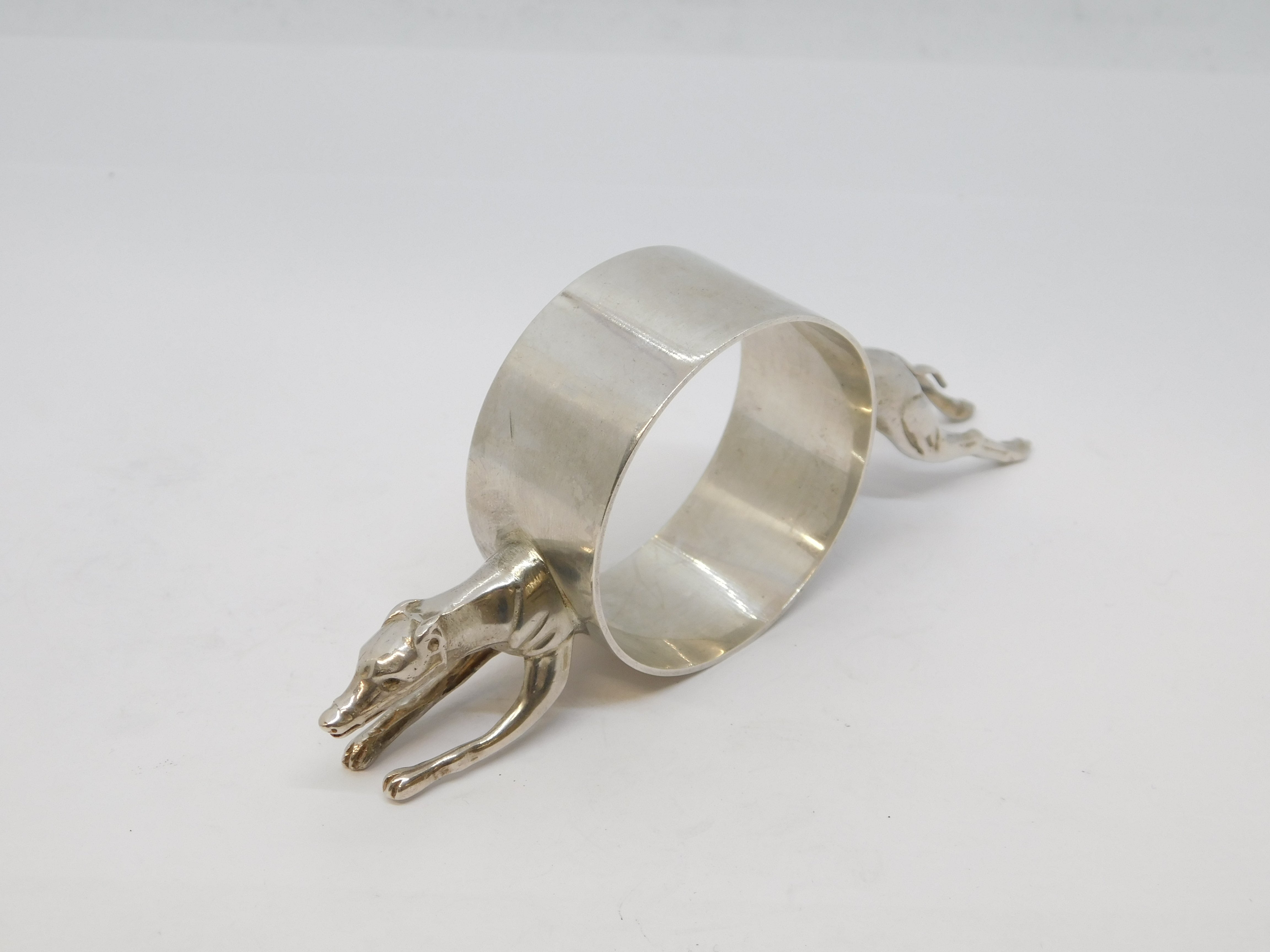 Sterling Silver Cast Novelty Racing Greyhound Napkin Ring Vintage 1978 Birmingham