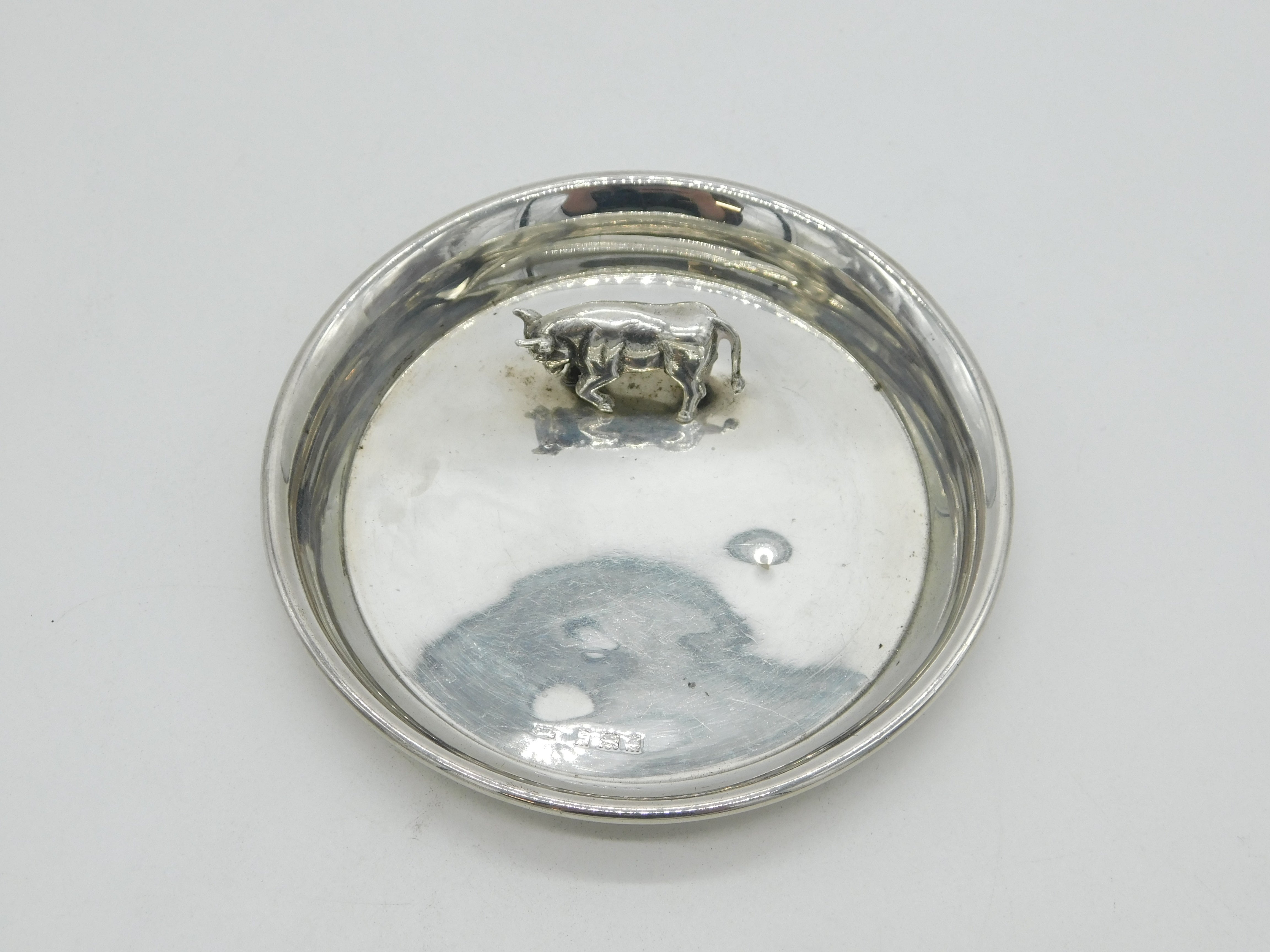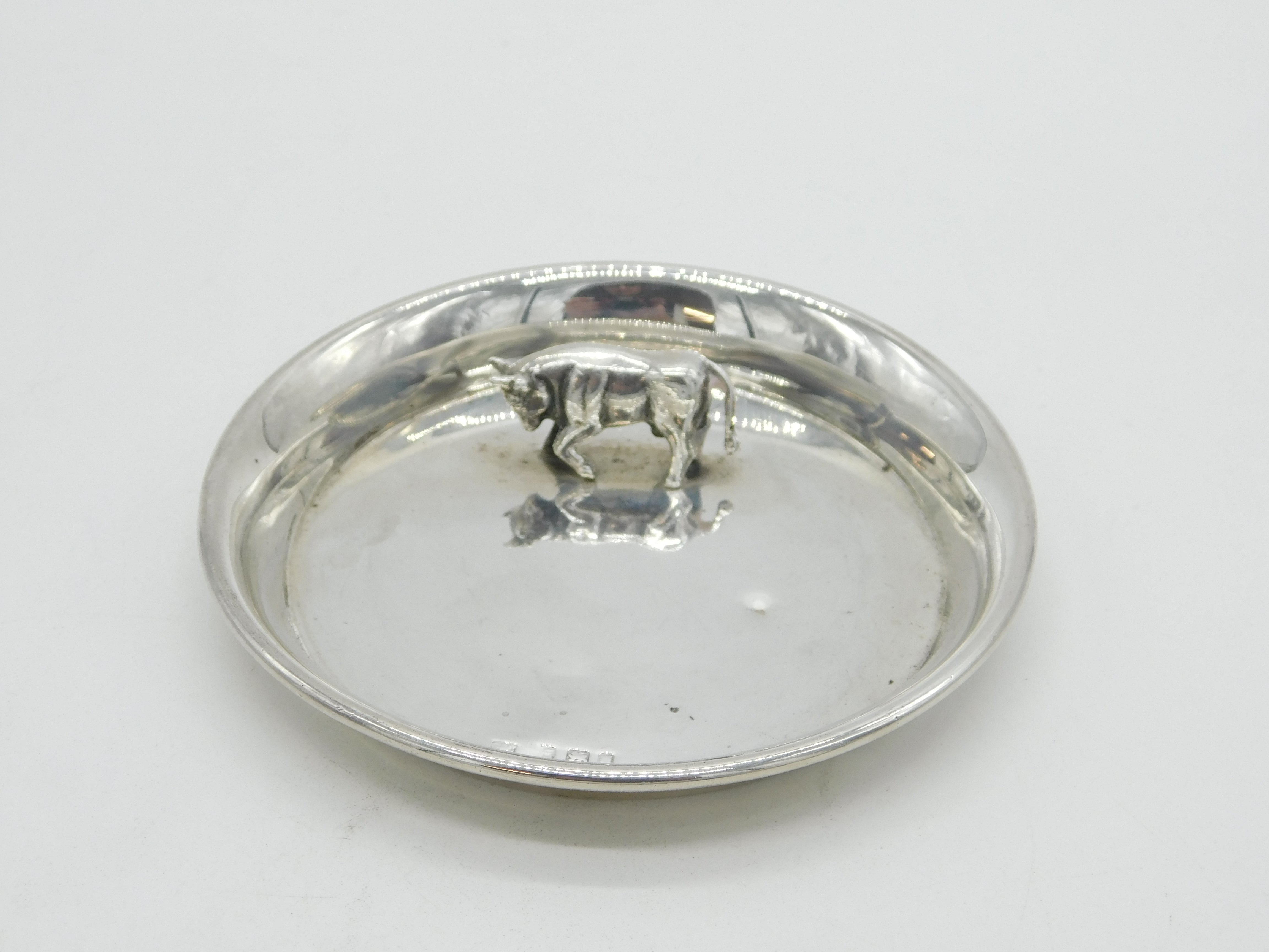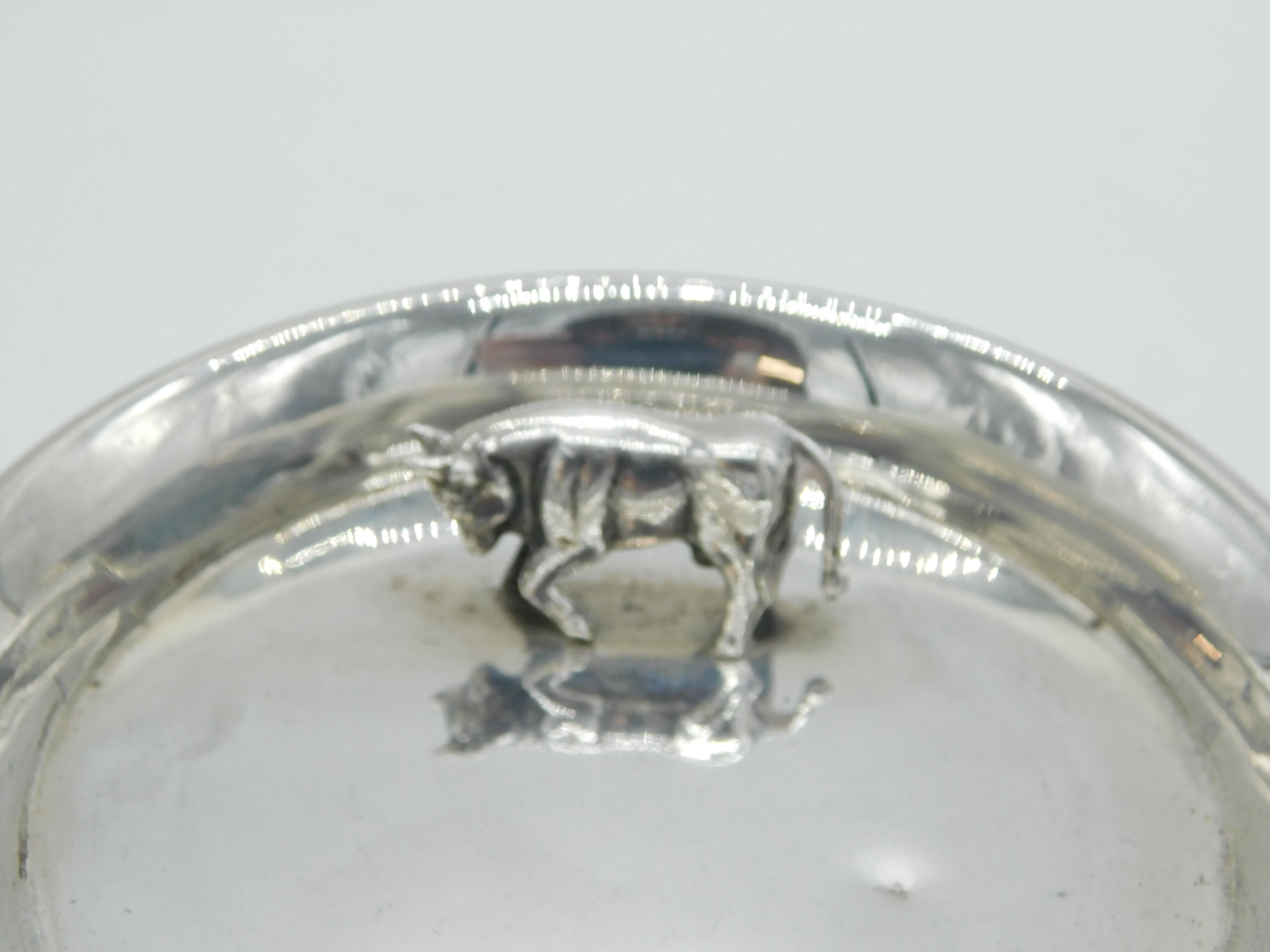 Sterling Silver Cast Raging Bull Novelty Ashtray Antique 1921 London