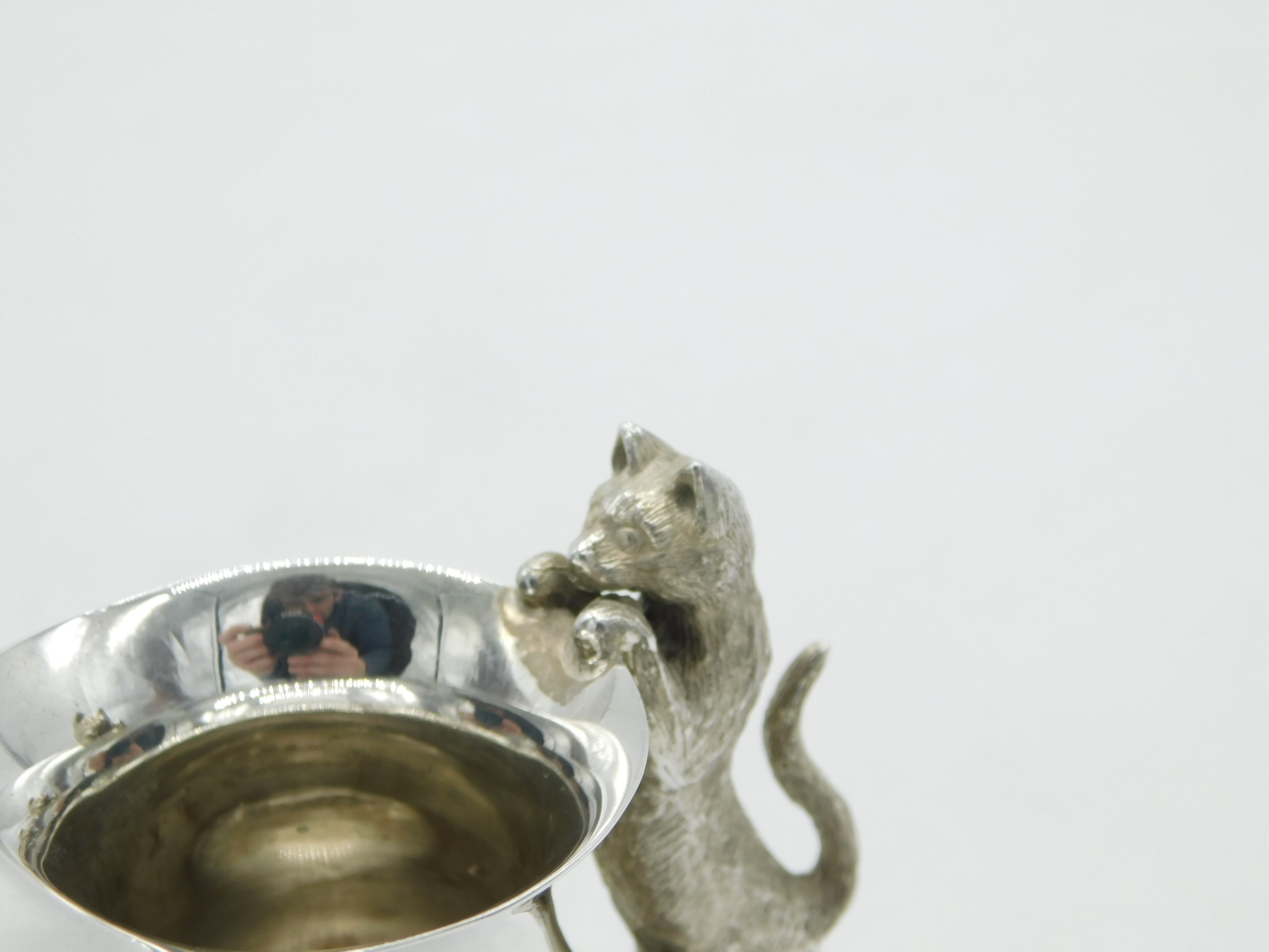 Sterling Silver Cat Kitten Handled Cream Jug Vintage 1994 Garrard & Co. London