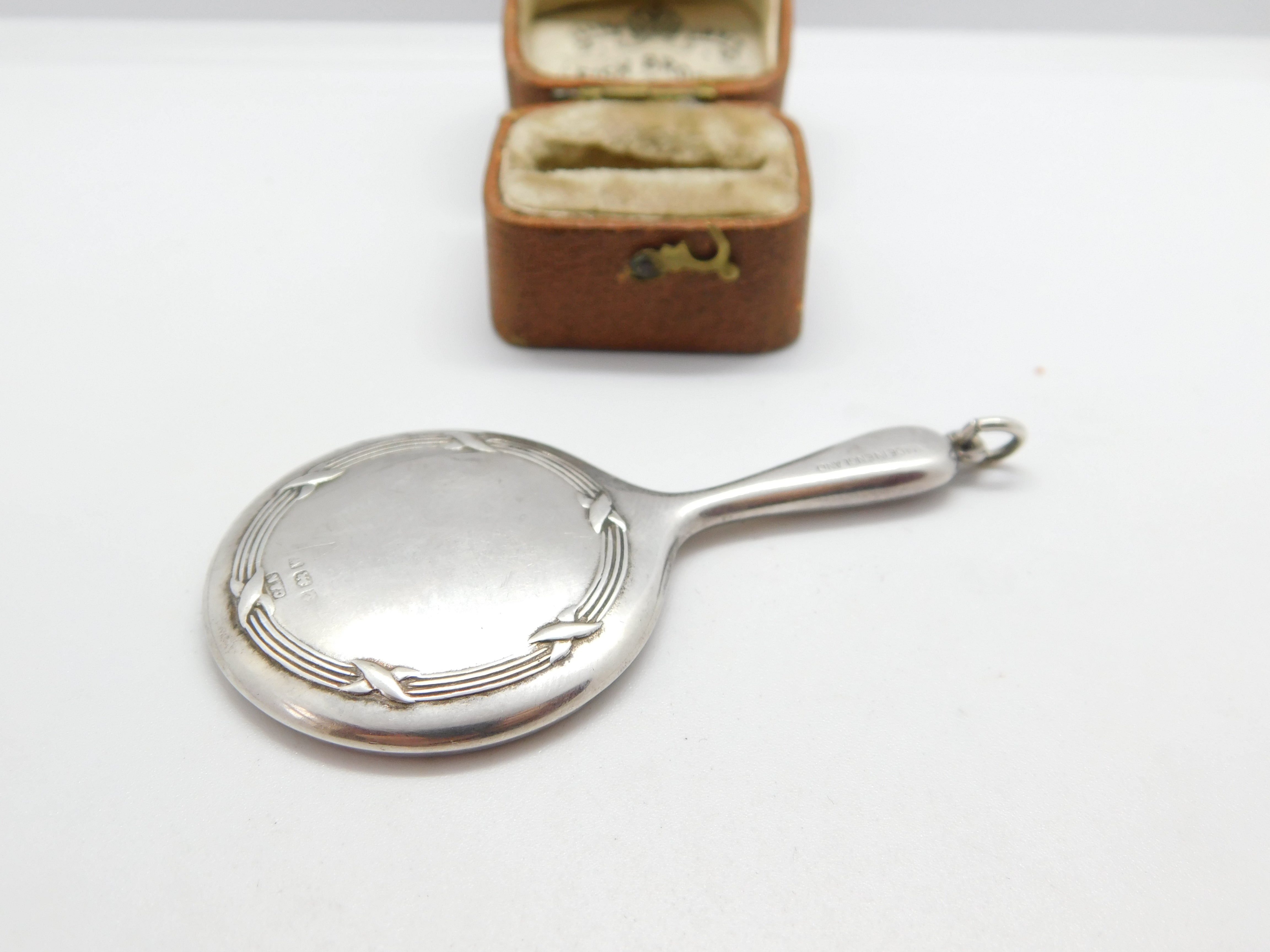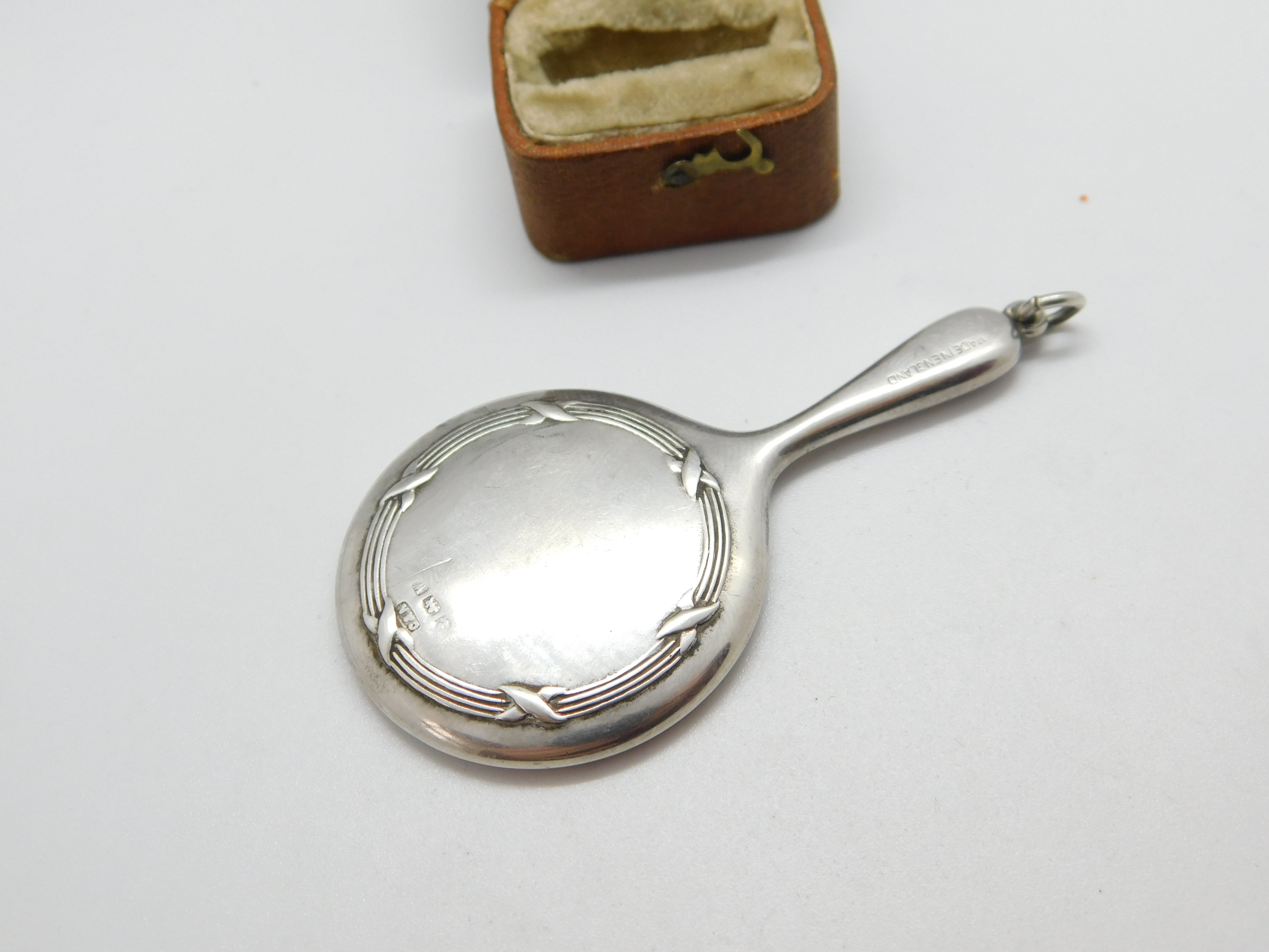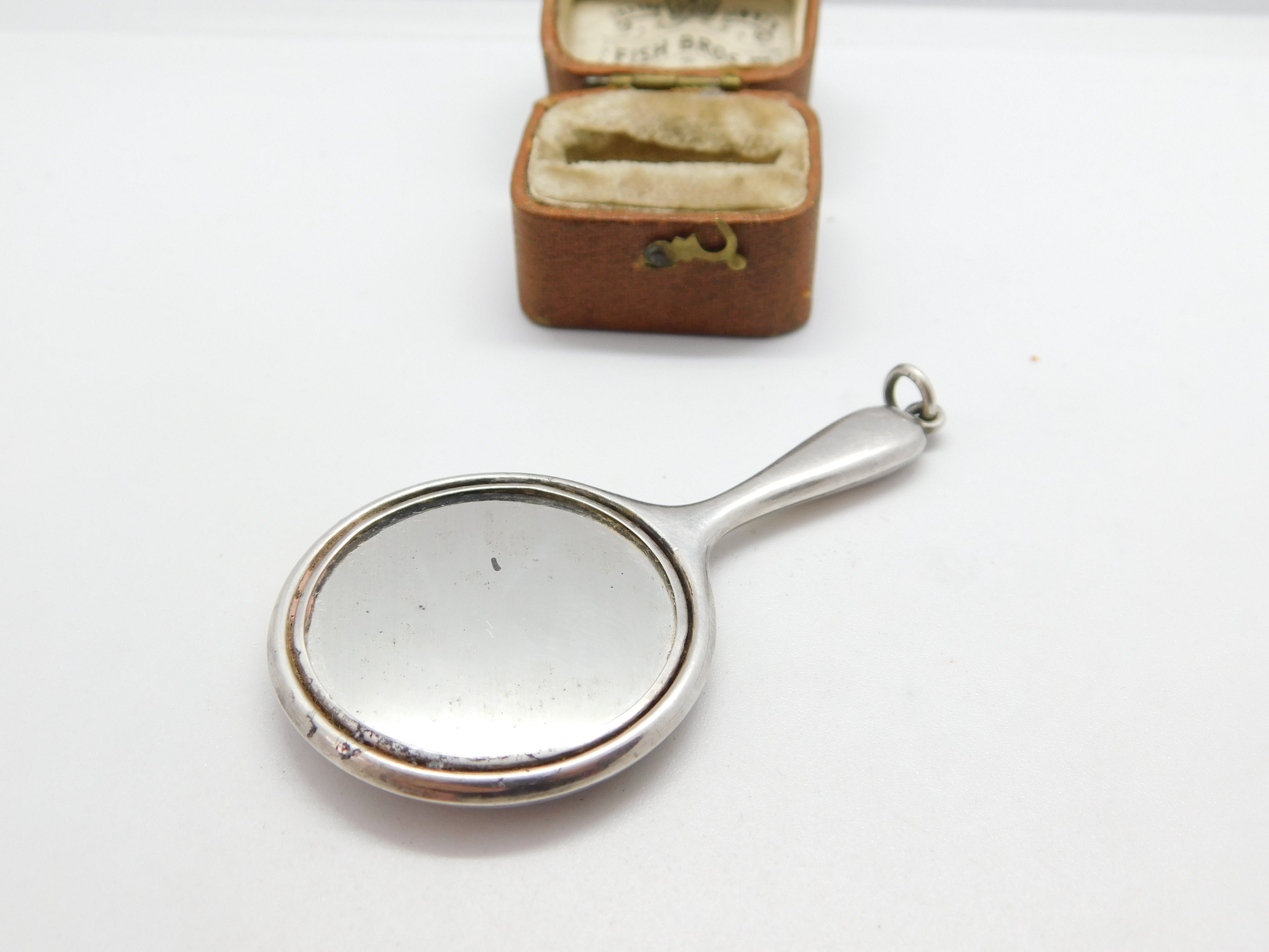 Sterling Silver Chatelaine Mirror Fob Pendant 1921 Birmingham Antique Art Deco