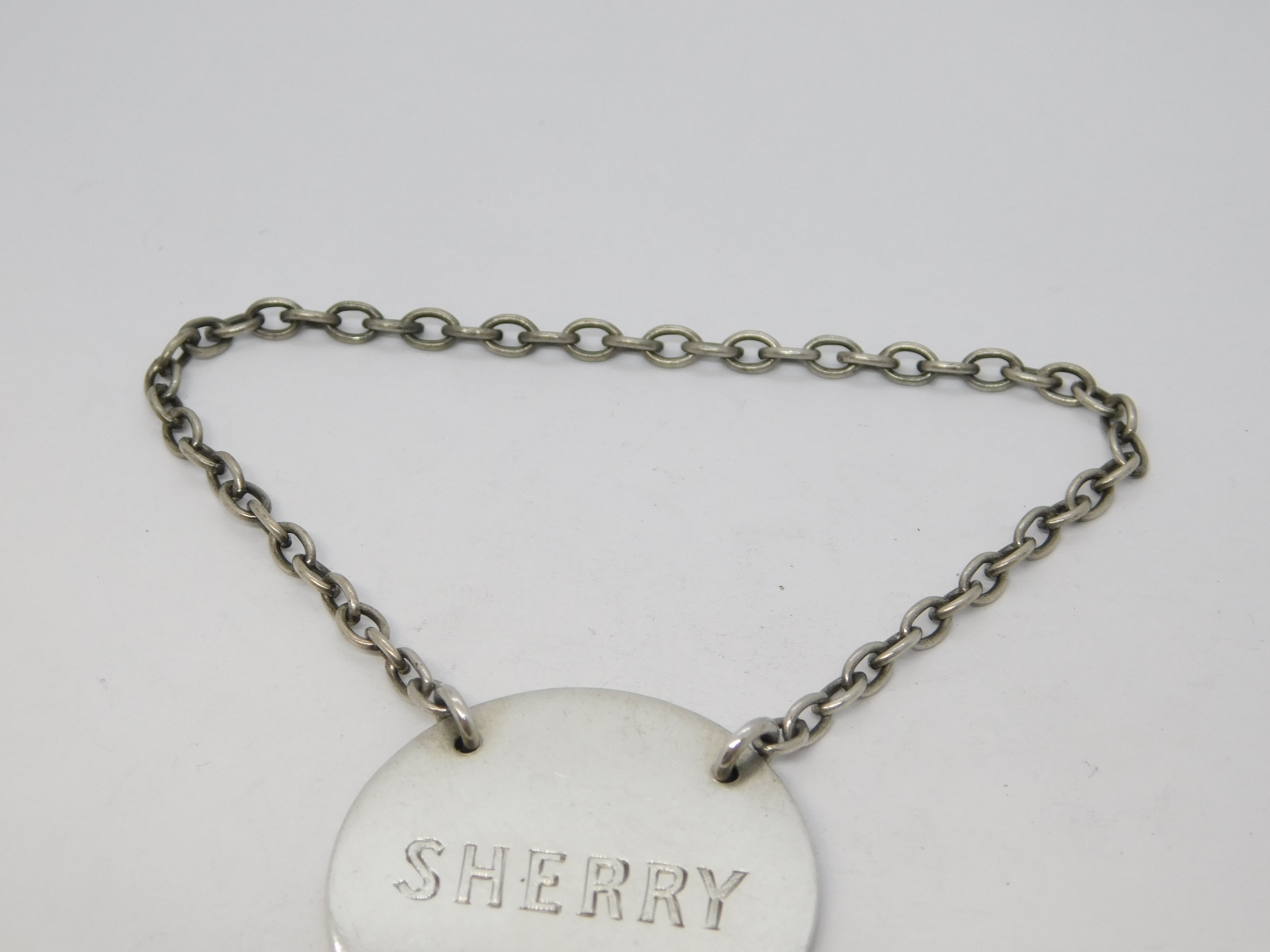Sterling Silver Circular Sherry Decanter Label Antique 1935 Chester Art Deco